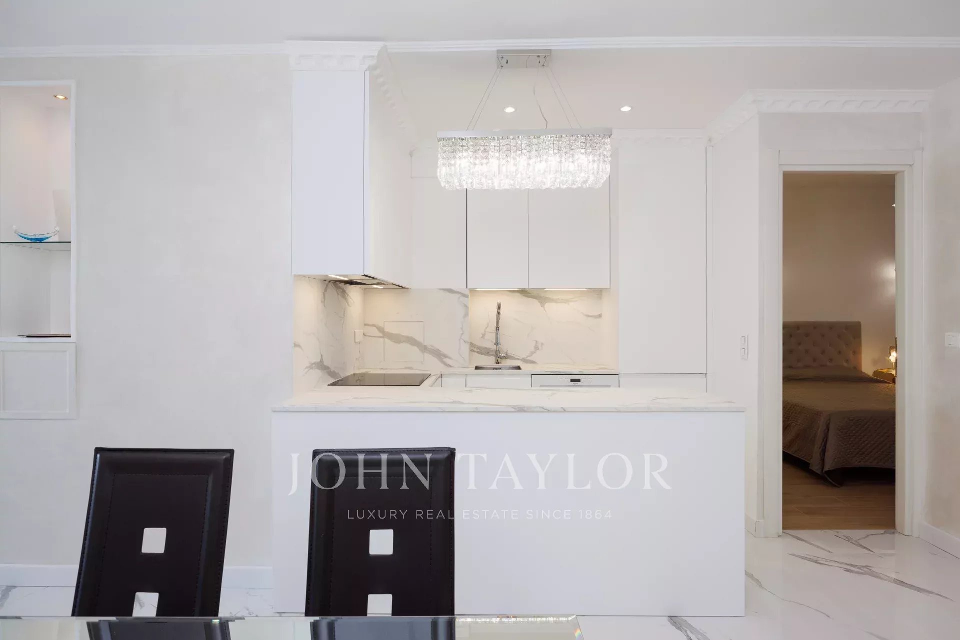 Она состоит из прихожей, гостиной с телевизором, спальни с ванной комнатой, выходящей на террасу, второй спальни с ванной комнатой и оборудованной кухней открытого плана. Кондиционеры в спальнях.