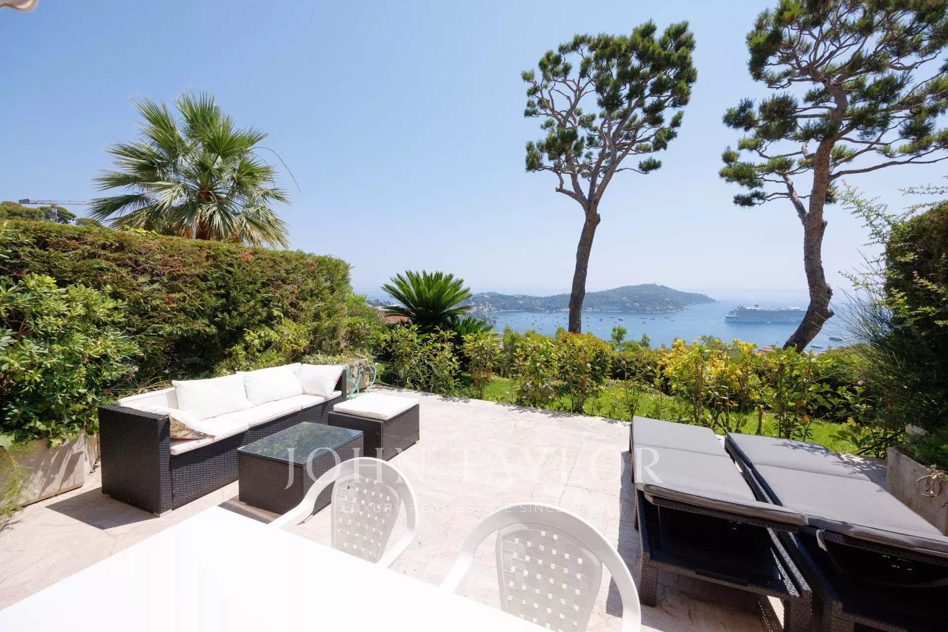 Эта приятная, недавно отремонтированная 3-комнатная квартира (около 85 м²), расположенная на возвышенности с террасой площадью 37 м², находится в роскошном охраняемом комплексе и предлагает прекрасный вид на море и Кап Ферра.