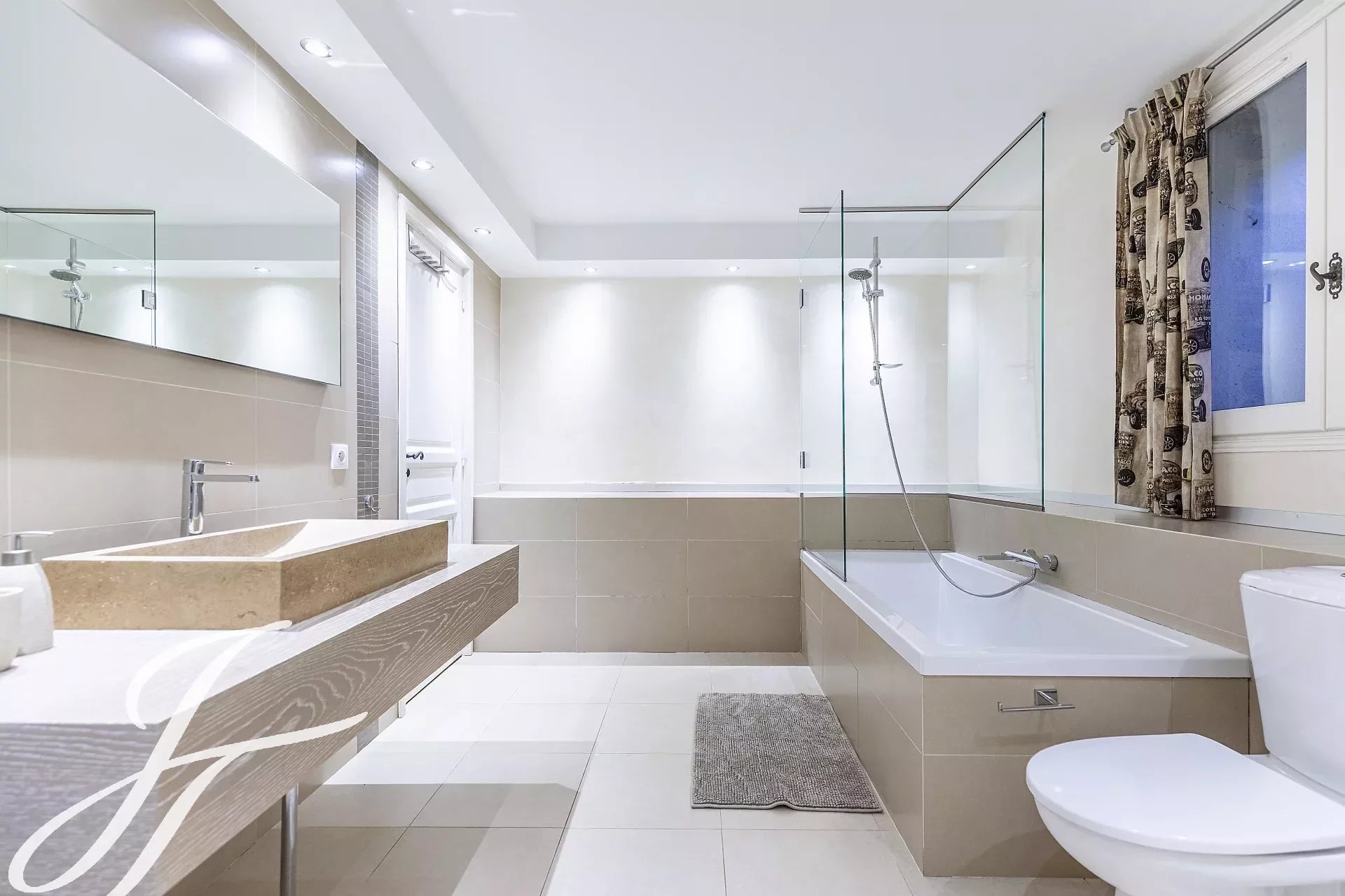 Главная спальня (Спальня 1): двуспальная кровать, отдельный балкон и ванная комната (ванна, двойной умывальник, туалет).