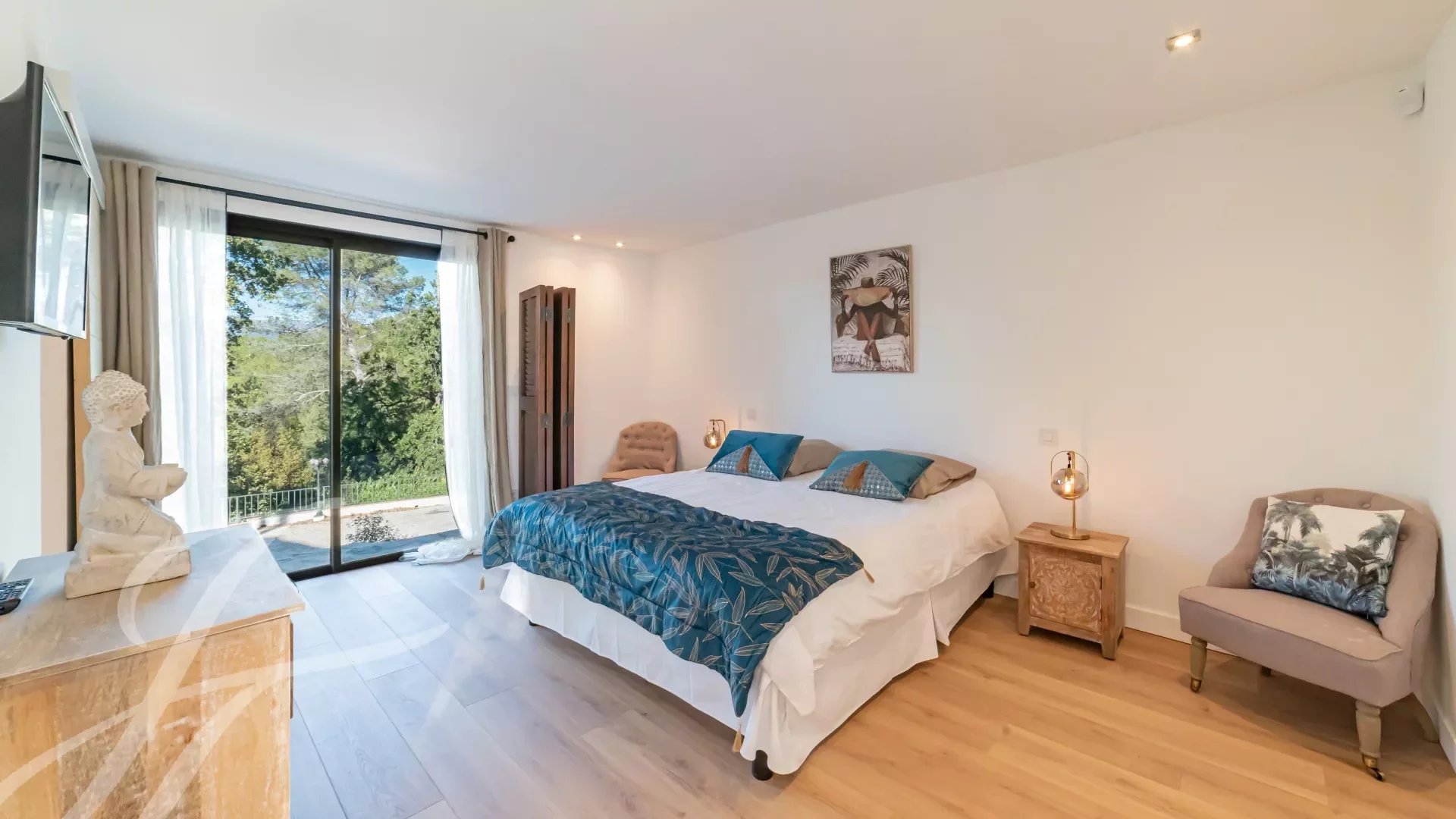 Главная спальня (N°2) с большой террасой, душевой комнатой и гардеробной, вид на поле для гольфа.