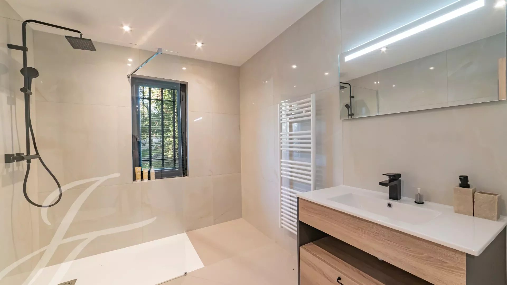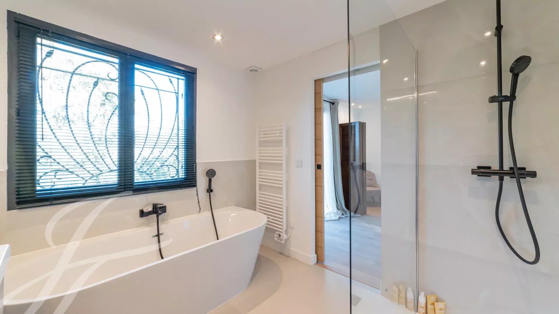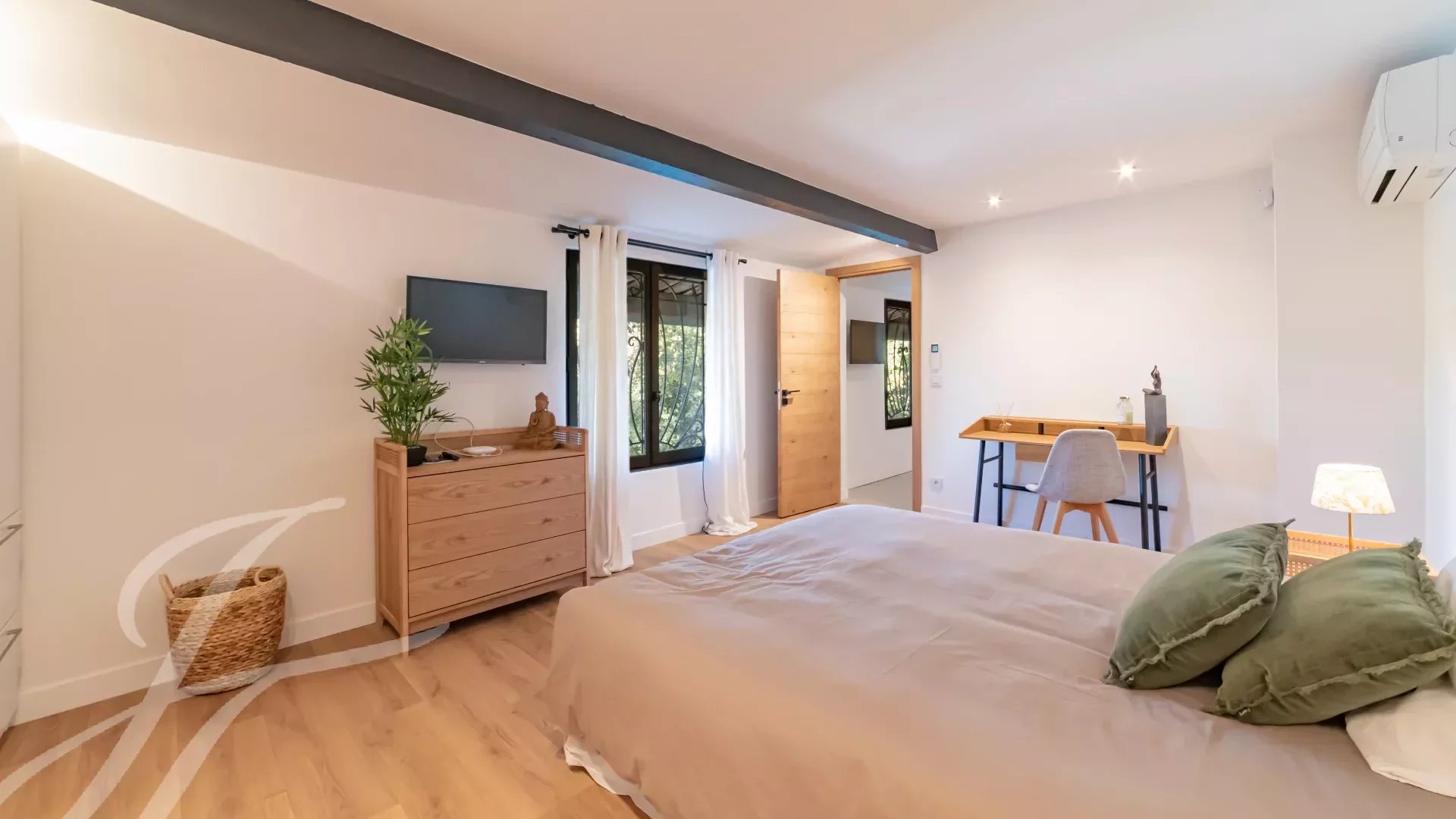 Две спальни (N°3 и N°4) с ванными комнатами, душевой, гардеробной и туалетом. Выход в сад.