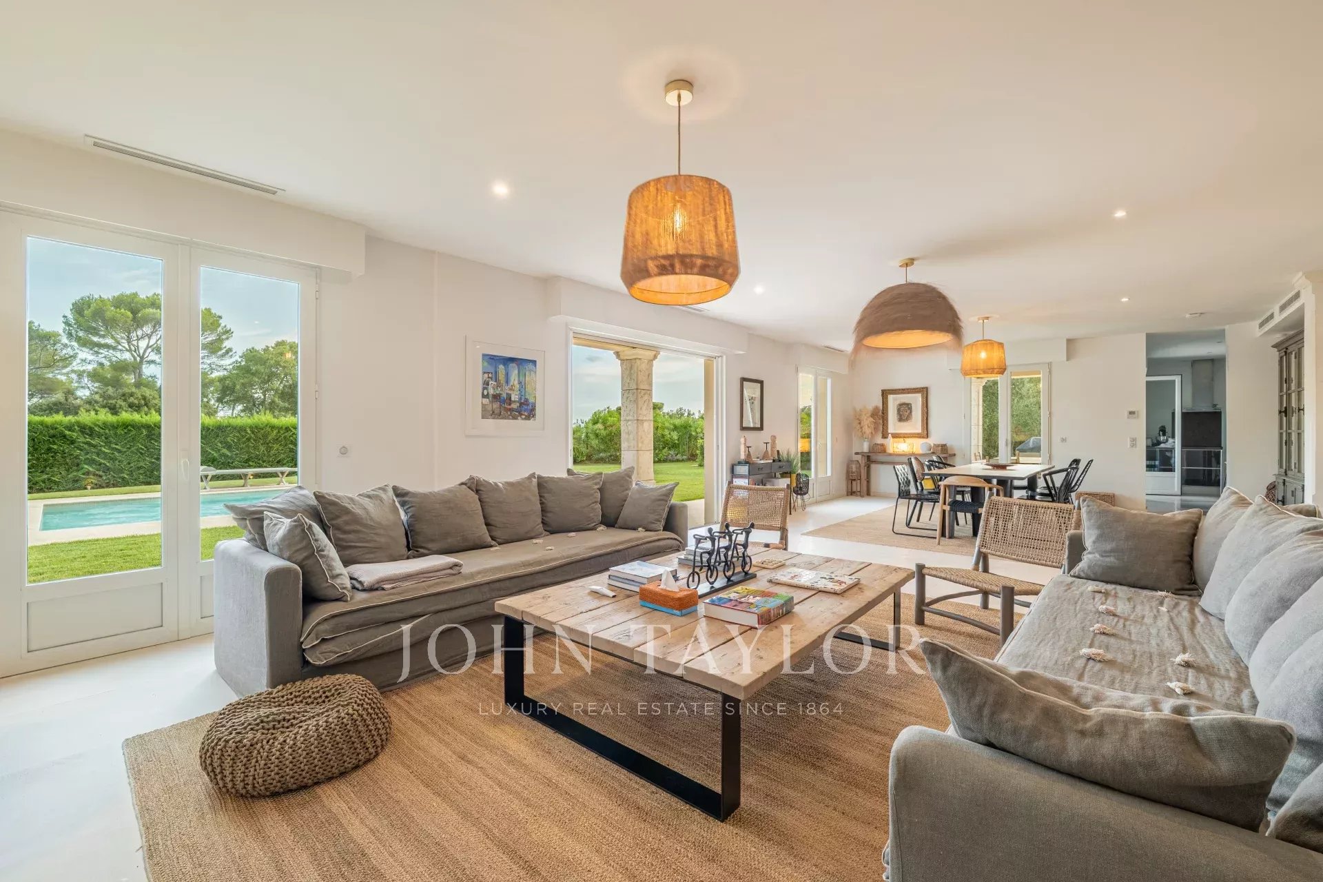 В частном и охраняемом поместье в нескольких минутах от старинной деревни Мужен, откройте для себя эту великолепную виллу площадью около 415 м², расположенную в самом сердце плоского ландшафтного сада с подогреваемым бассейном и площадкой для игры в петанк.