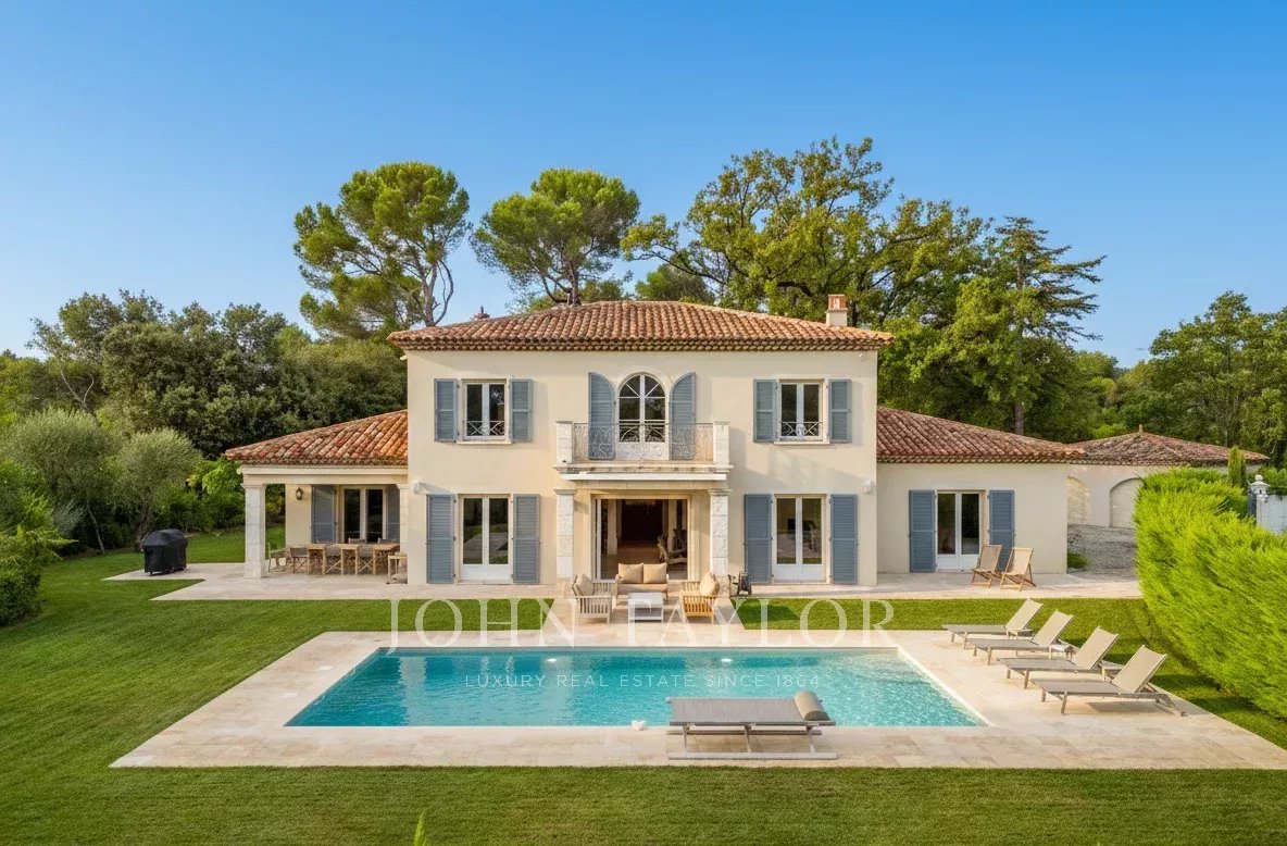 Идеальная вилла для семьи. Эта вилла сочетает в себе современный комфорт, роскошь и привилегированное расположение в непосредственной близости от старой деревни Мужен, международных школ, известных полей для гольфа, Канн и набережной Круазетт.