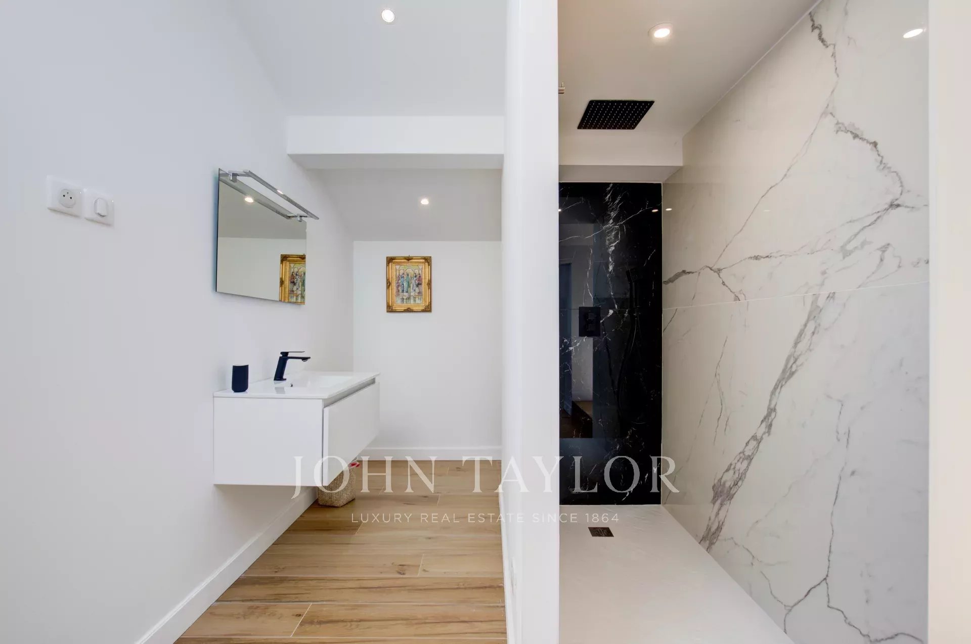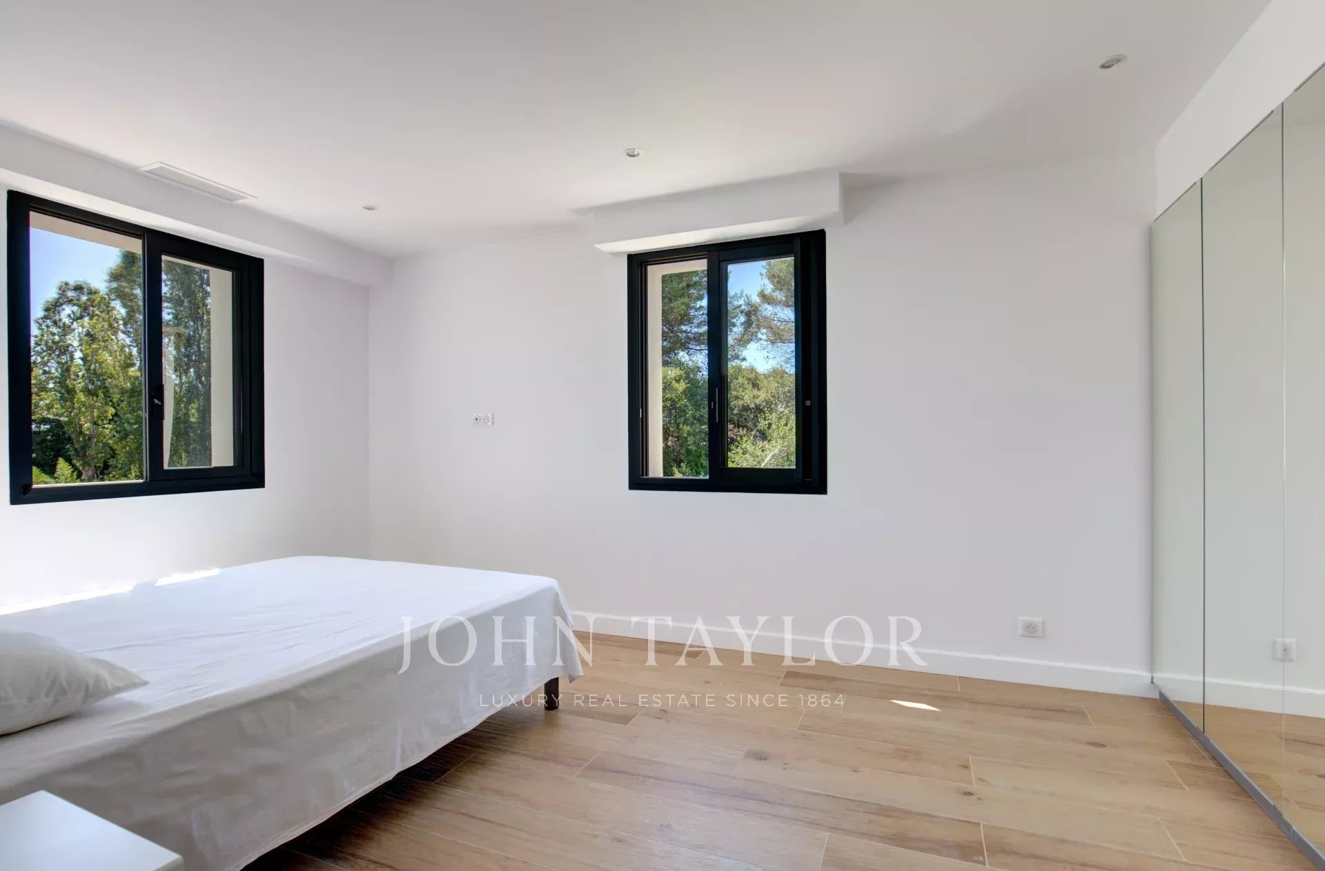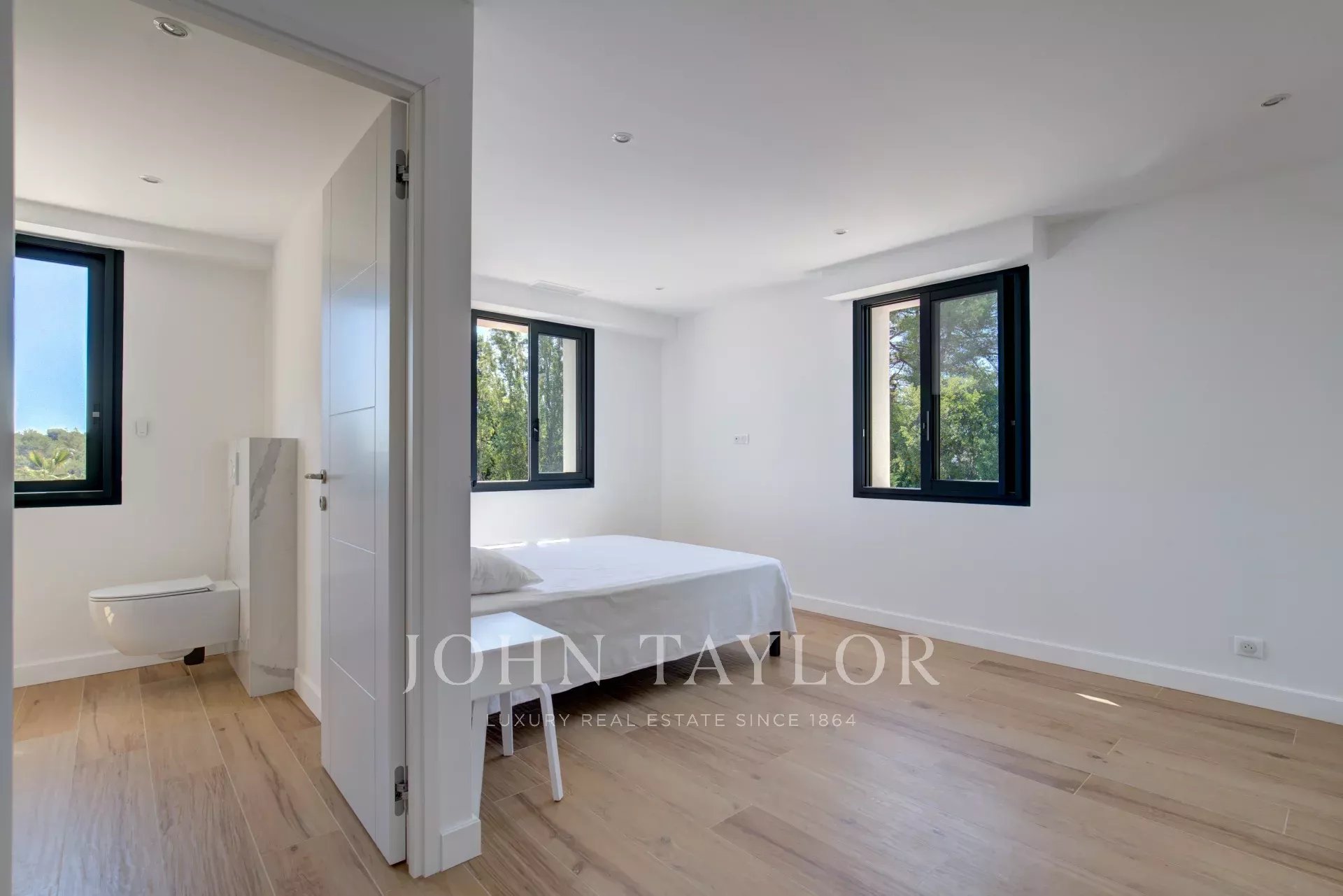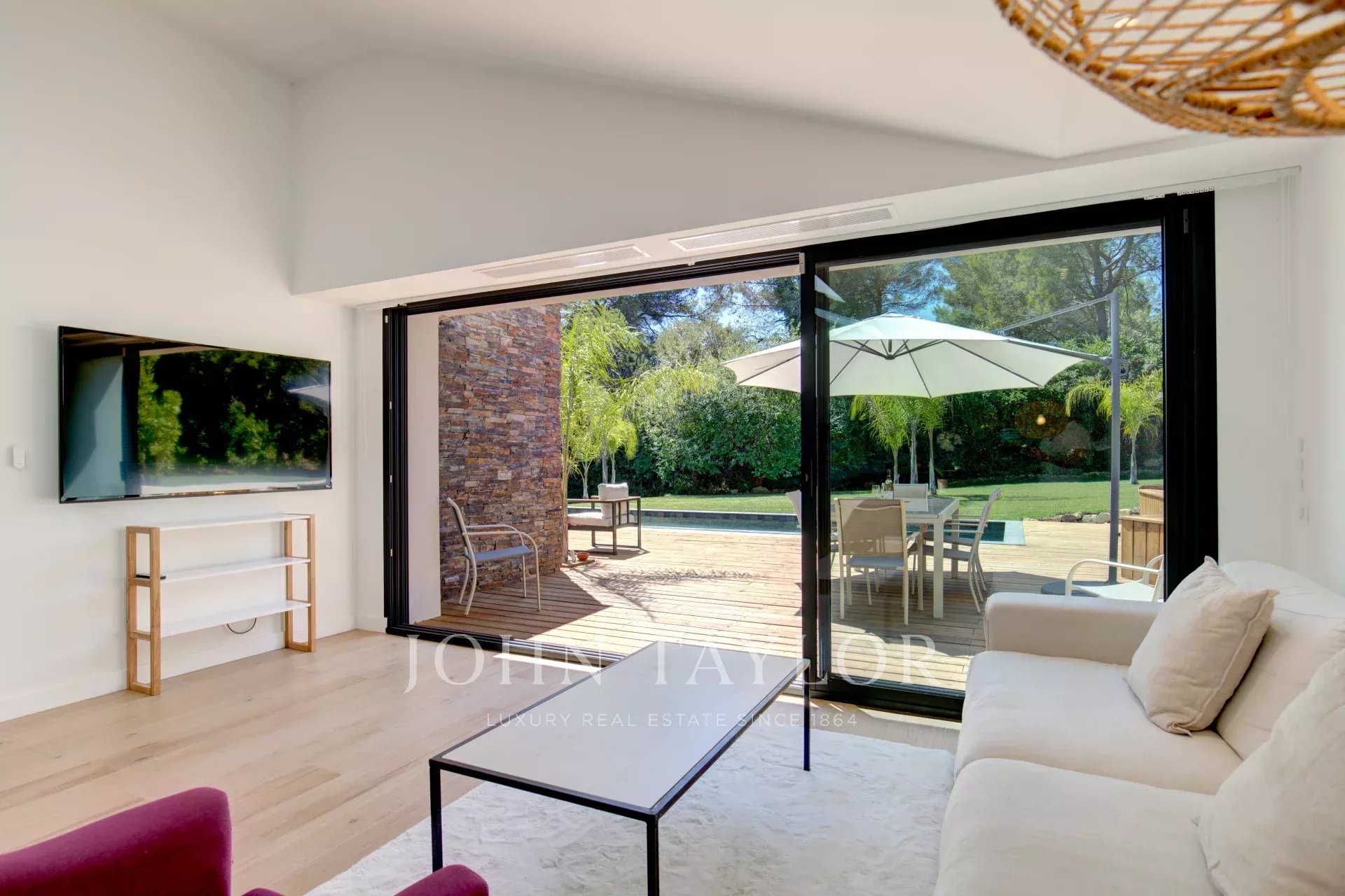 Снаружи есть охраняемый бассейн с подогревом, зонтики, площадка для игры в петанк, обеденная зона с барбекю и зона, оборудованная садовой мебелью. Парковка на 3 машины с электроприводом и гараж на 1 машину.