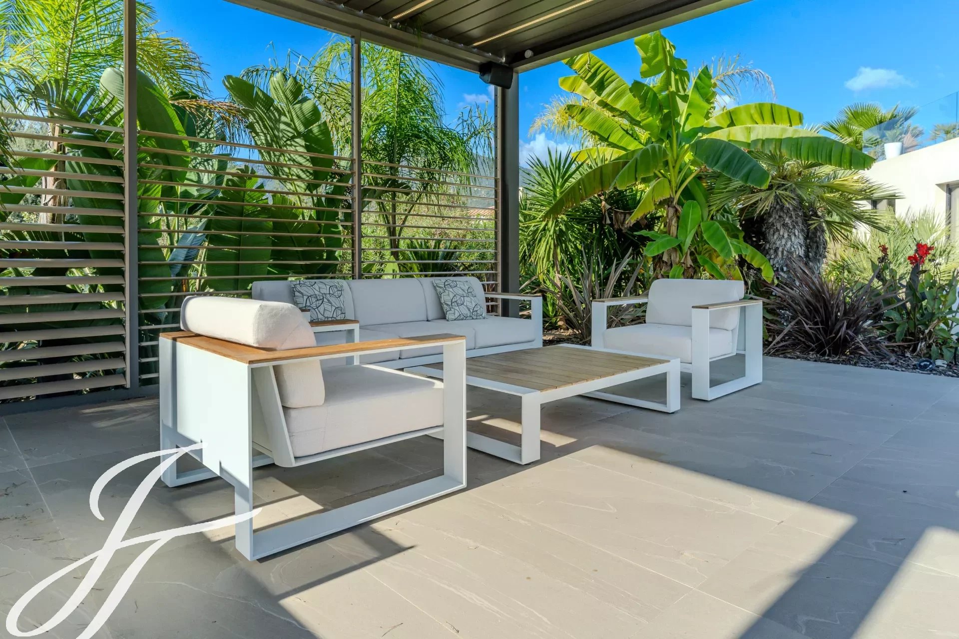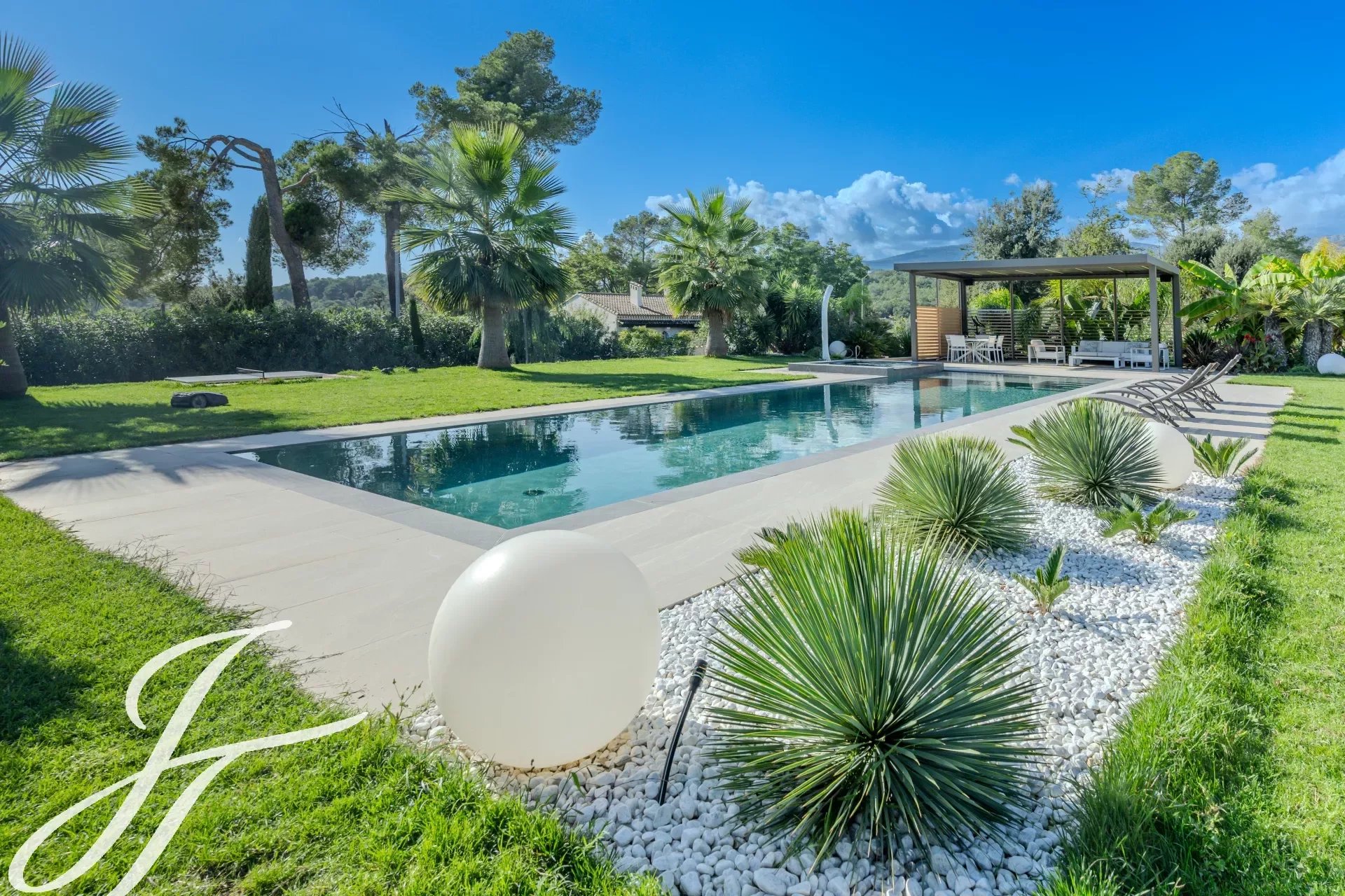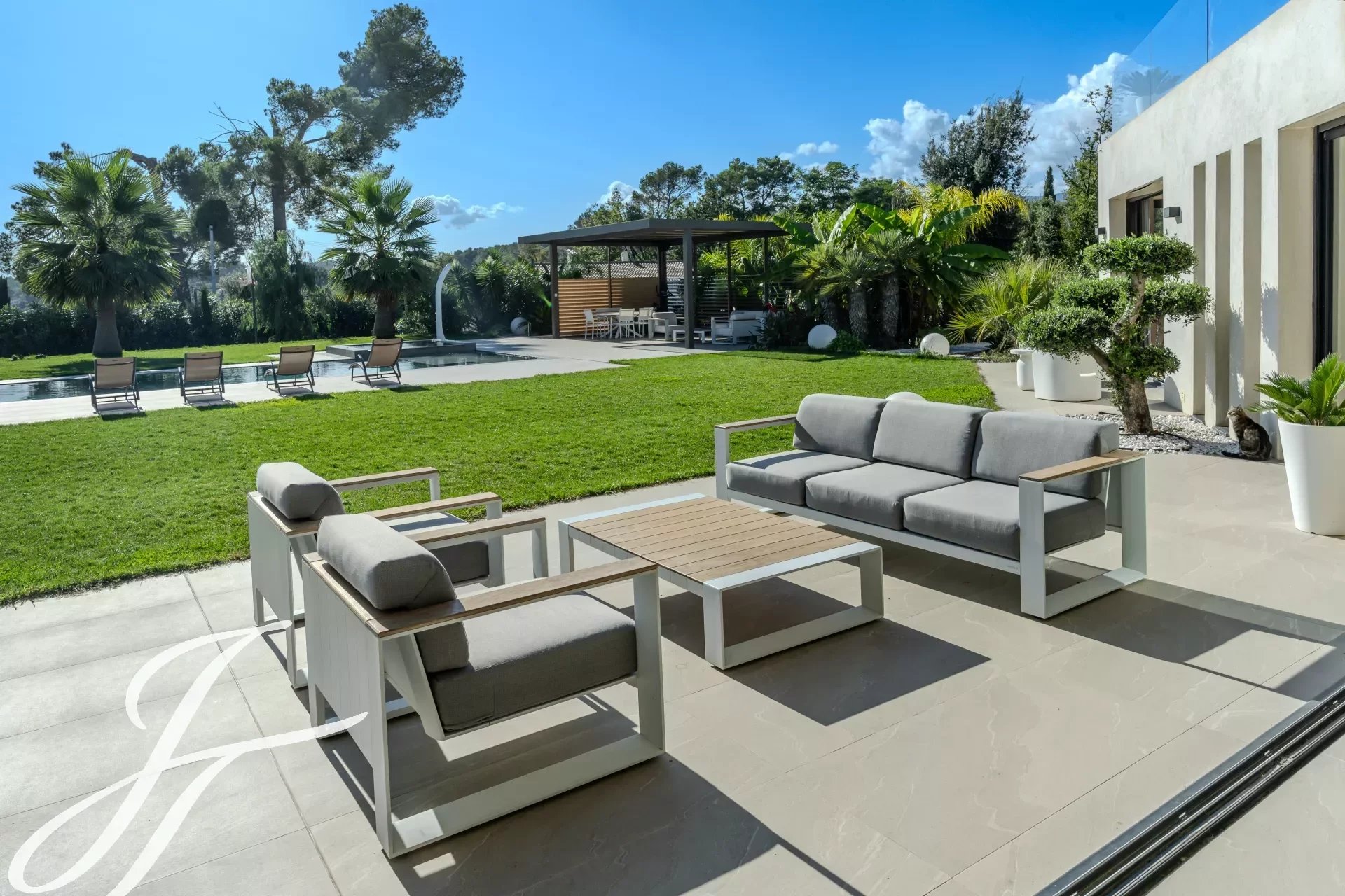 Все комнаты выходят на террасу, к подогреваемому бассейну и домику у бассейна, идеальному для наслаждения солнечными днями.