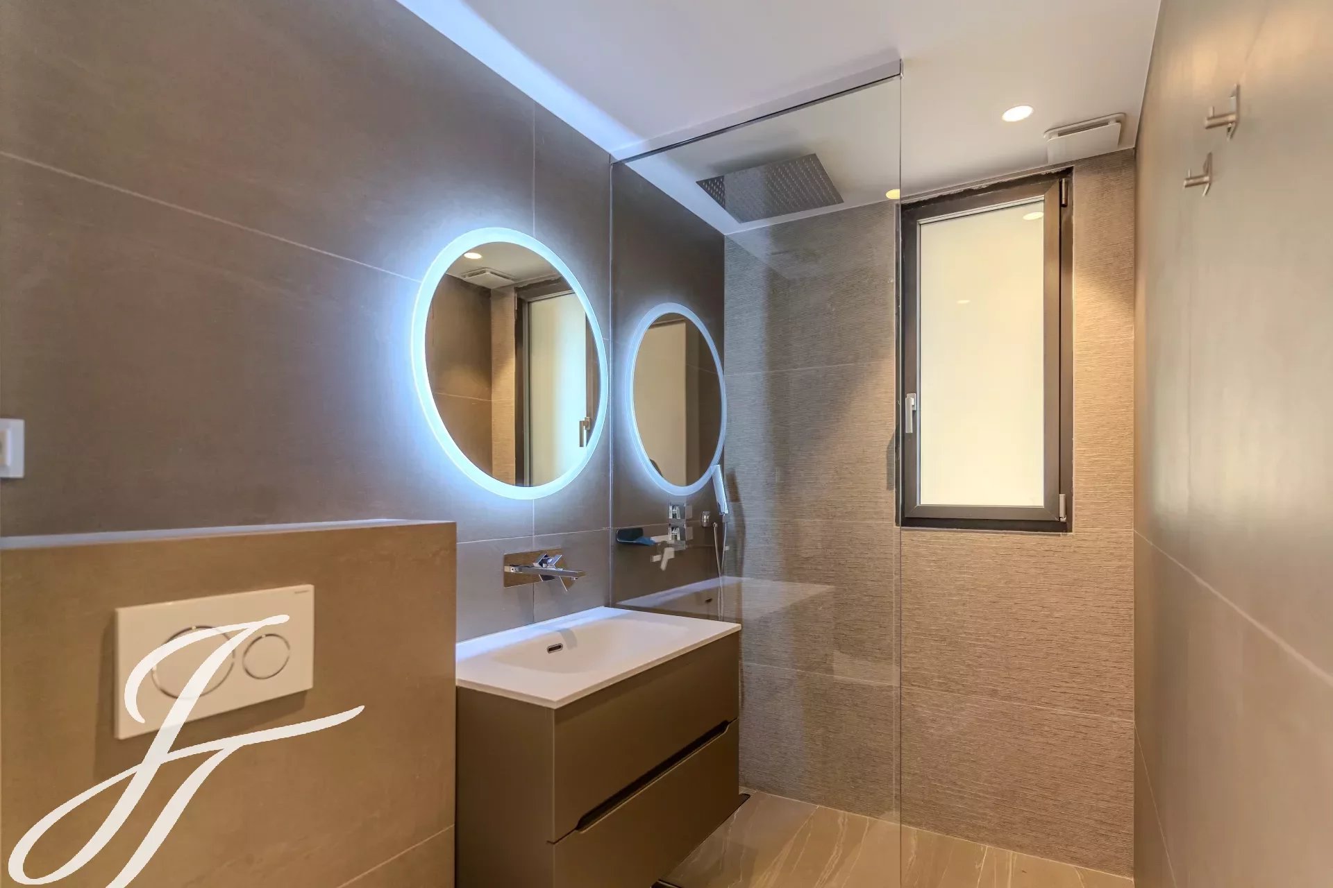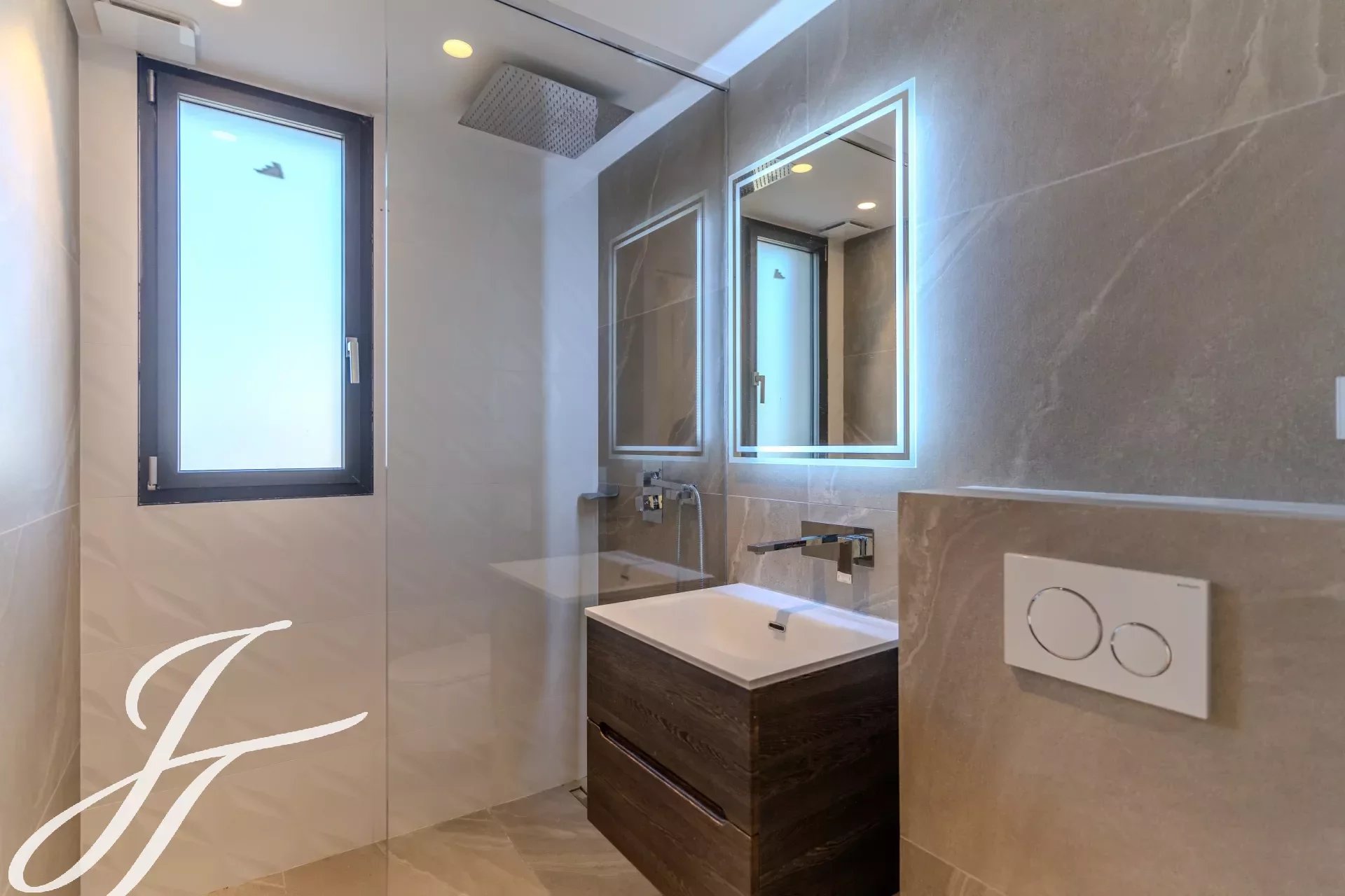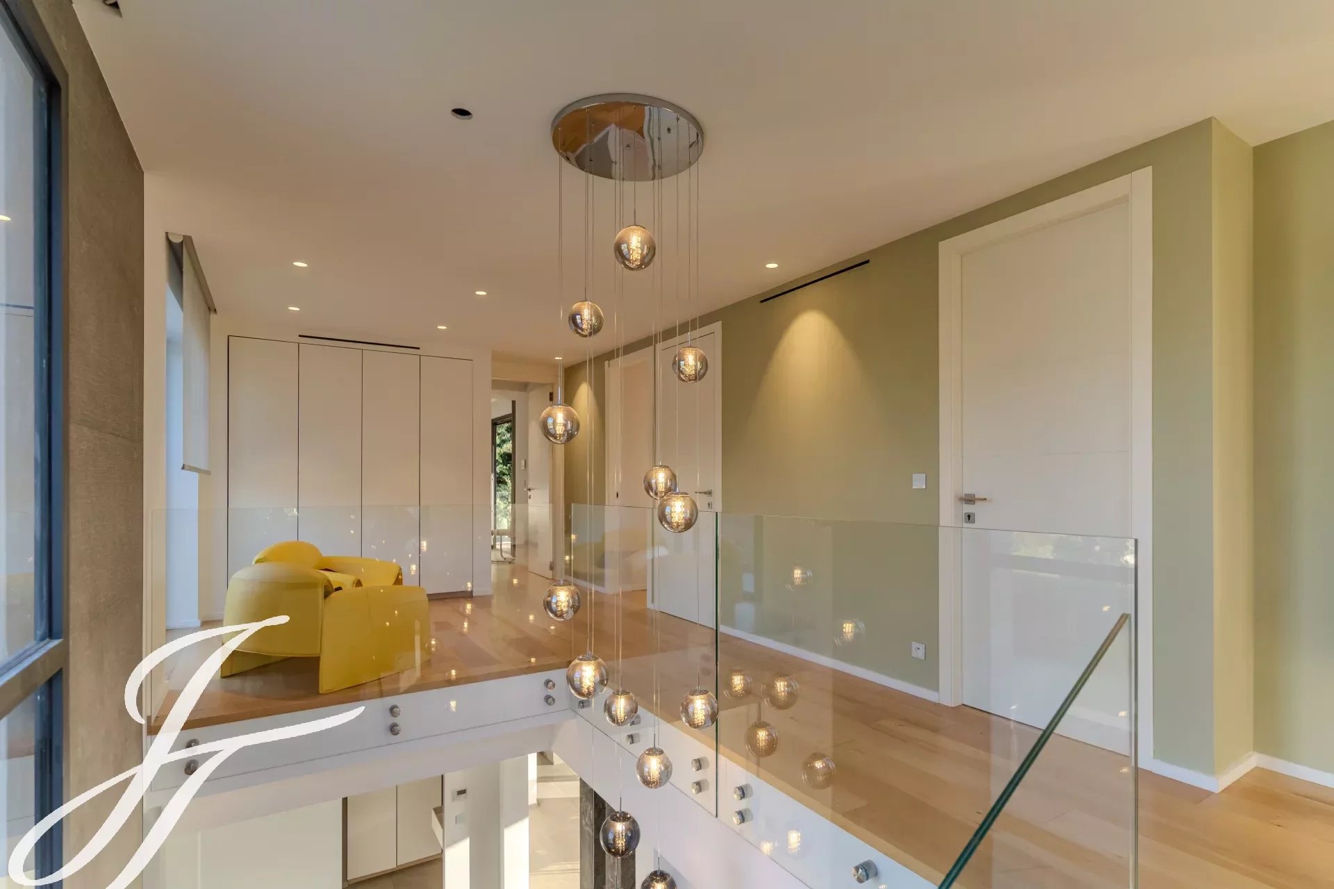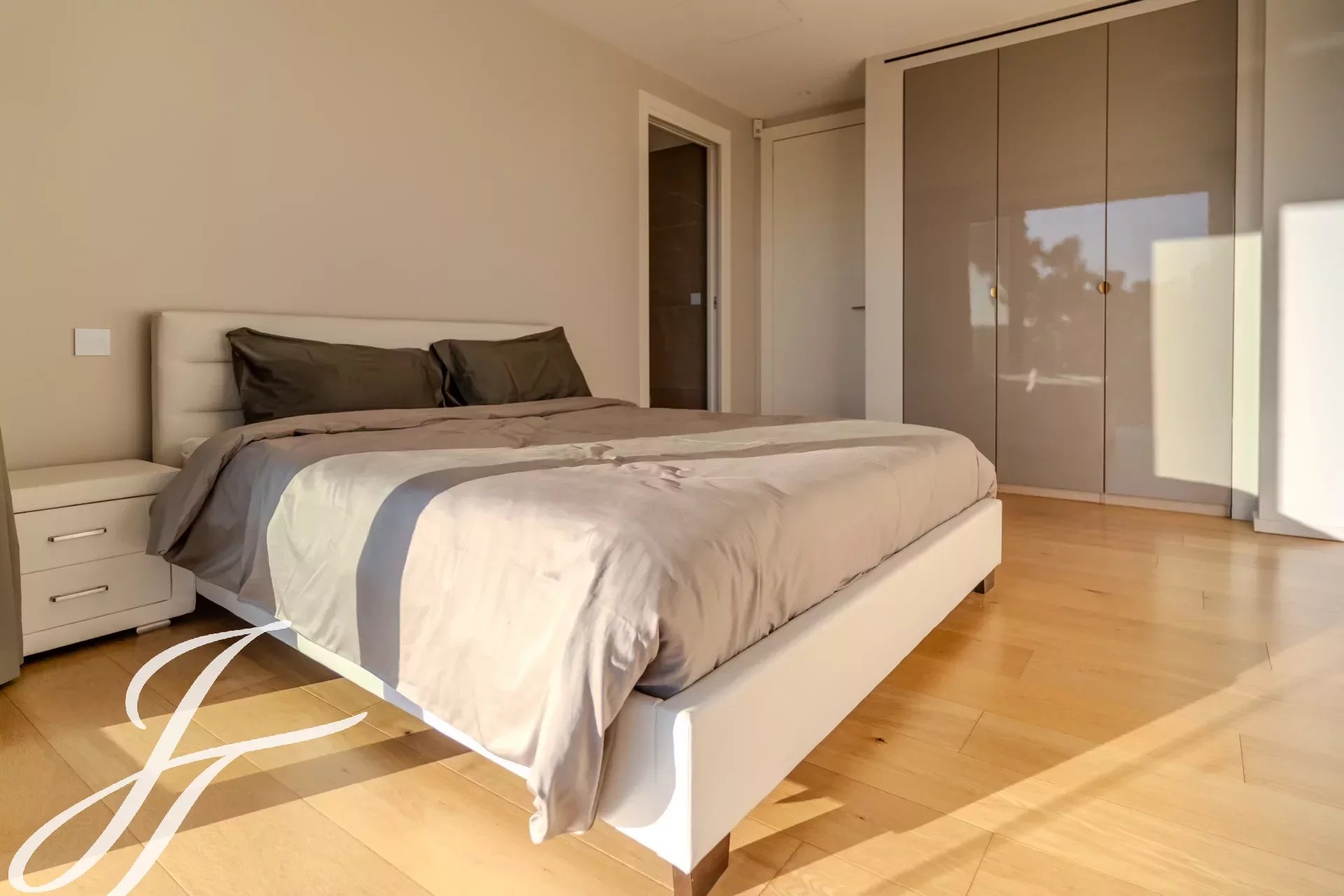 Наверху расположены 4 светлые и элегантные спальни, каждая с собственной душевой комнатой и выходом на две большие террасы с великолепными видами.