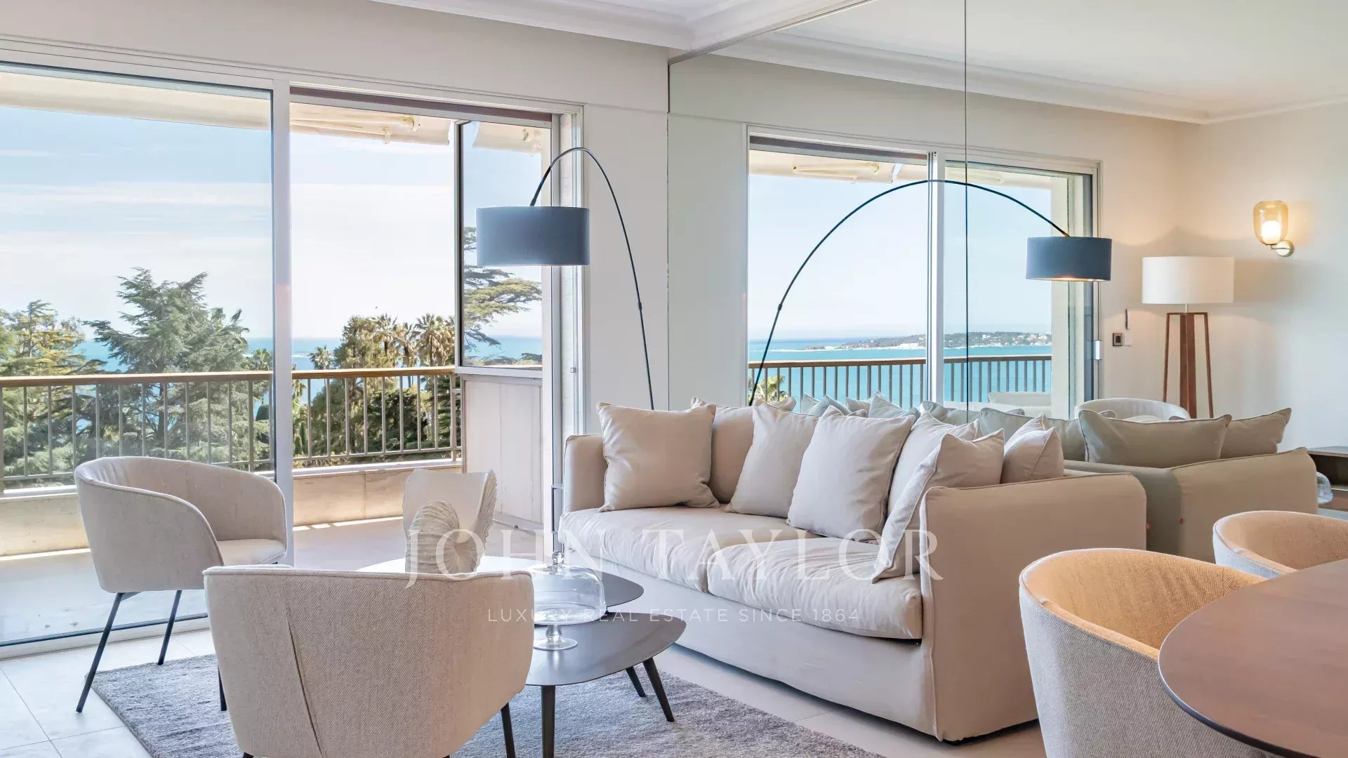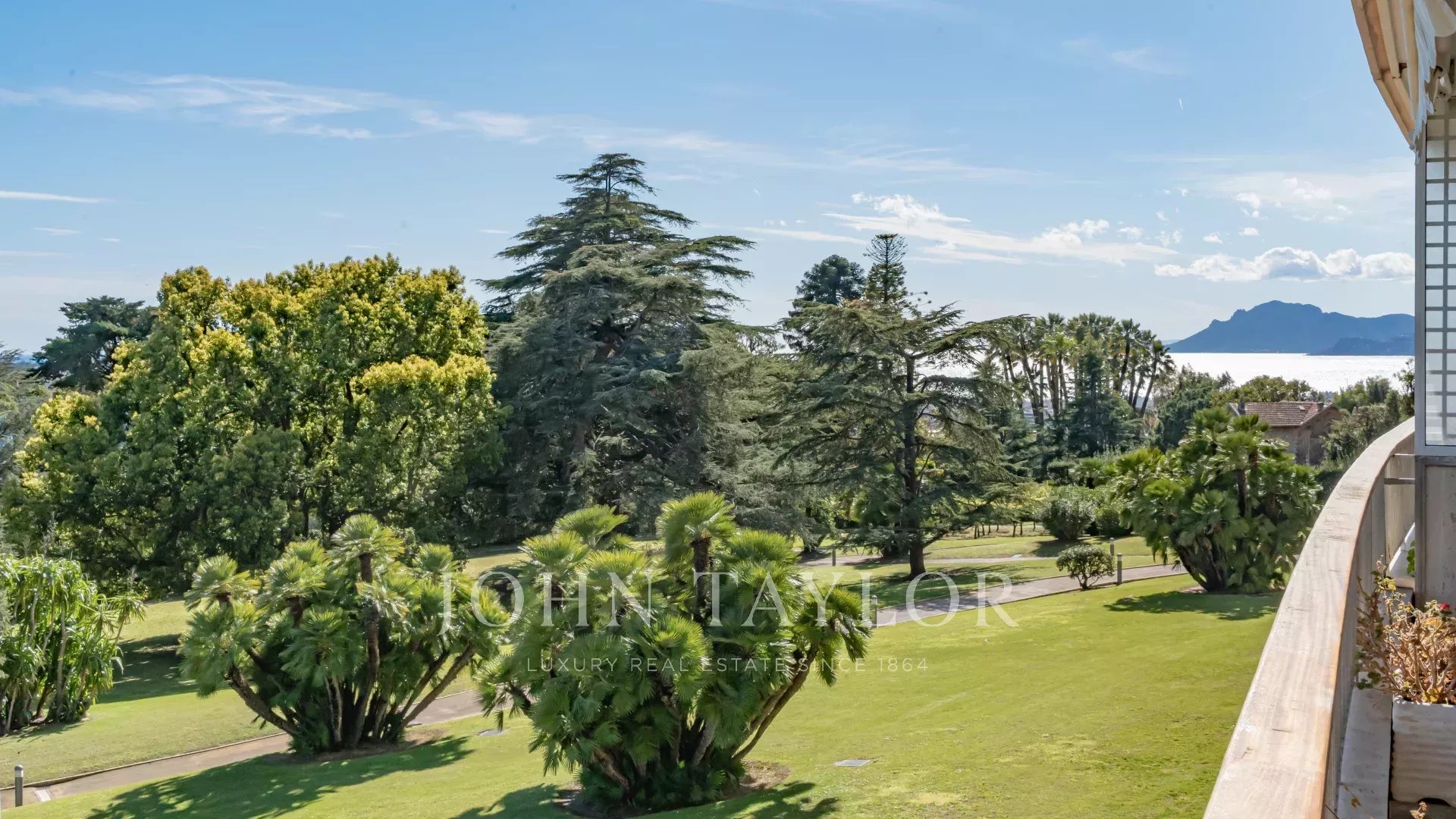 Гостиная и главная спальня выходят на просторную террасу площадью около 20 м², с которой открывается великолепный вид на парк и море.