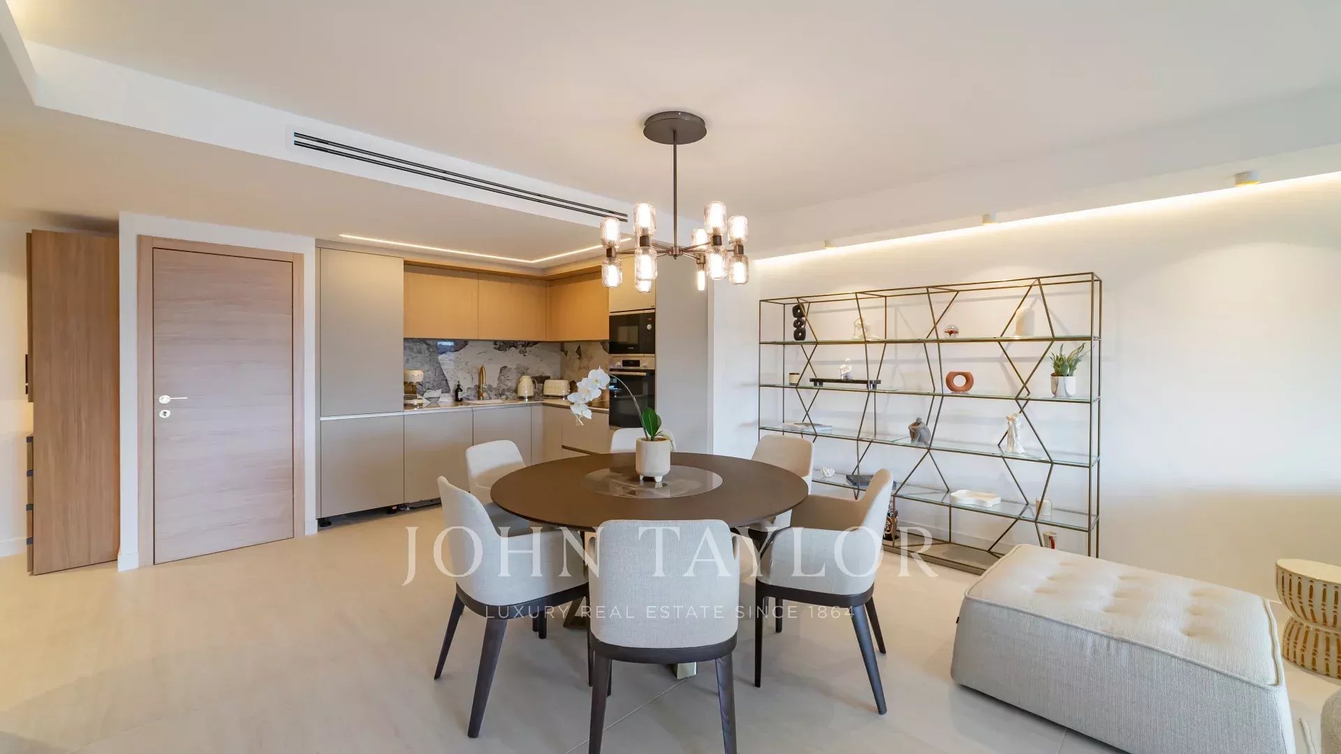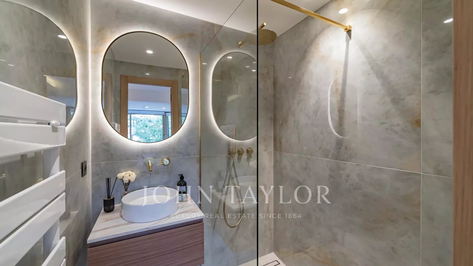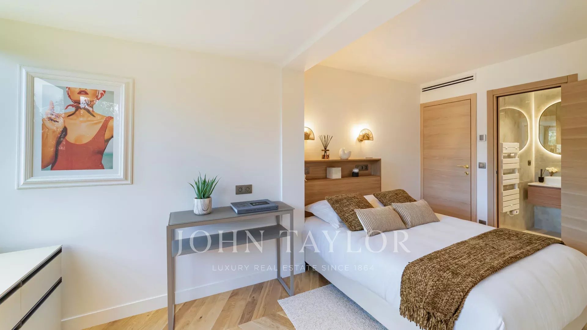 Она предлагает около 100 м² жилой площади, расширенной великолепной террасой площадью 21 м² с видом на море. Квартира состоит из гостиной, полностью оборудованной кухни и трех спален с ванными комнатами, каждая из которых имеет собственную душевую комнату.