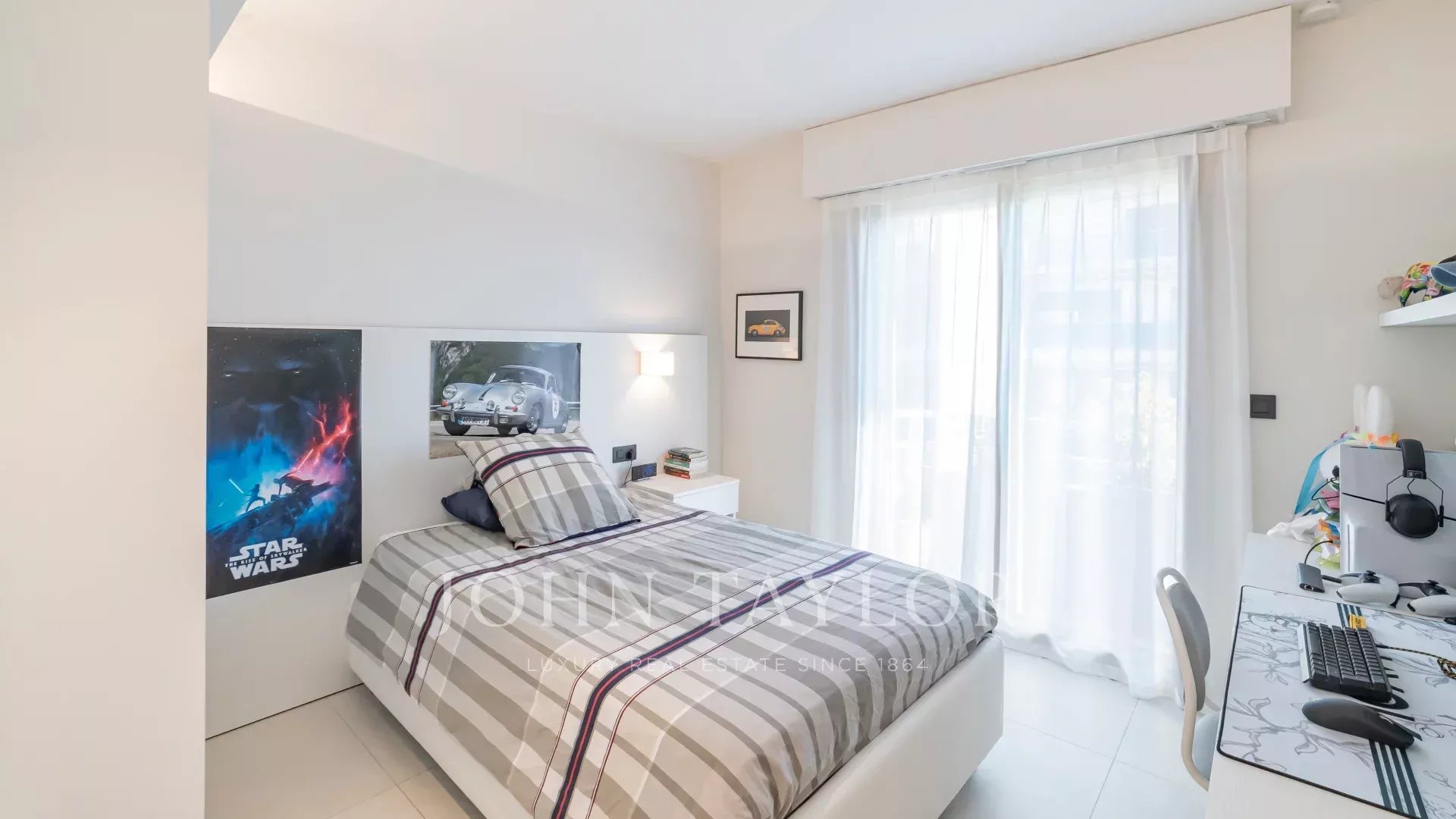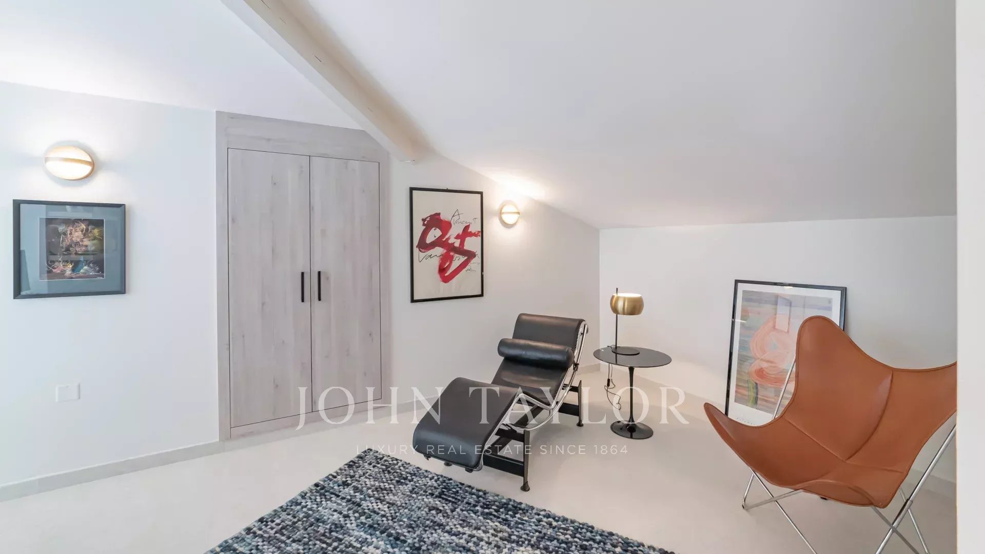Террасы площадью около 50 м². Выходящий на южную сторону, он занимает площадь более 200 м² (173,49 м² Loi Carrez) и состоит из прихожей с гостевым туалетом, двойной гостиной с оборудованной кухней открытого плана, главной спальни с собственной душевой комнатой, кабинетом и гардеробной, выходящей на террасу, и двух других спален, каждая из которых выходит на балкон и имеет общую душевую комнату. На антресольном этаже расположены игровая комната, кабинет/спальня, душевая комната и подсобное/кладовое помещение.