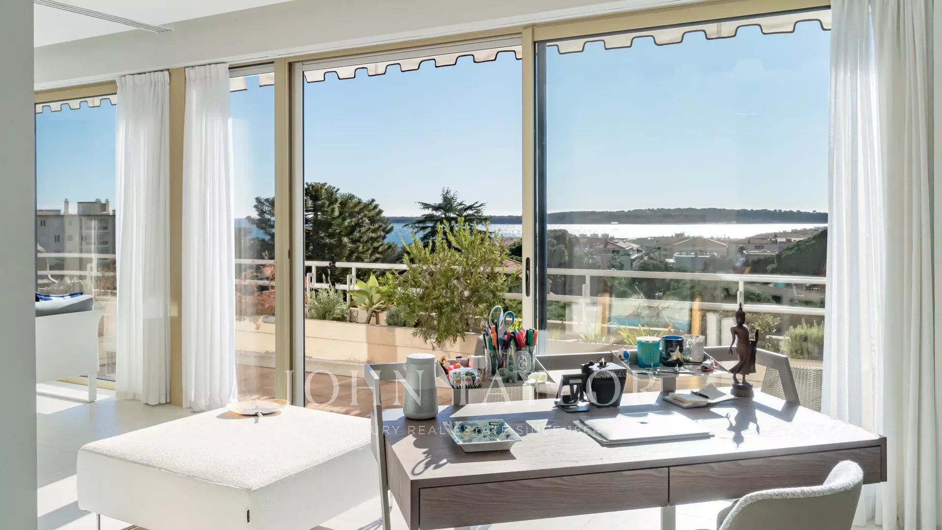 Великолепный, полностью отремонтированный двухуровневый пентхаус в нескольких минутах ходьбы от набережной Круазетт и магазинов, с потрясающим видом на море и Леринские острова.