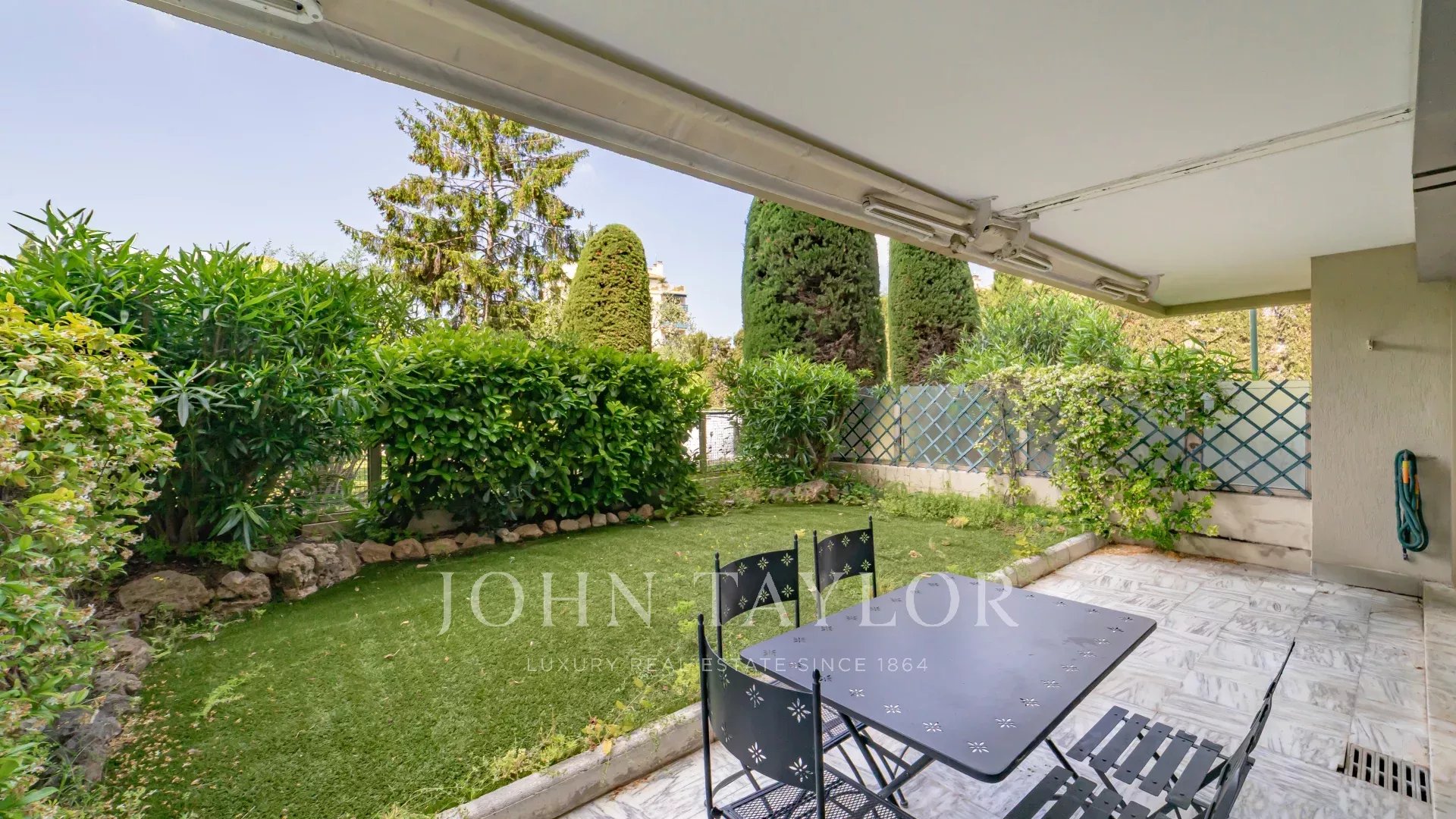 В роскошной охраняемой резиденции с бассейном и теннисным кортом, привлекательная 2-комнатная квартира с красивым садом.