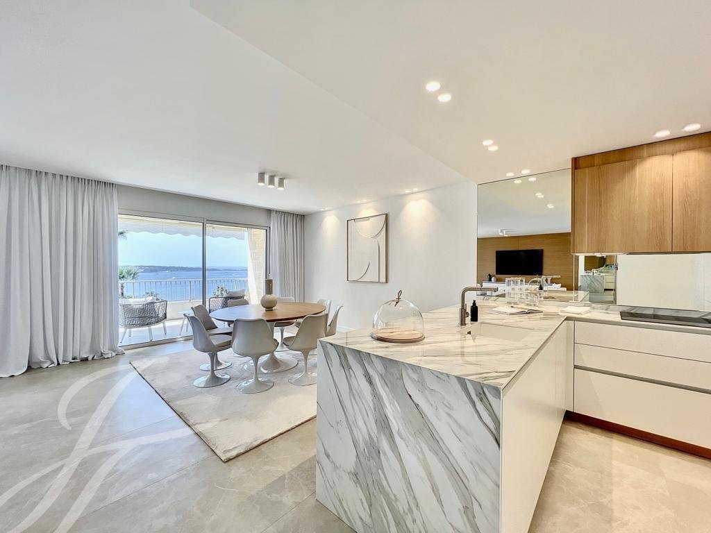 Эта квартира площадью 144 м² расположена в роскошной резиденции на верхнем этаже, откуда открывается уникальный панорамный вид на море и Каннский залив.