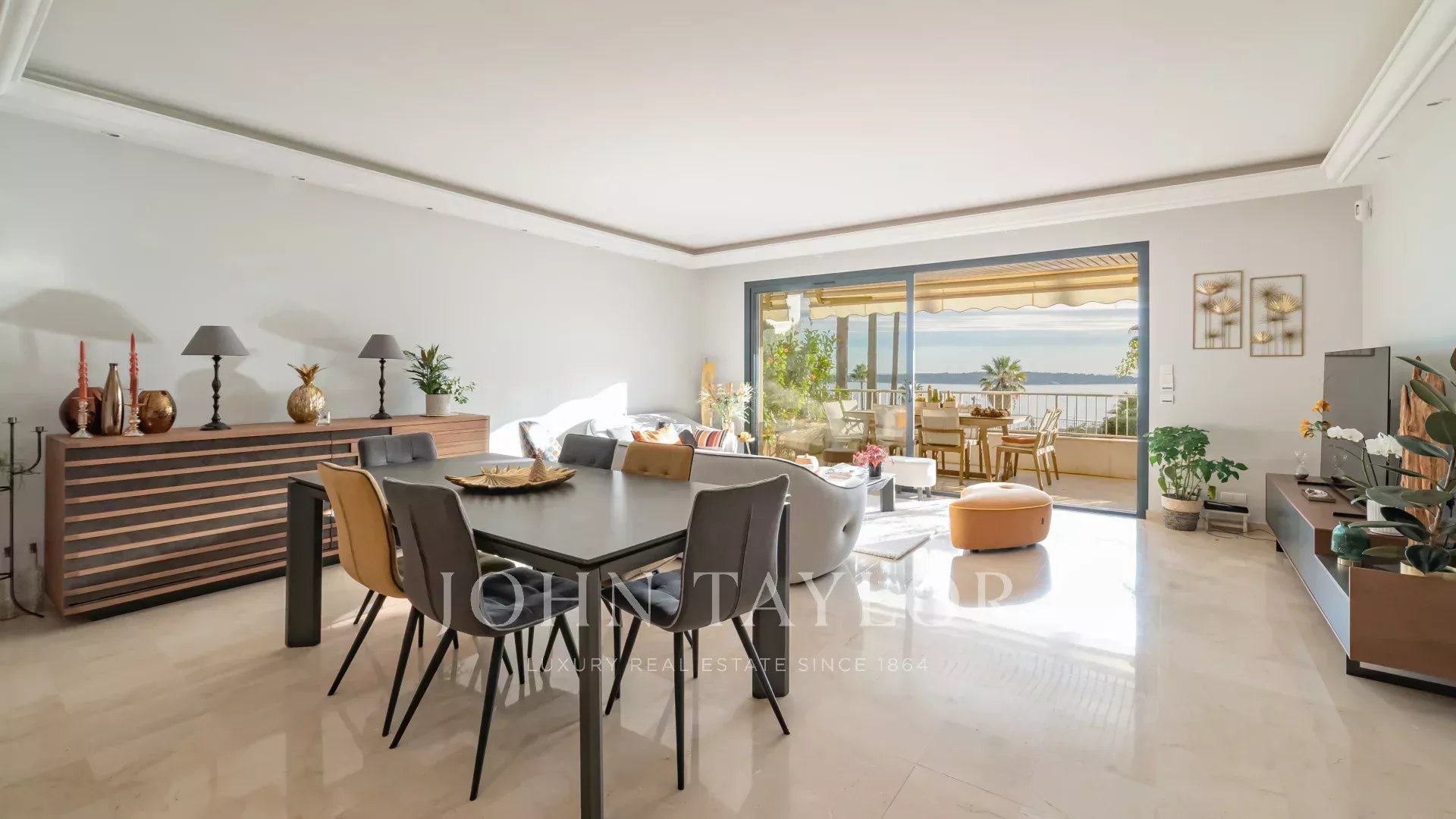 Угловая квартира площадью 127 м² с большой террасой и уникальным панорамным видом на море и Леринские острова в роскошной резиденции.