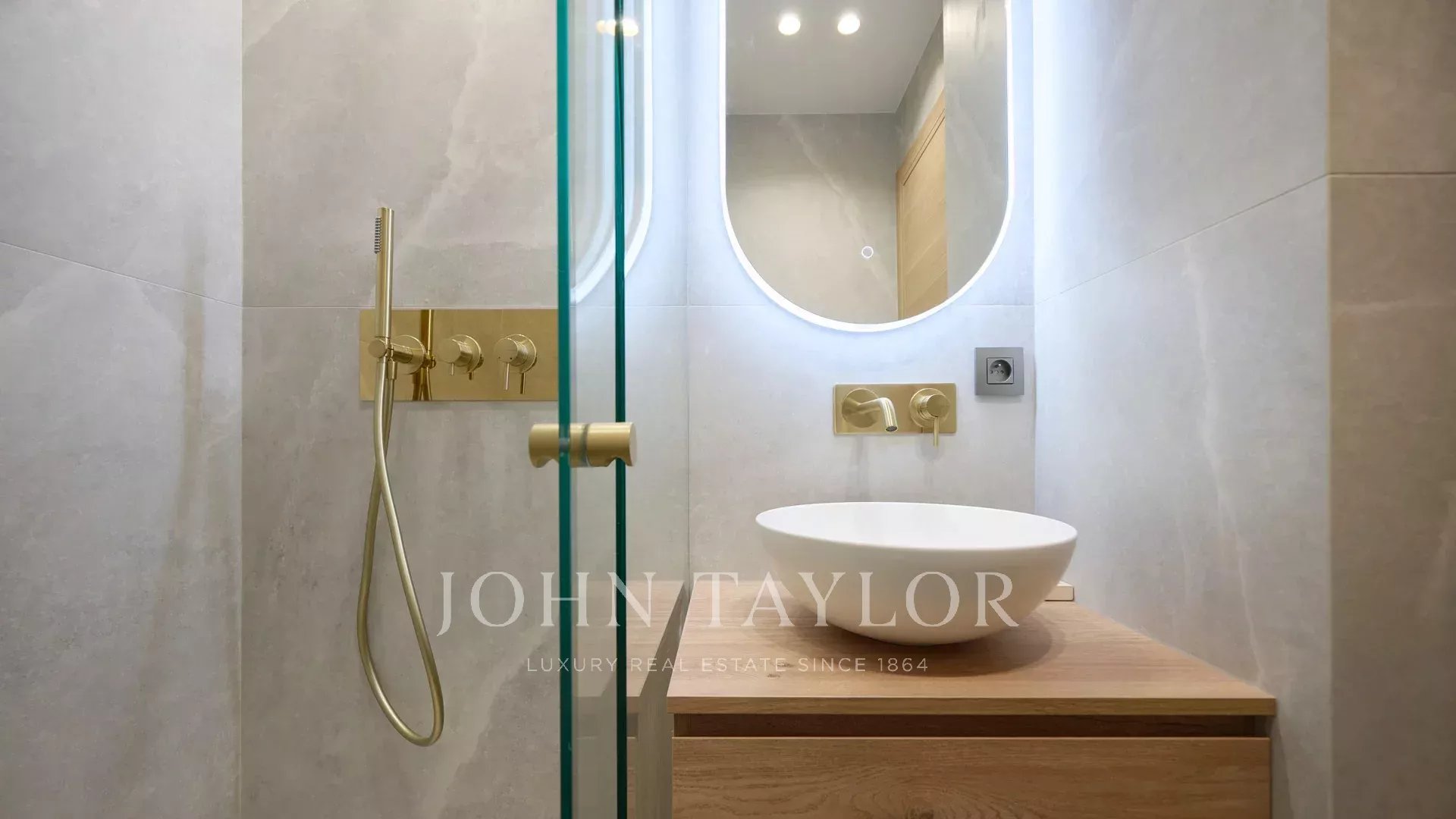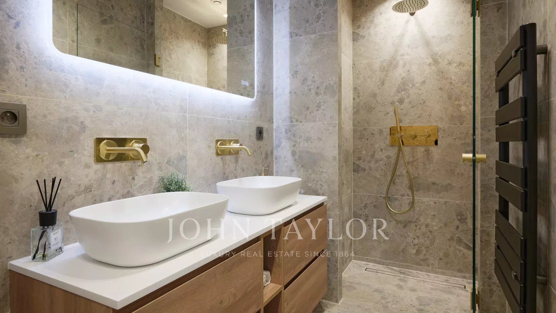 Жилая площадь квартиры составляет 117 м² (106,12 м² - Loi Carrez), она включает в себя гостиную с кухней открытого плана, 3 спальни с ванными комнатами и террасу площадью 27 м², выходящую на юг.