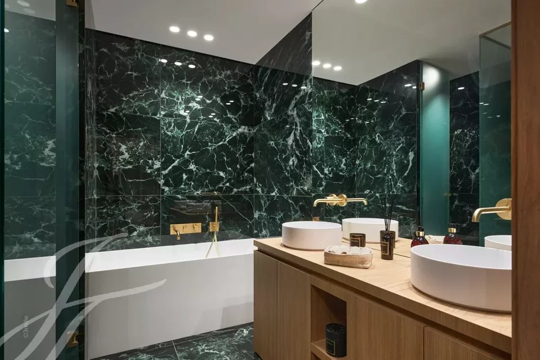 Полностью отремонтированная в изысканном современном стиле с использованием светлых тонов, она состоит из прихожей, гостиной-столовой с кухней открытого плана, выходящей на террасу, четырех спален с соответствующими душевыми комнатами и туалетами.