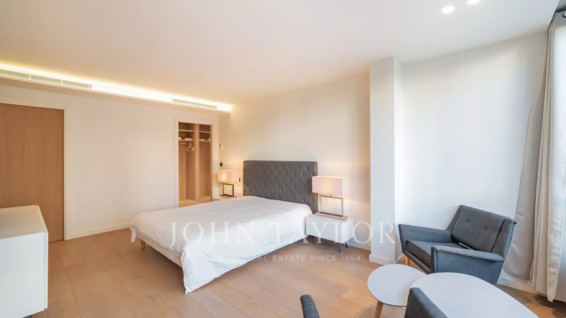 Эта красивая 4-комнатная квартира расположена в роскошной резиденции на набережной Круазетт. Из окон открывается потрясающий вид на парк и море.