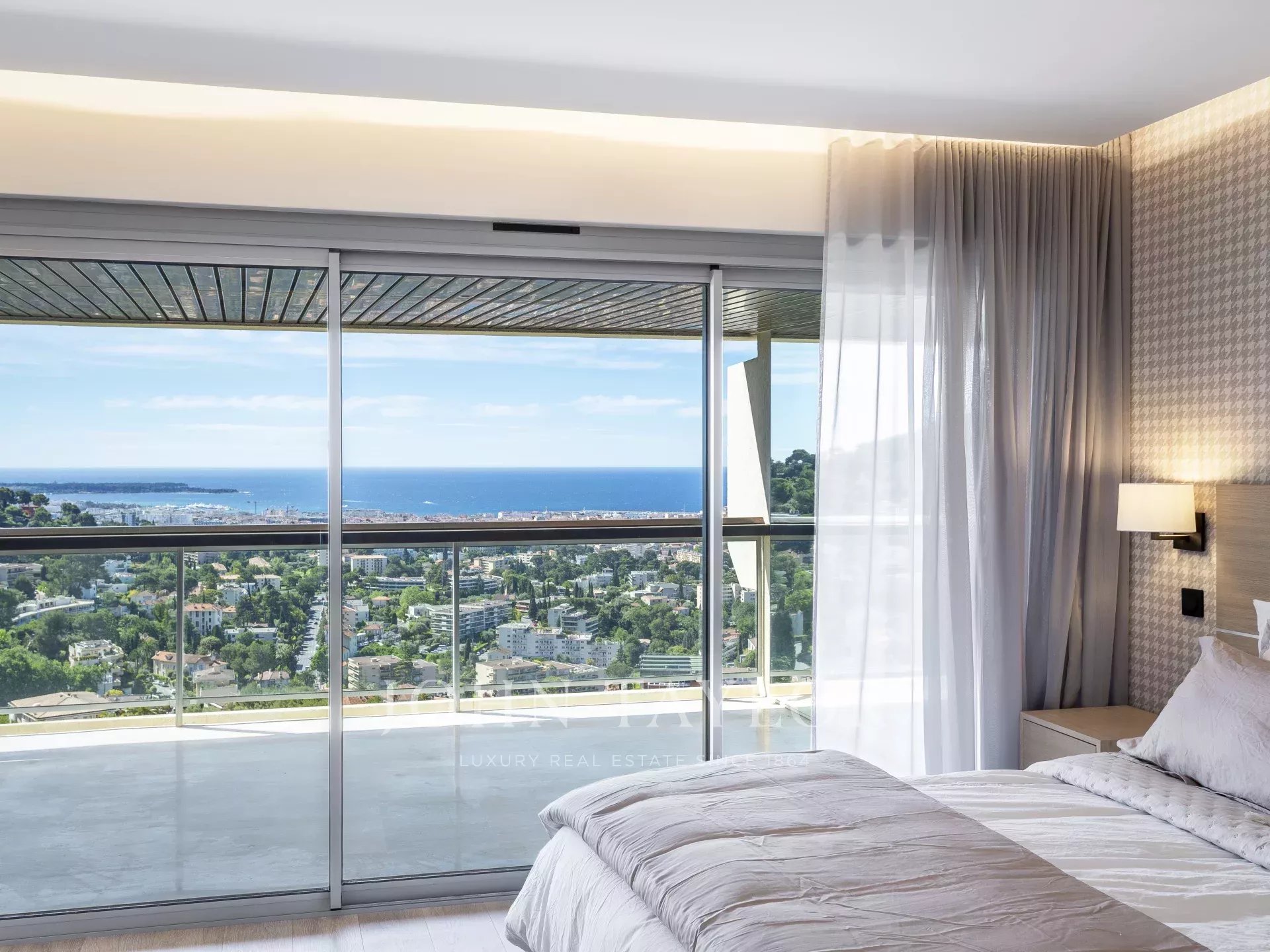 Эта квартира на верхнем этаже престижной резиденции Le Cannet Résidentiel предлагает идеальное спокойное место с великолепным панорамным видом на Каннский залив от Леринских островов до массива Эстерель.