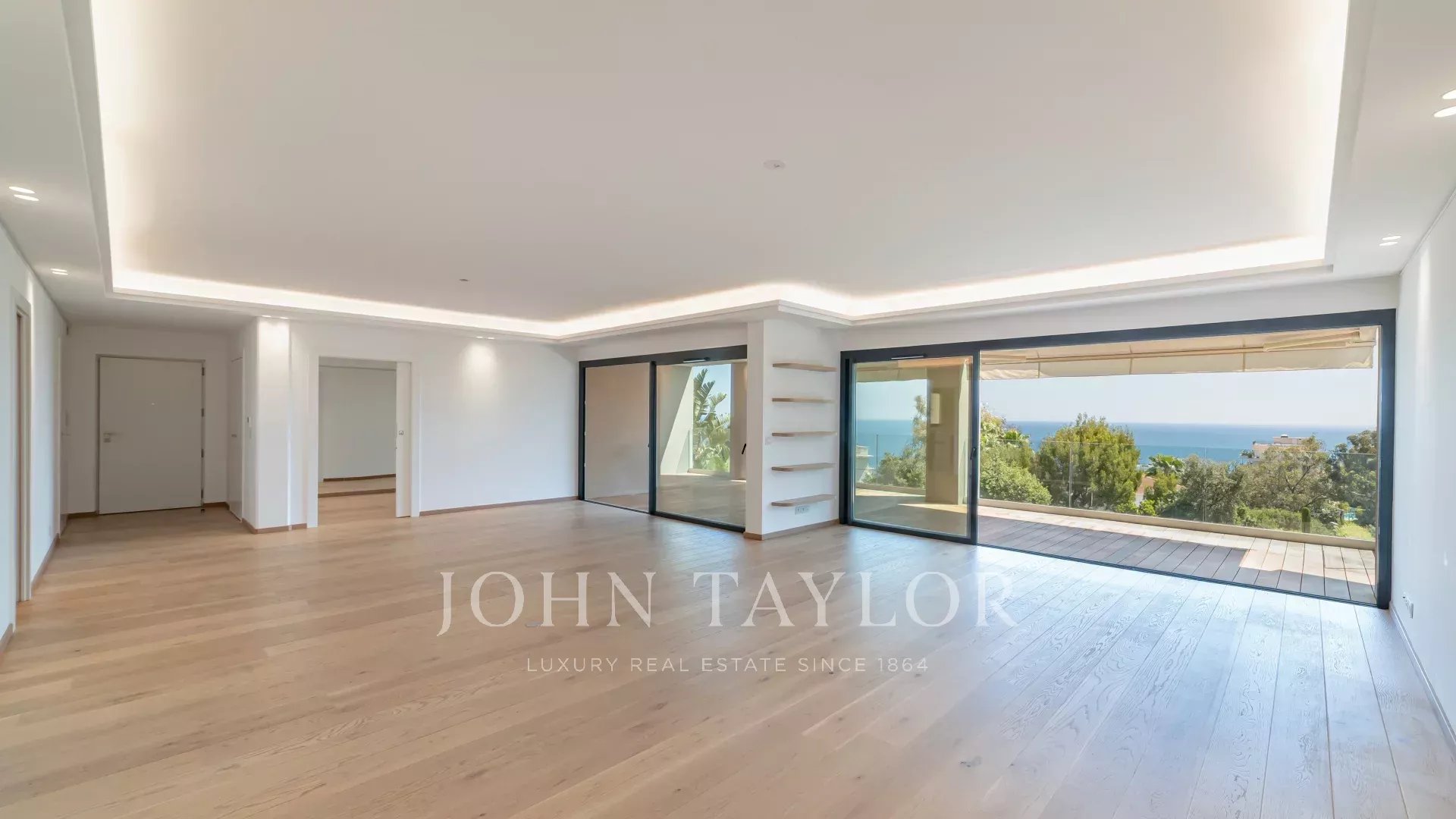 Эта красивая квартира в отличном состоянии находится в недавно построенном жилом комплексе с бассейном, тренажерным залом и круглосуточной охраной, с большой террасой и прекрасным видом на море и Кап д'Антиб.