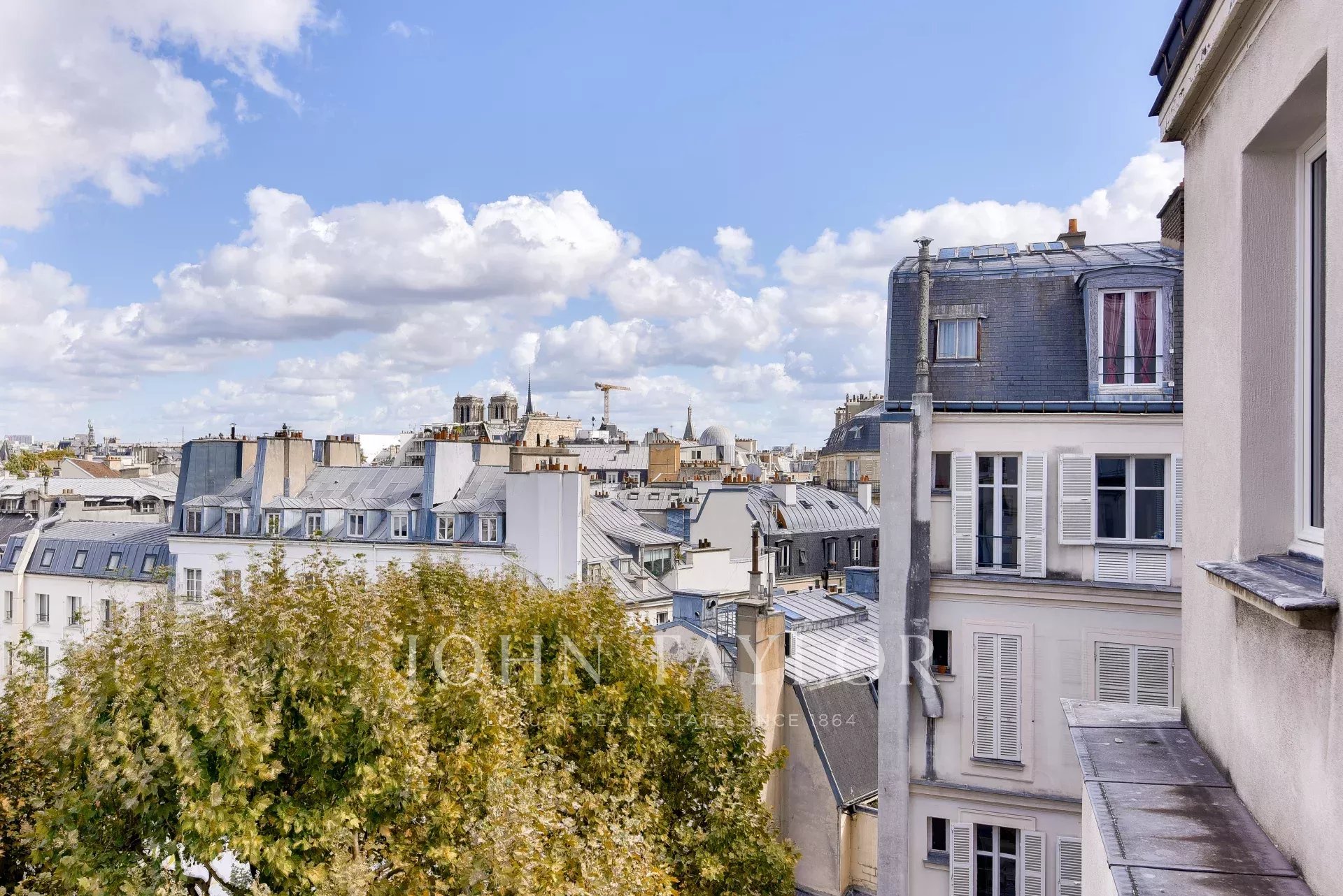 Из окон открывается великолепный вид на весь Париж, включая церковь Сен-Сюльпис, Пантеон, Люксембургский дворец, Эйфелеву башню, Сакре-Кёр и Нотр-Дам.