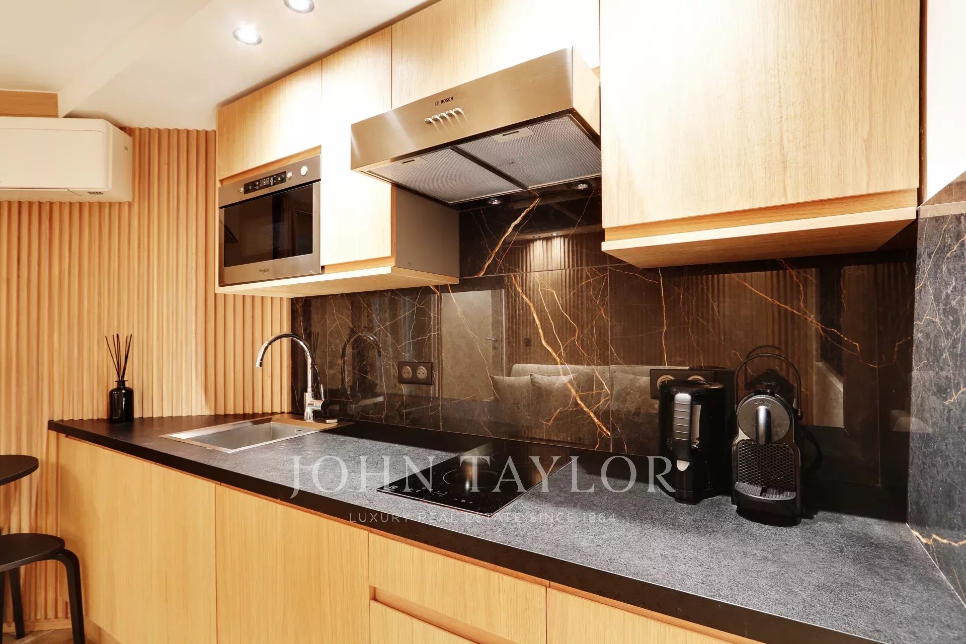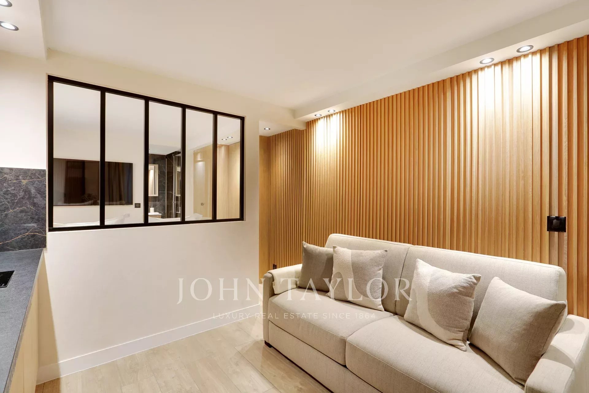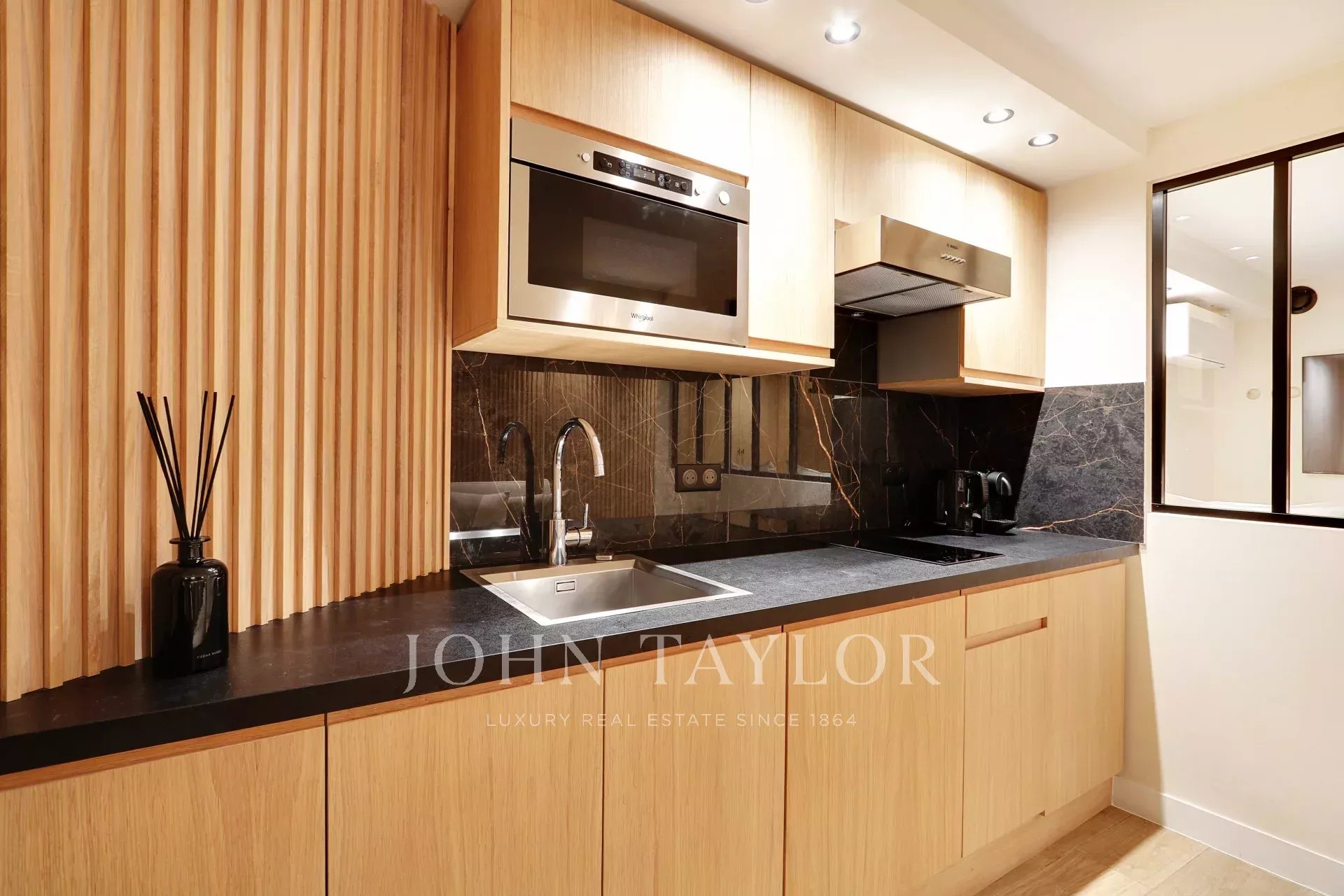 В самом центре города, на улице Сен-Андре дез Артс, в здании начала 10 века, эта превосходная двухкомнатная квартира площадью 22 м2 была полностью отремонтирована архитектором с использованием качественных материалов.