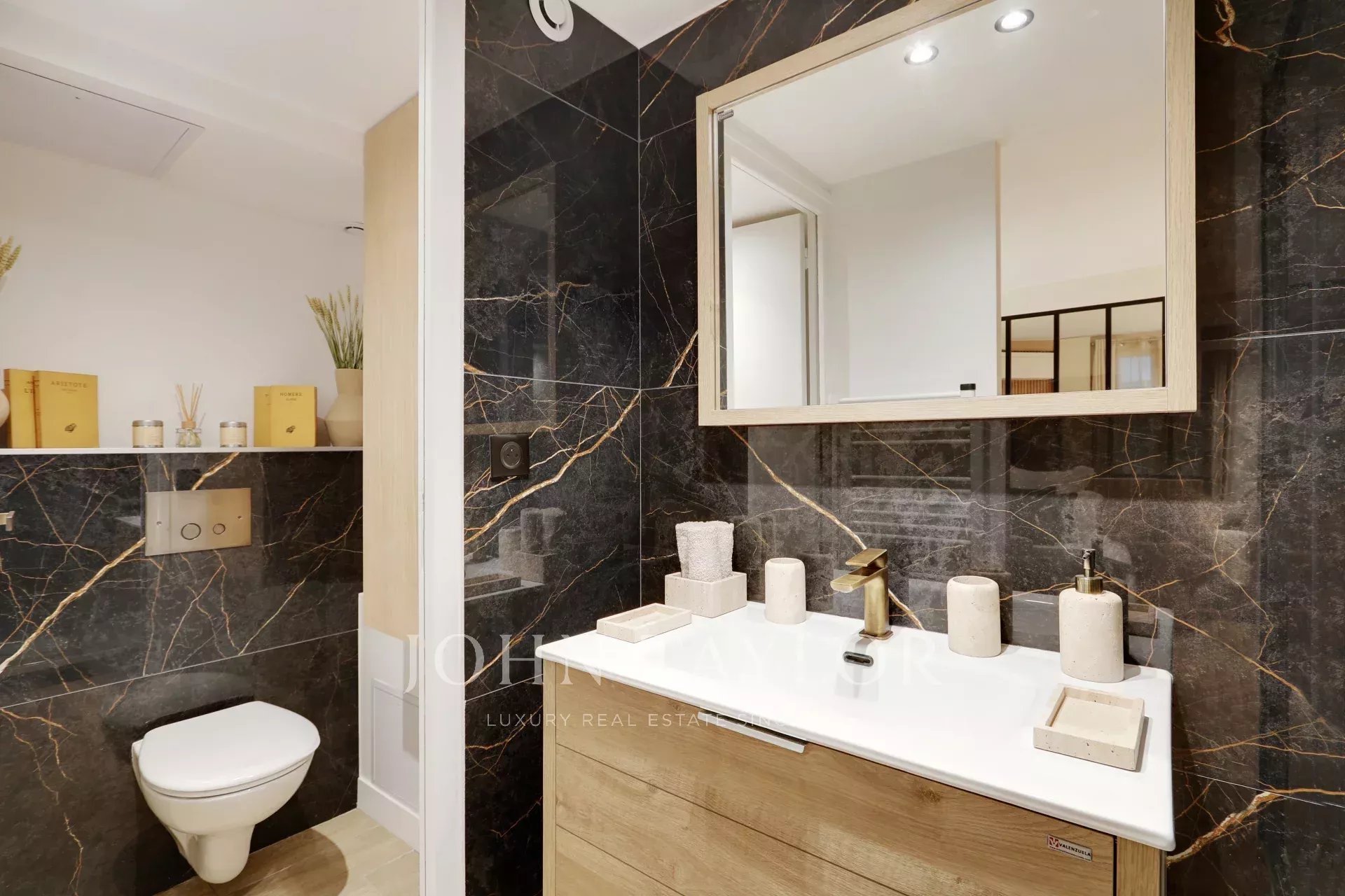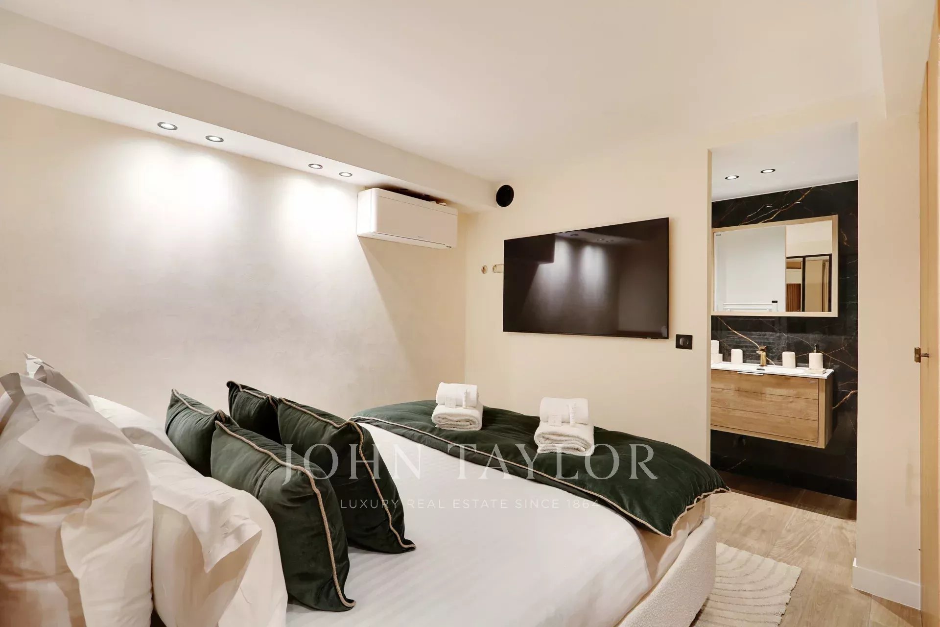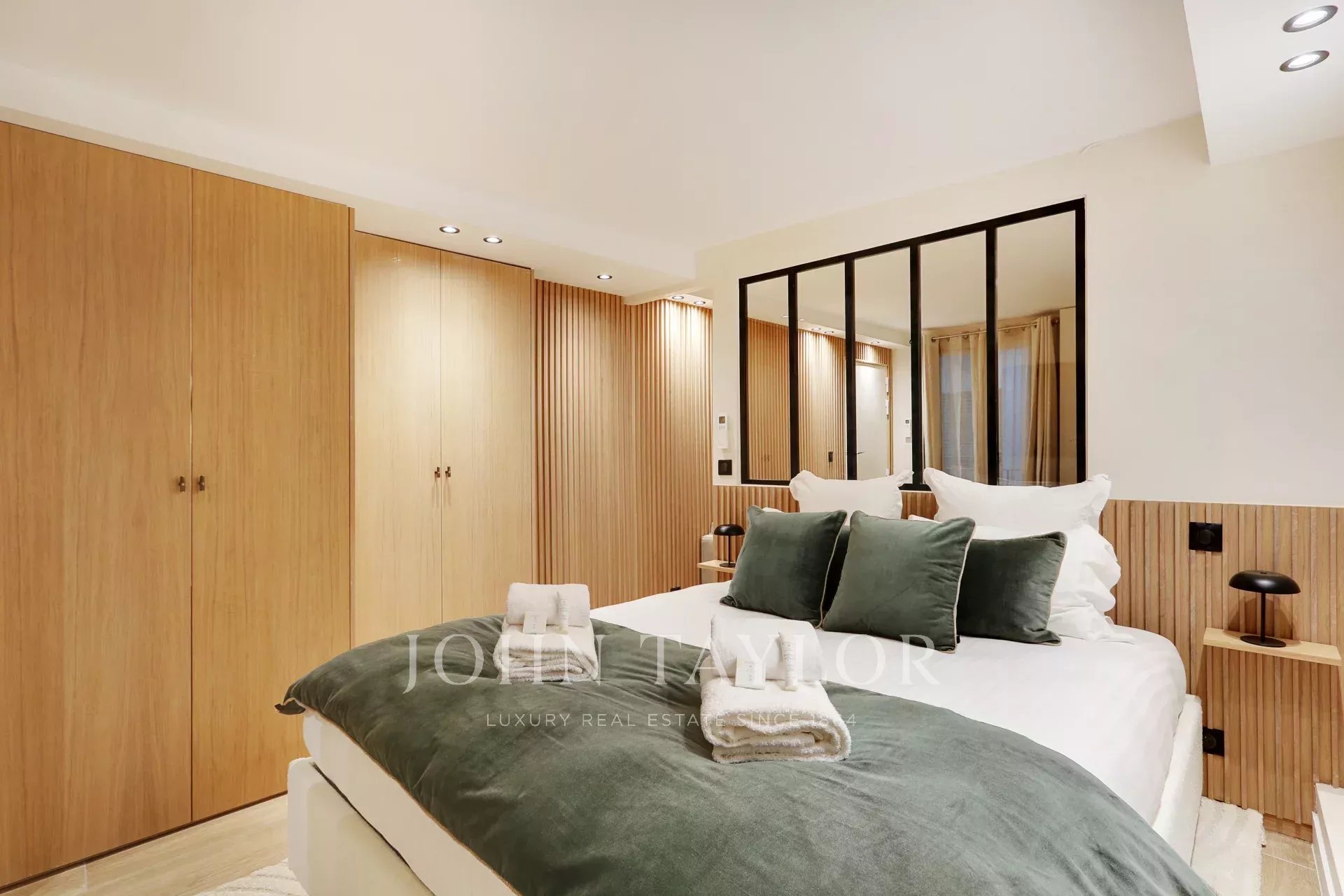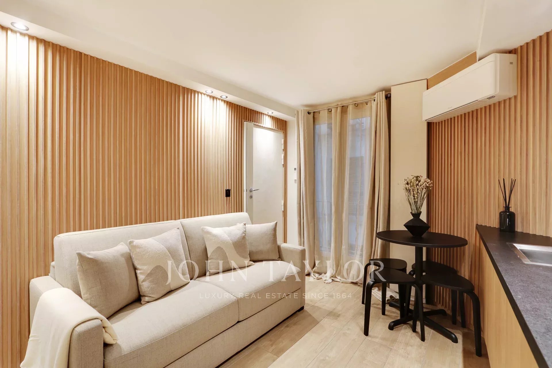 В самом центре города, на улице Сен-Андре дез Артс, в здании начала 10 века, эта превосходная двухкомнатная квартира площадью 22 м2 была полностью отремонтирована архитектором с использованием качественных материалов.
