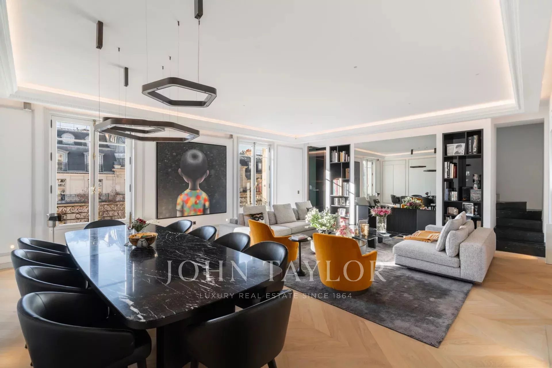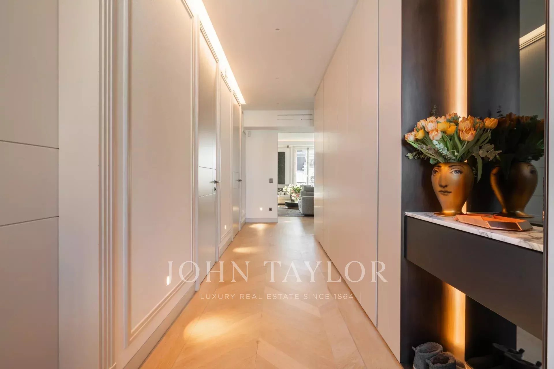 Площадью 190 м2, эта двухуровневая квартира на верхних этажах с лифтом была отремонтирована по очень высоким стандартам.