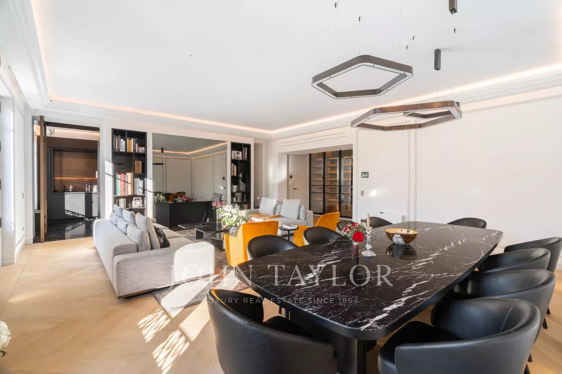 Из окон открывается потрясающий вид на Эйфелеву башню и Дом Инвалидов, а сама квартира состоит из следующих комнат:
