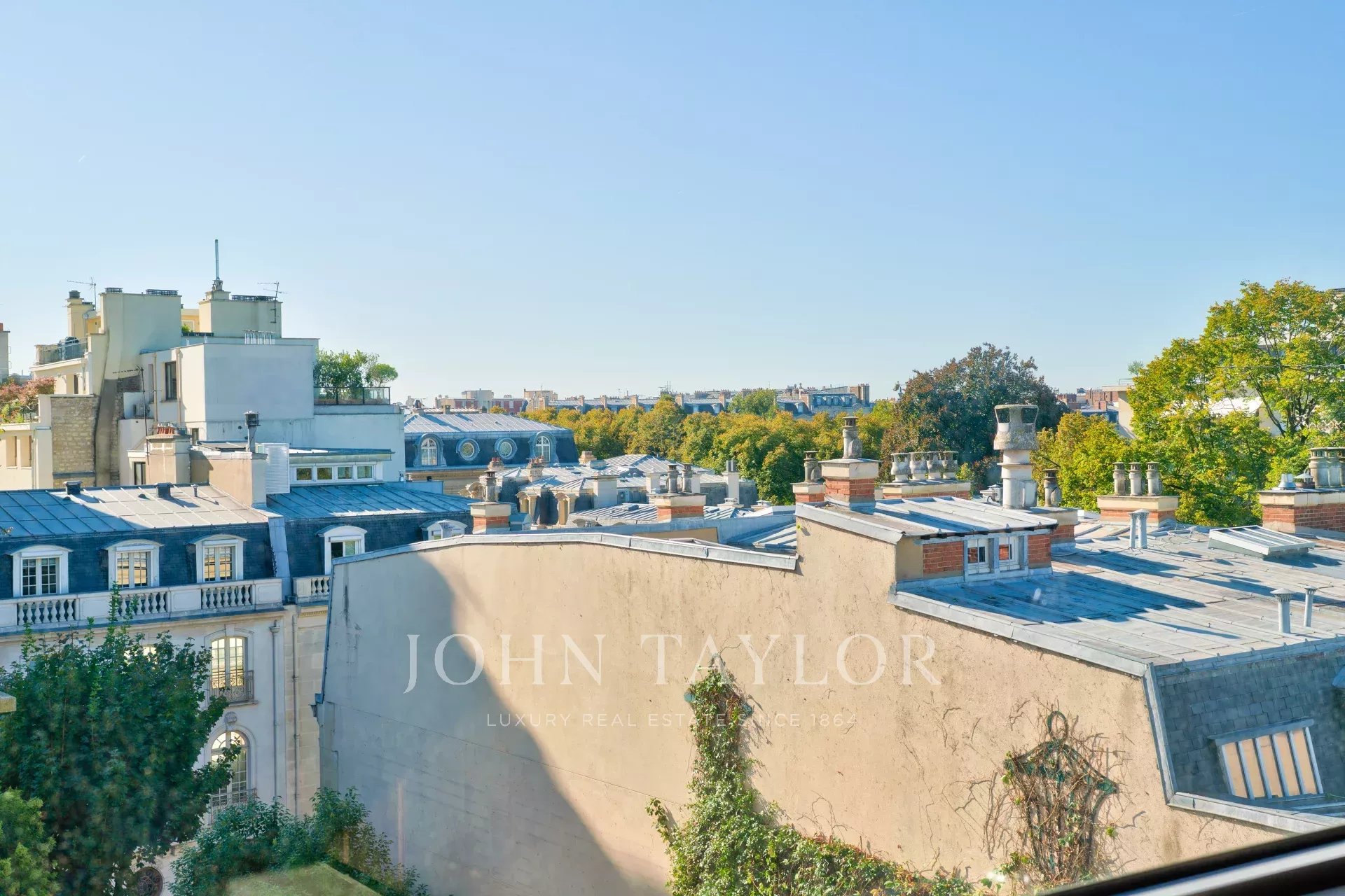 - большая, полностью оборудованная кухня с видом на крыши Парижа