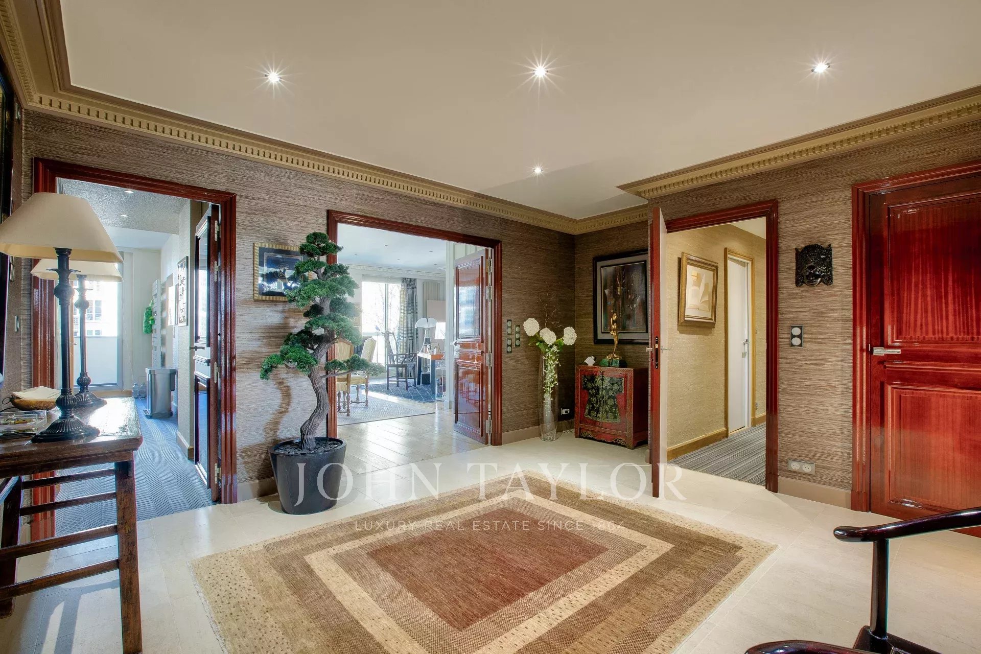 Из этой солнечной, полностью кондиционированной квартиры площадью 228,47 м² (209,44 м² каррез) с видом на сады Ranelagh и прекрасным видом на Эйфелеву башню открываются эркерные окна на очень большие балконы.