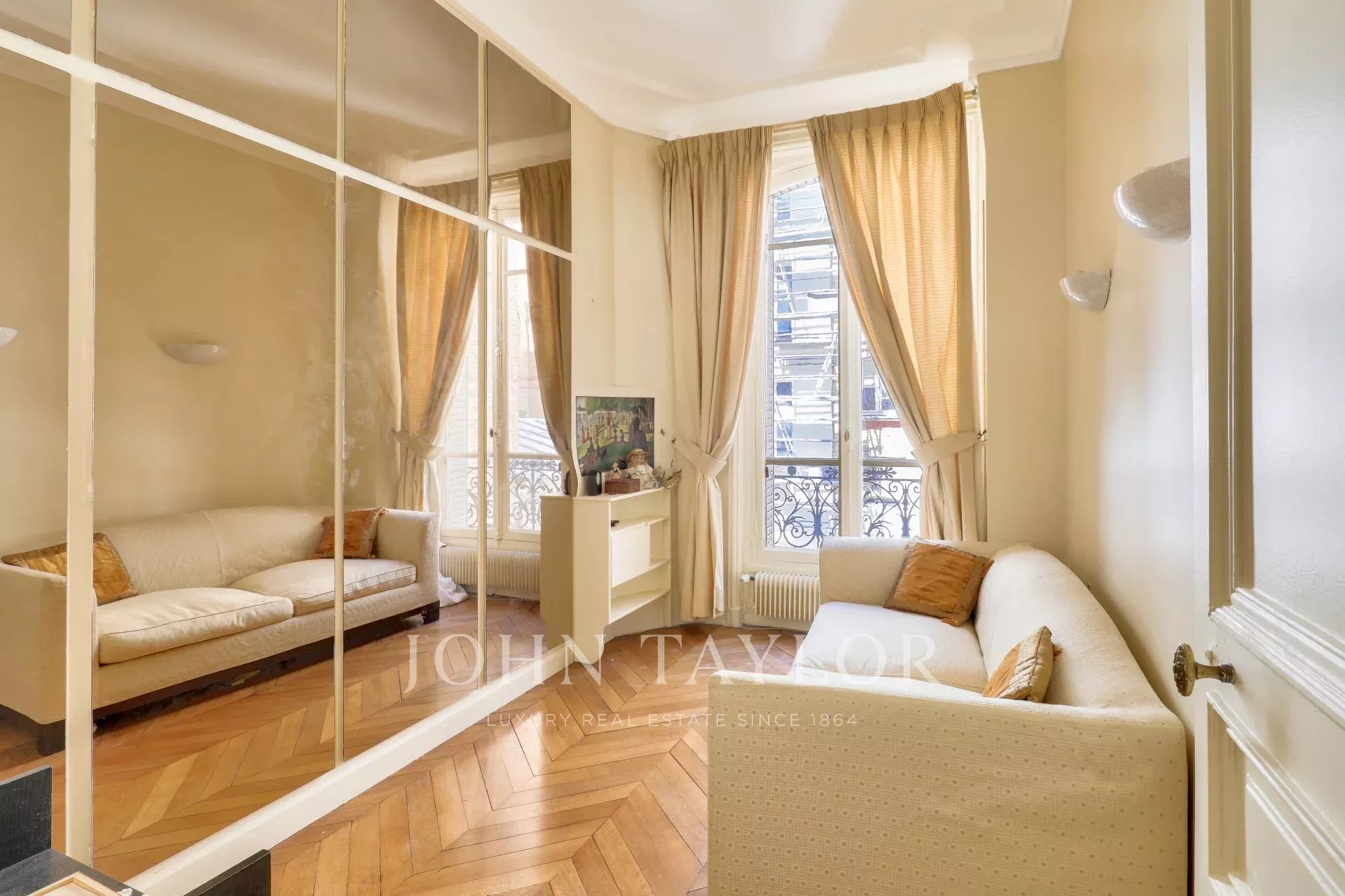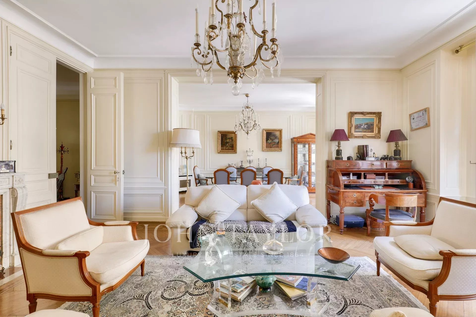 - двойная гостиная площадью 52,89 м², выходящая на юг/восток, с двумя балконами, функциональным камином и потолками высотой 3,20 м