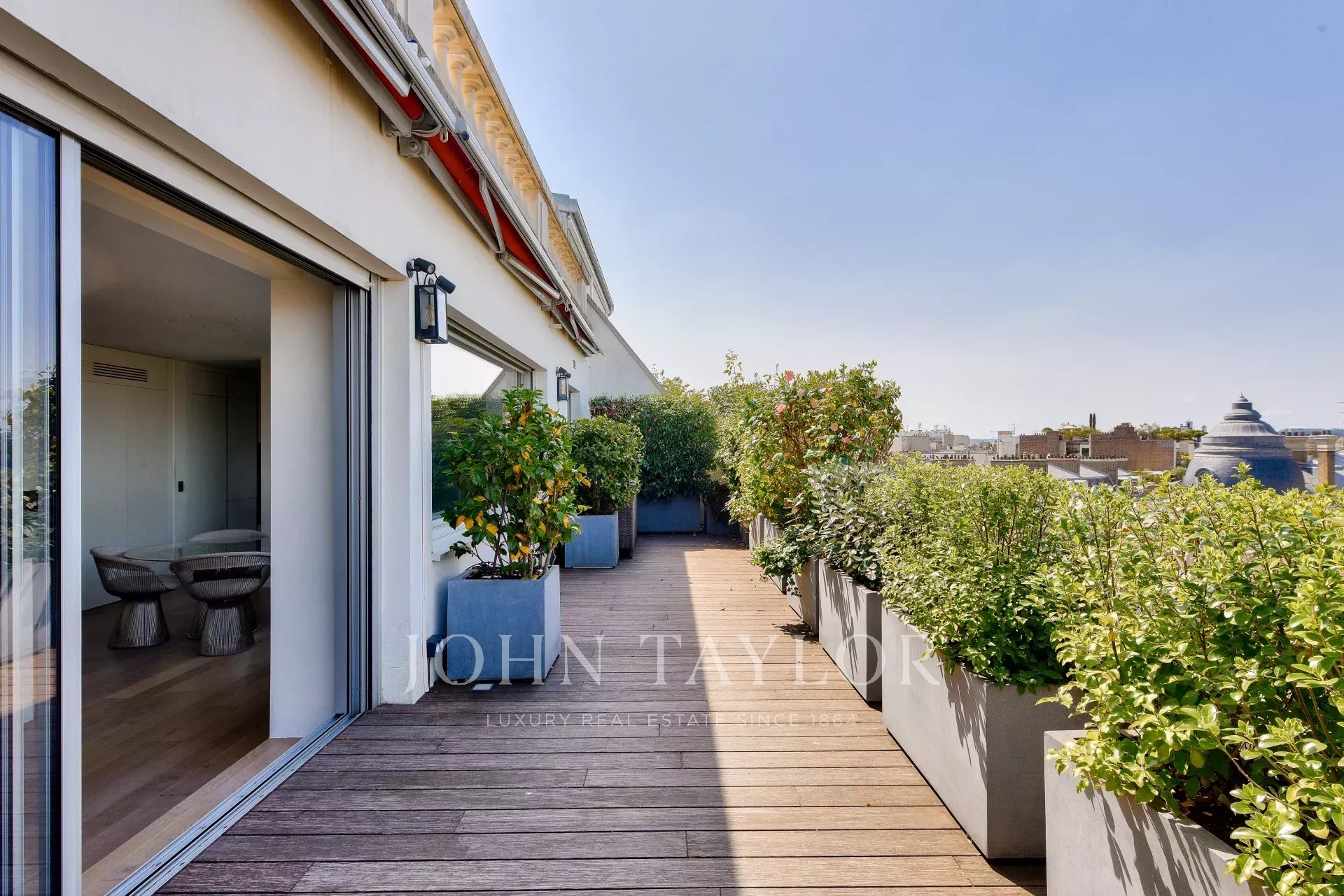 Из этого уголка спокойствия открывается панорамный вид на Эйфелеву башню и Ла Дефанс с обеих сторон.