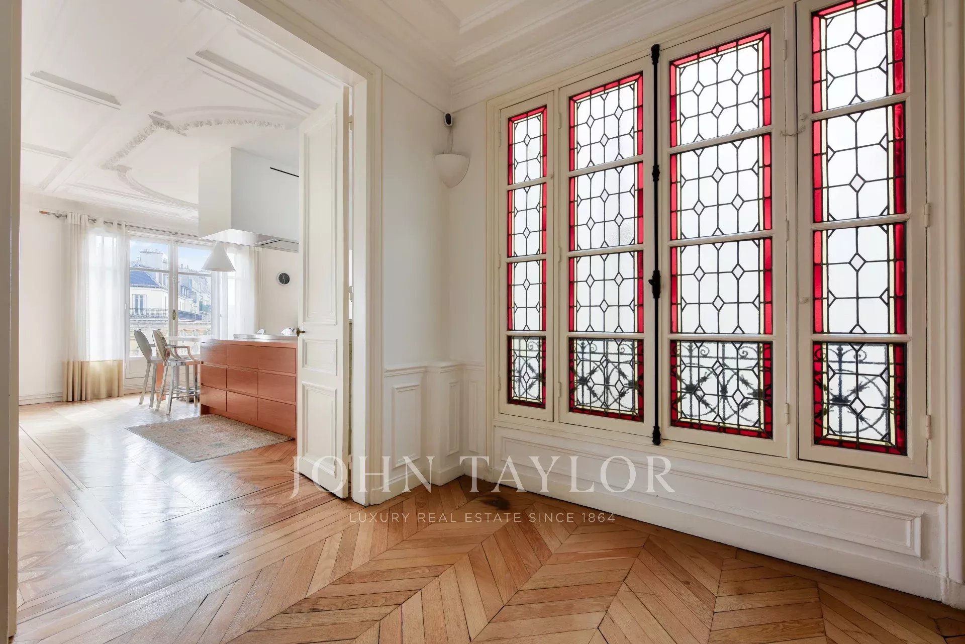 Залитая солнечным светом и окруженная балконами площадью 40 м², она предлагает оптимальную П-образную планировку (не выходящую на улицу), прекрасные беспрепятственные виды и вид на Эйфелеву башню.