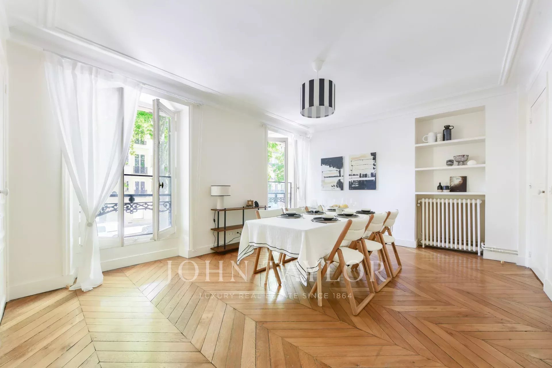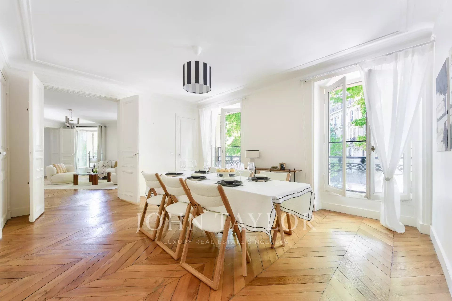 Благодаря гармоничным пропорциям и удачному расположению рядом с Этуаль и площадью Тернов, эта редкая недвижимость является идеальным воплощением парижского искусства жить.
