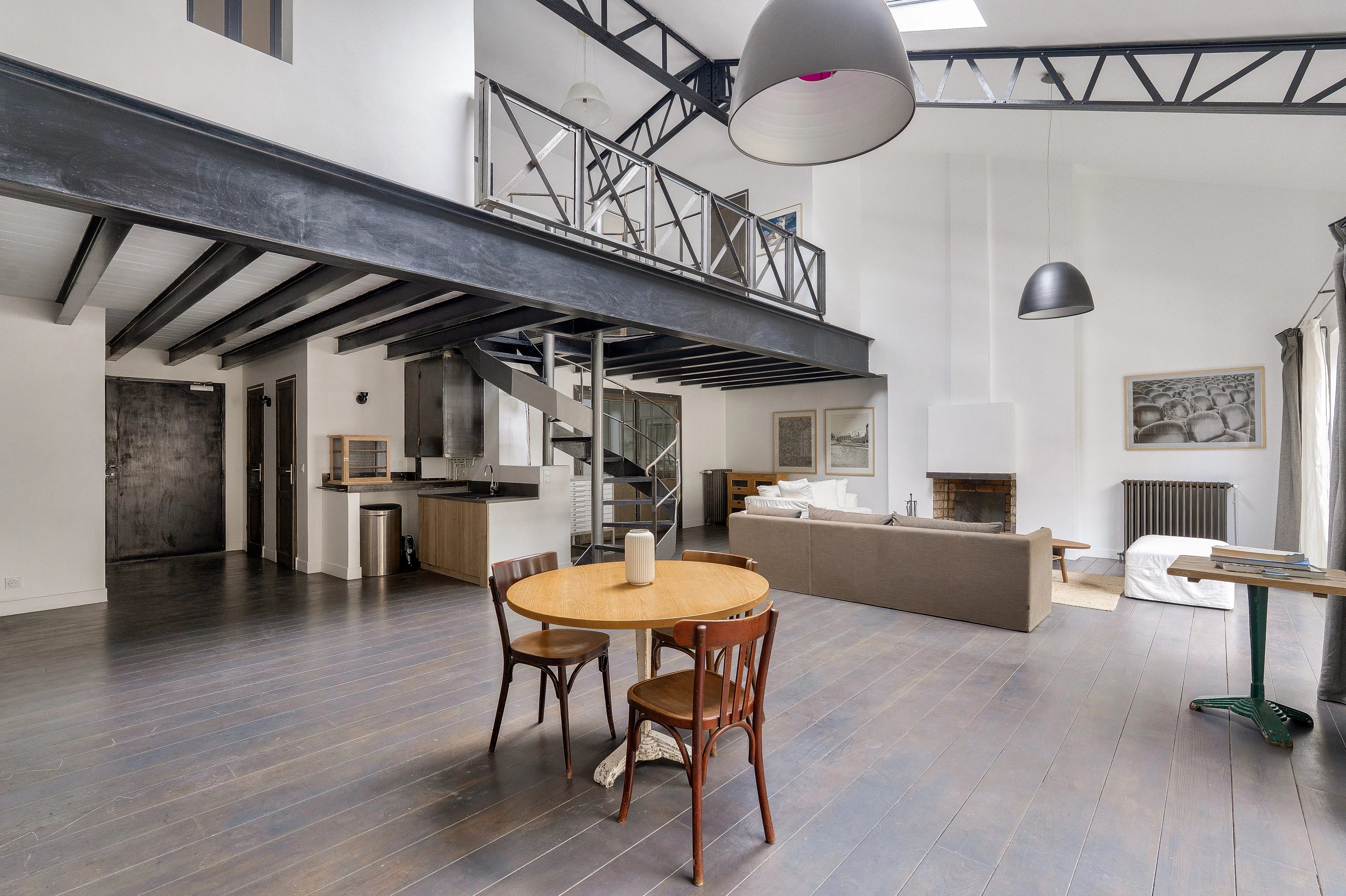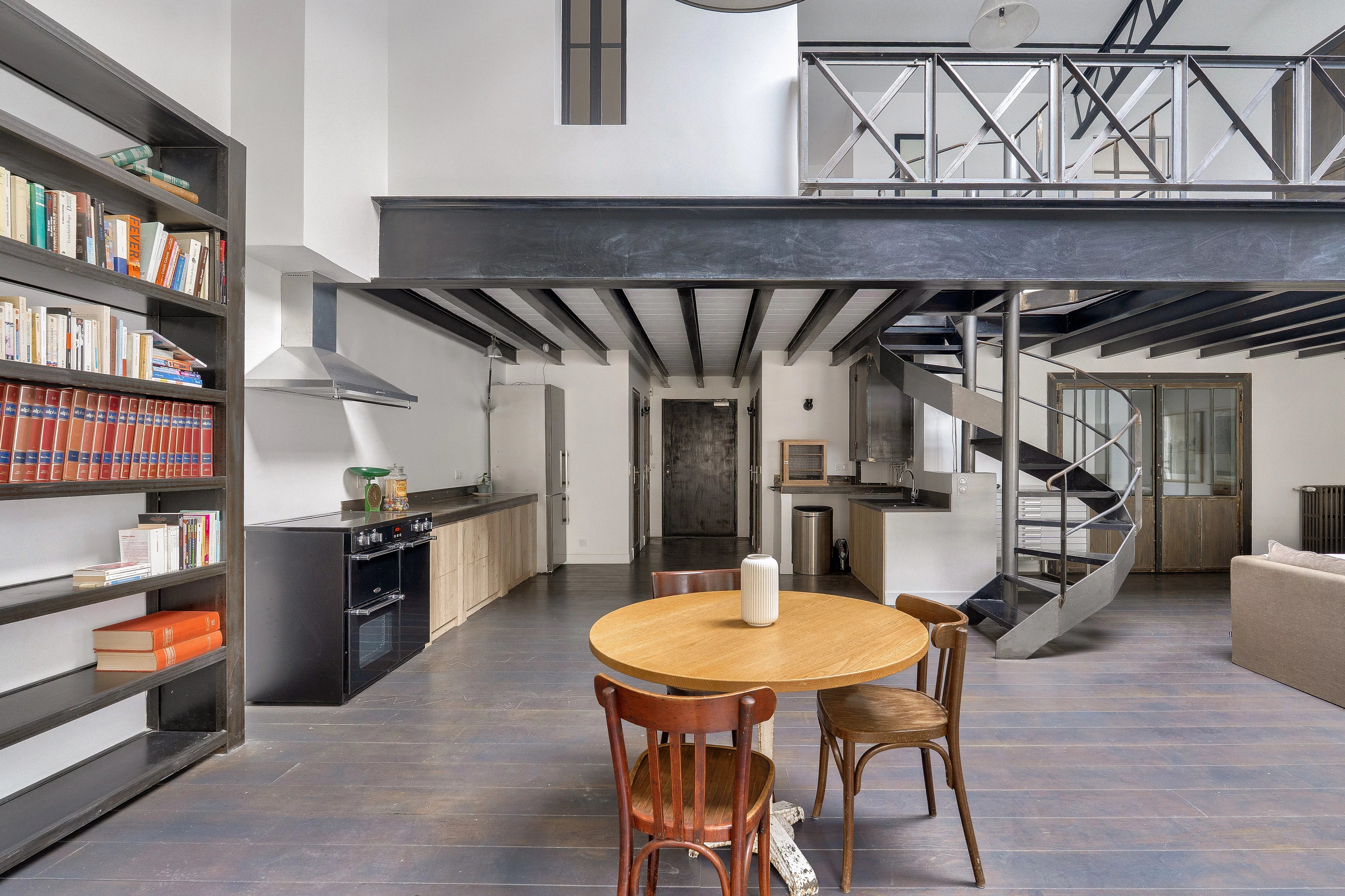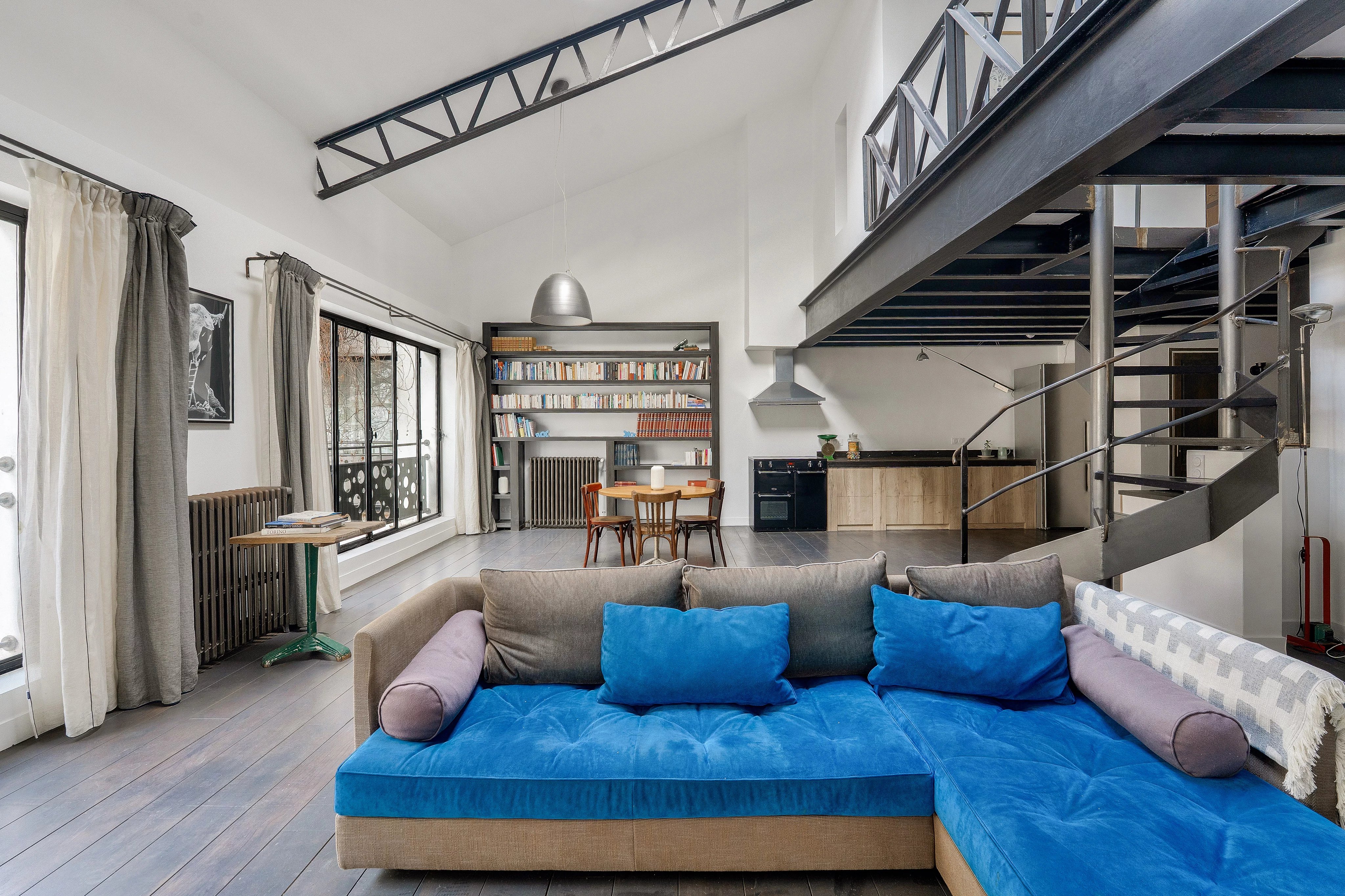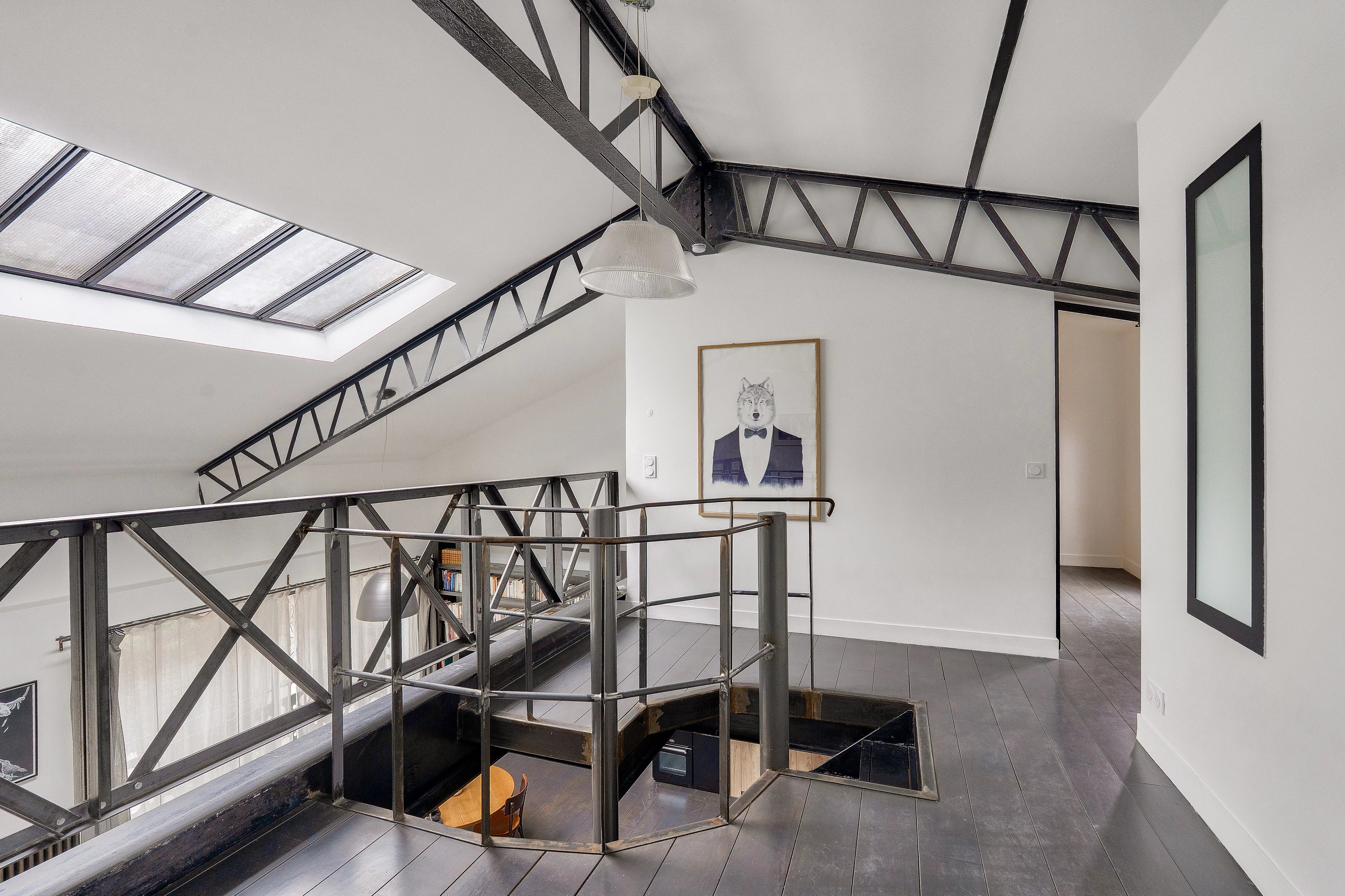 Париж 20-е. В небольшом, уютном кондоминиуме, бывшем кинотеатре, переделанном в лофт-апартаменты, двухуровневая квартира, расположенная на 2ᵉ и последнем этаже, площадью 133,23 м² по закону Carrez, включающая: