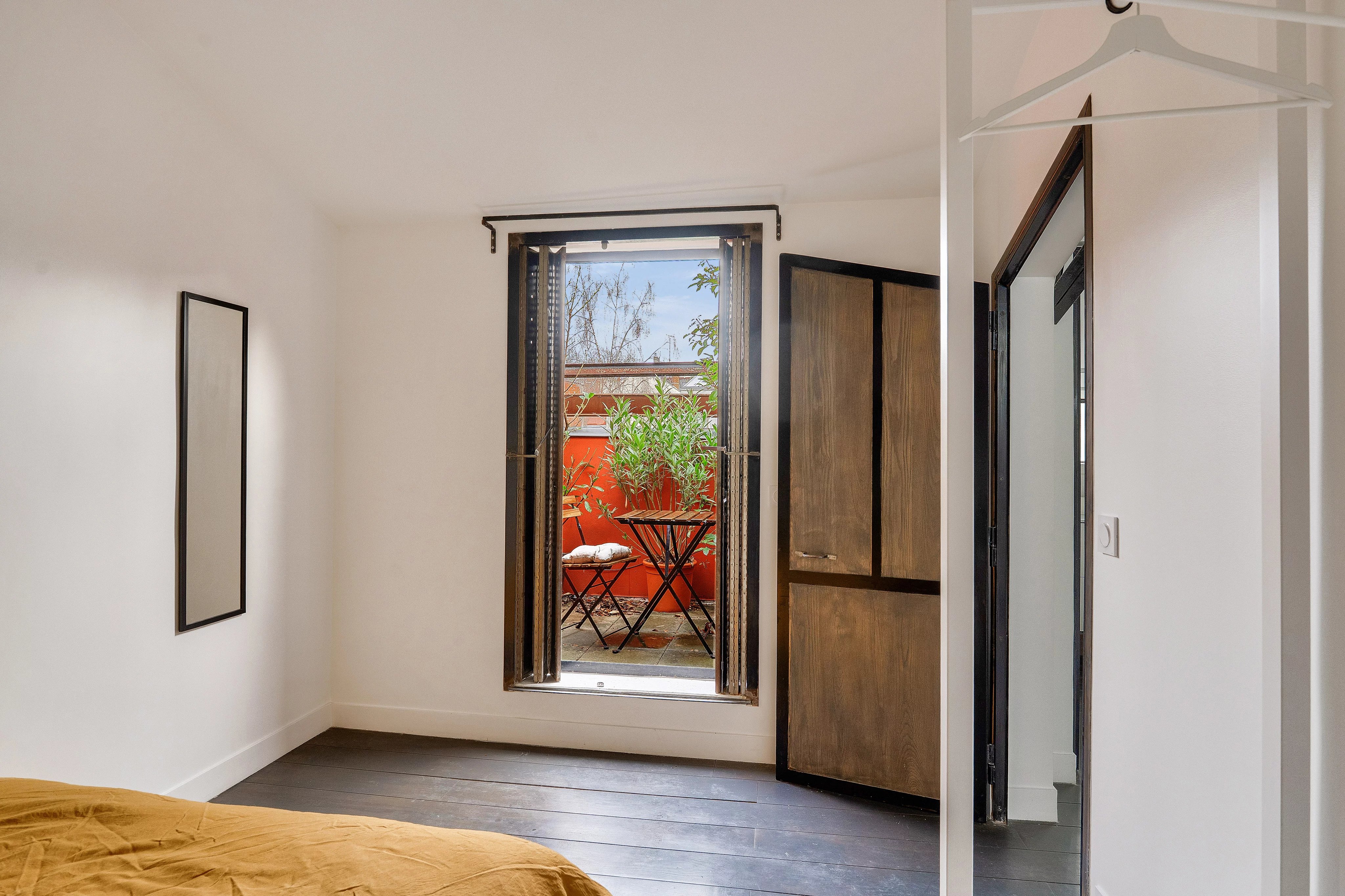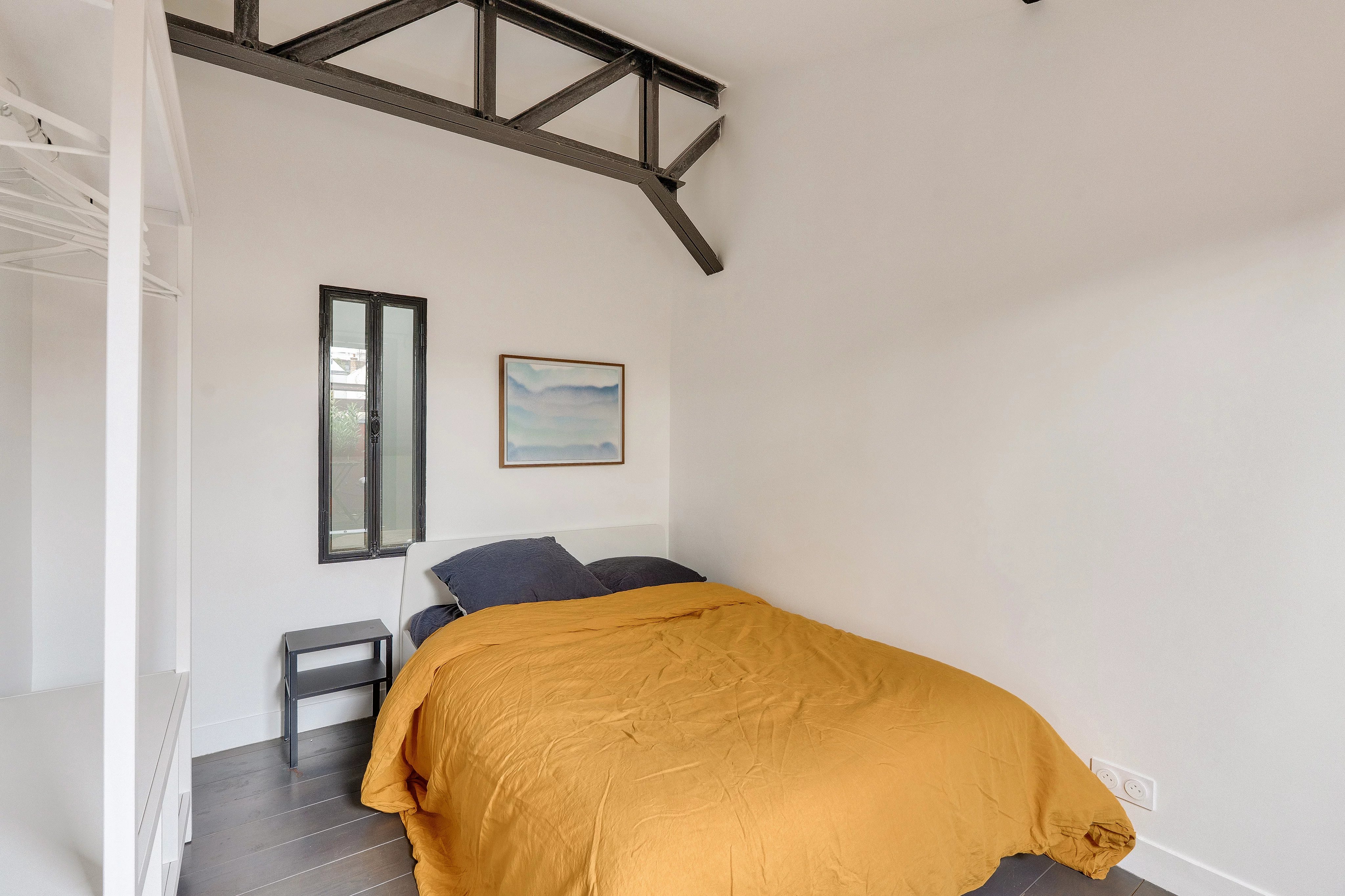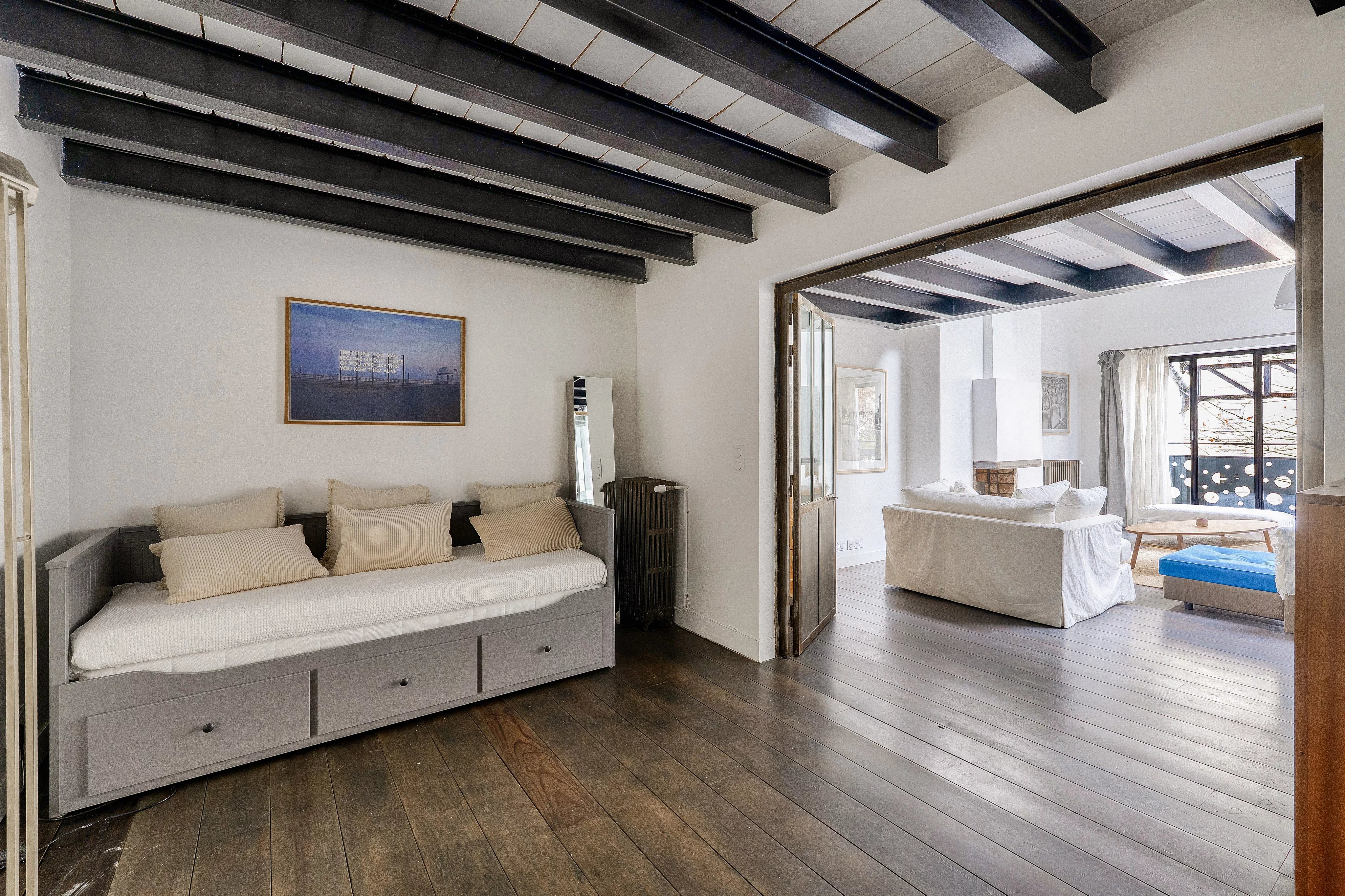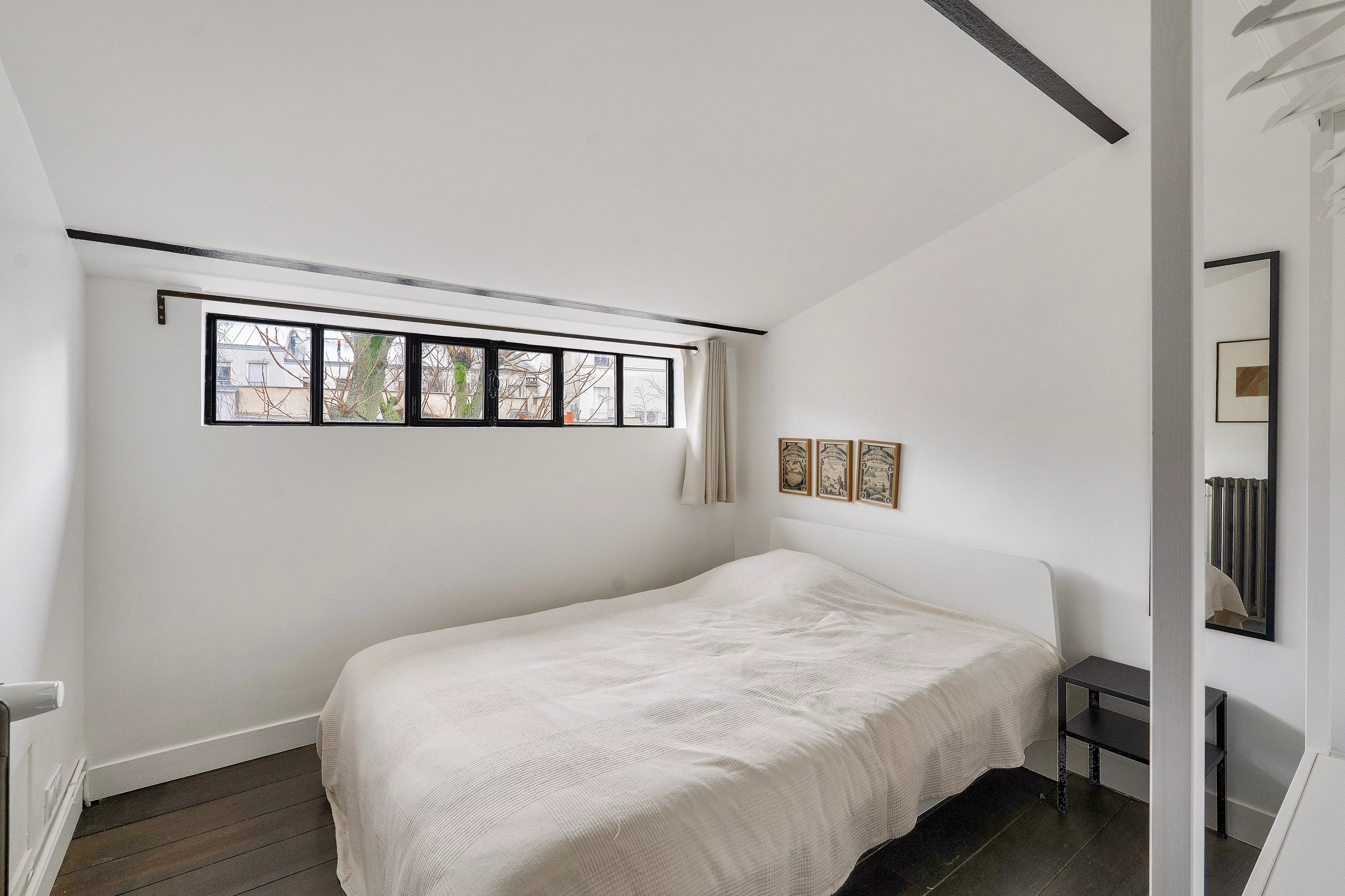 Париж 20-е. В небольшом, уютном кондоминиуме, бывшем кинотеатре, переделанном в лофт-апартаменты, двухуровневая квартира, расположенная на 2ᵉ и последнем этаже, площадью 133,23 м² по закону Carrez, включающая: