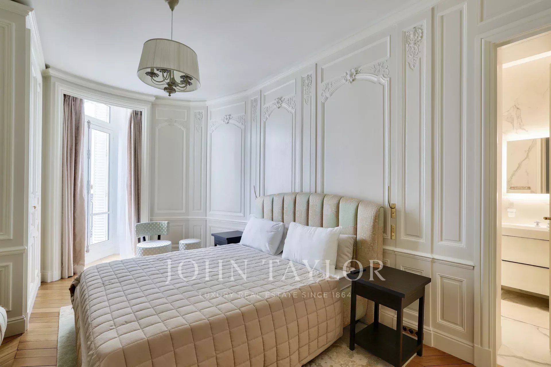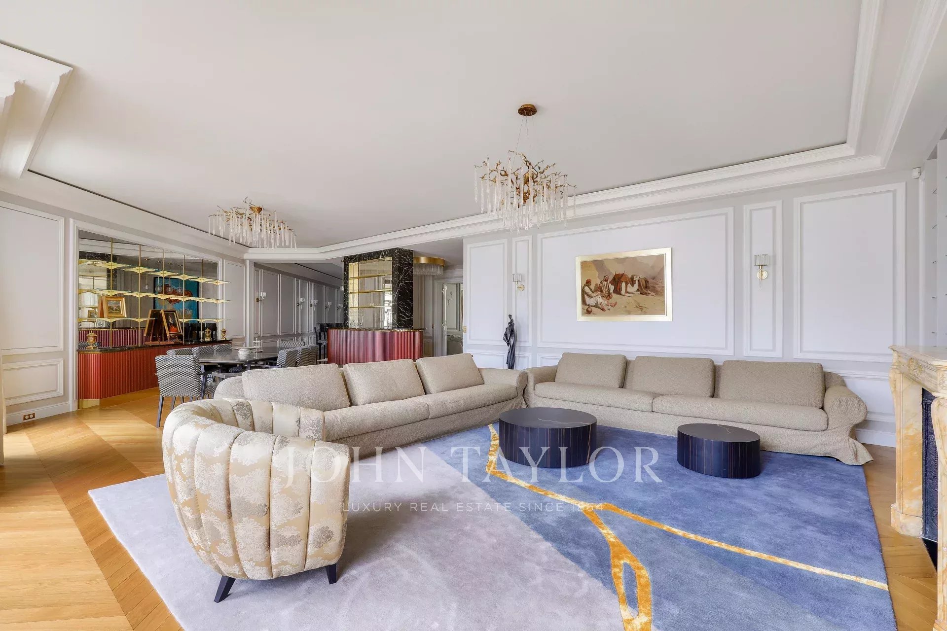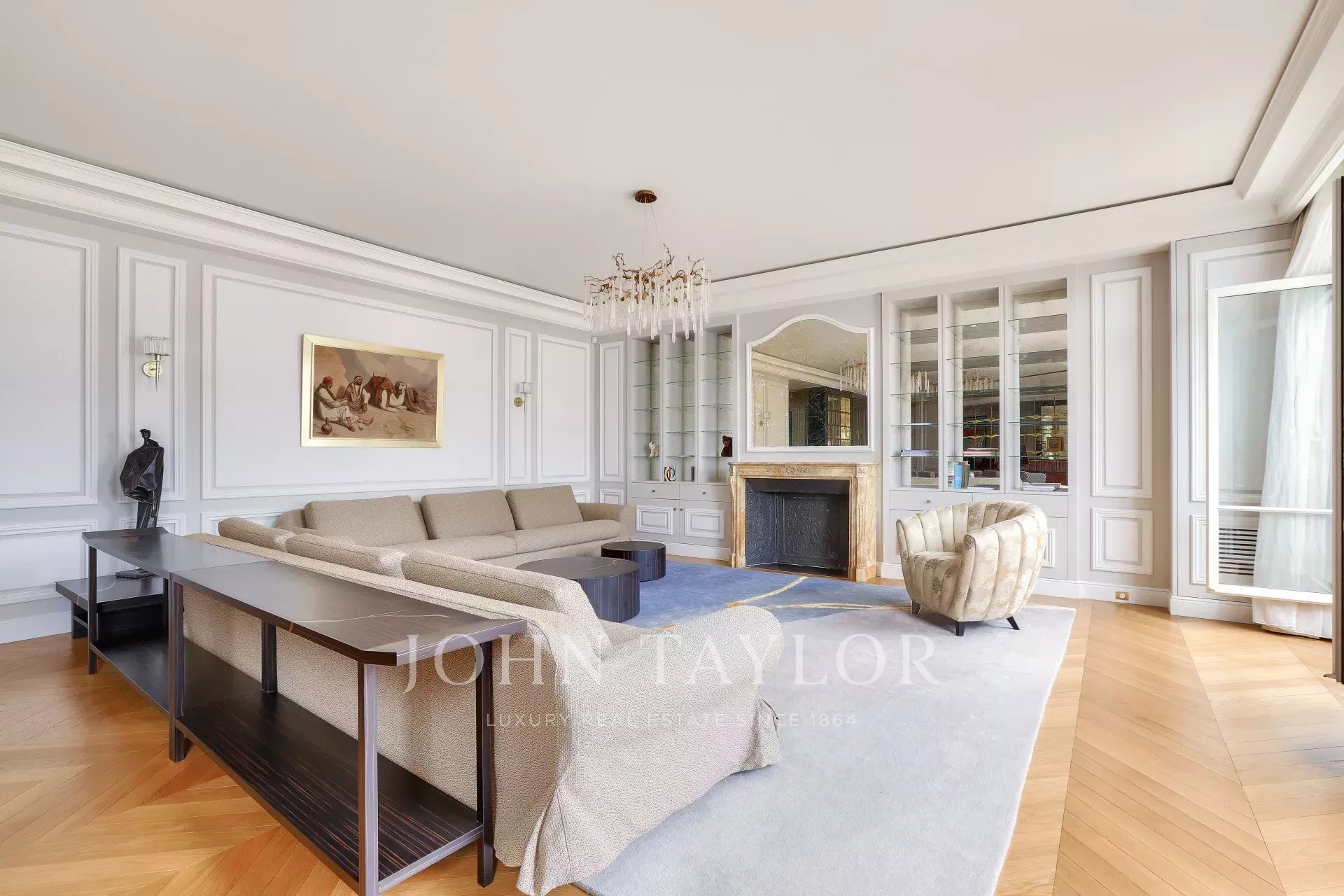 Украшением квартиры является изысканный камин, создающий уютную атмосферу в гостиной. Просторное и светлое помещение выделяется элегантным дизайном и высоким уровнем отделки. Эти апартаменты представляют собой идеальное сочетание современного комфорта и традиционного французского шарма.