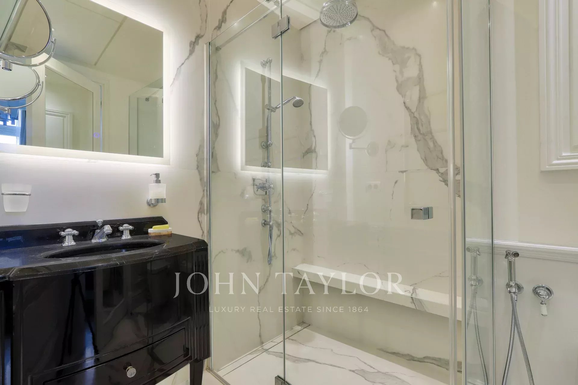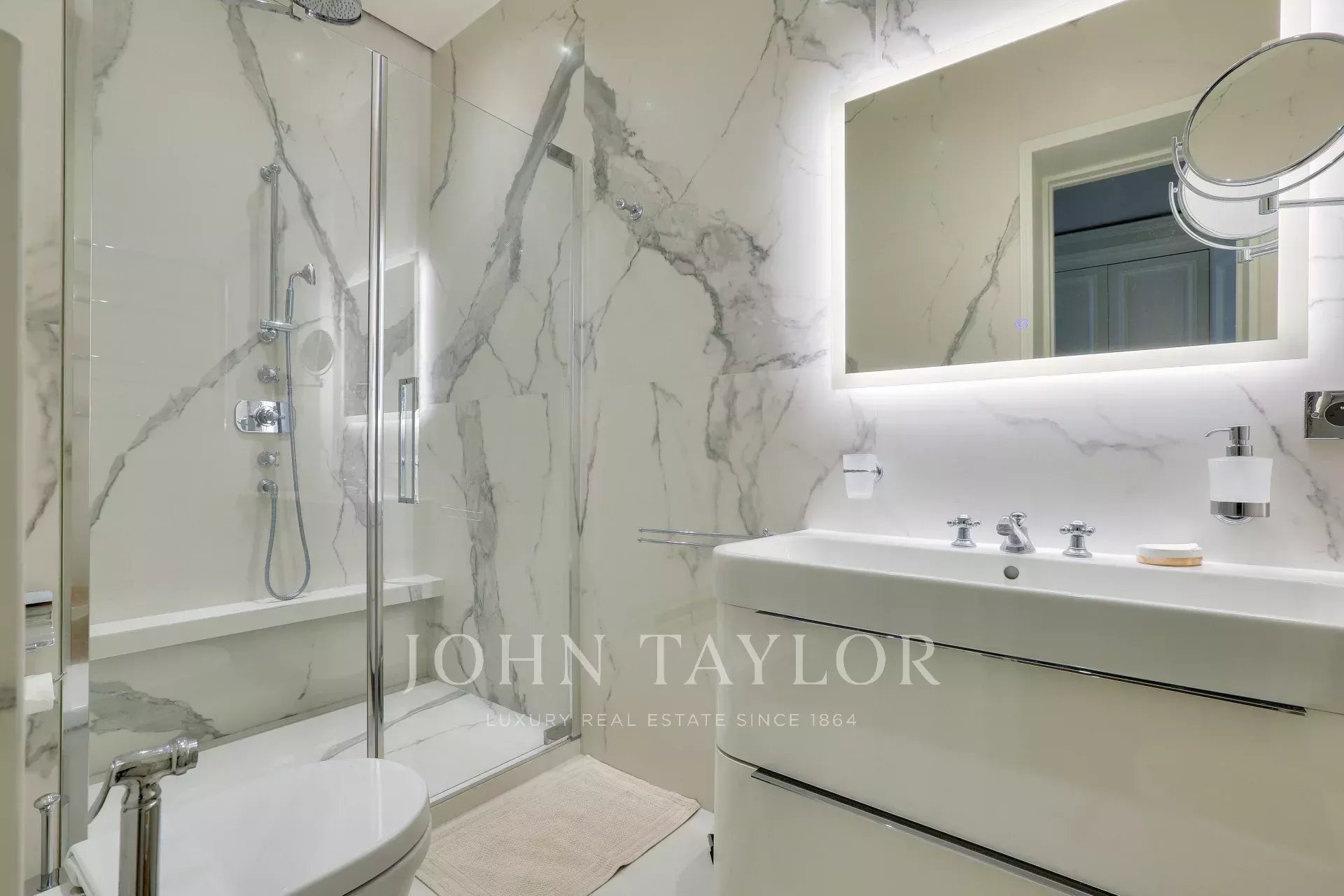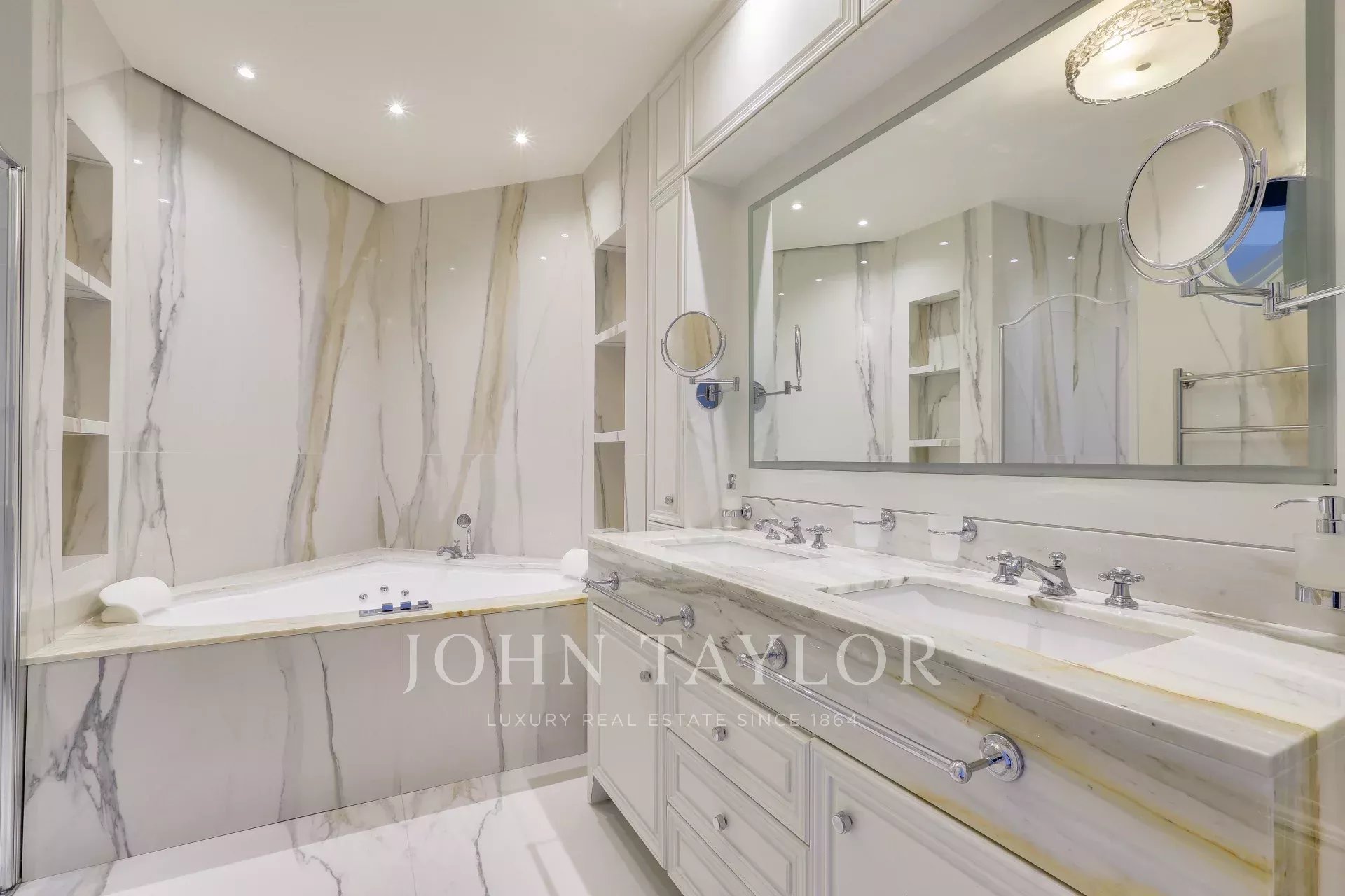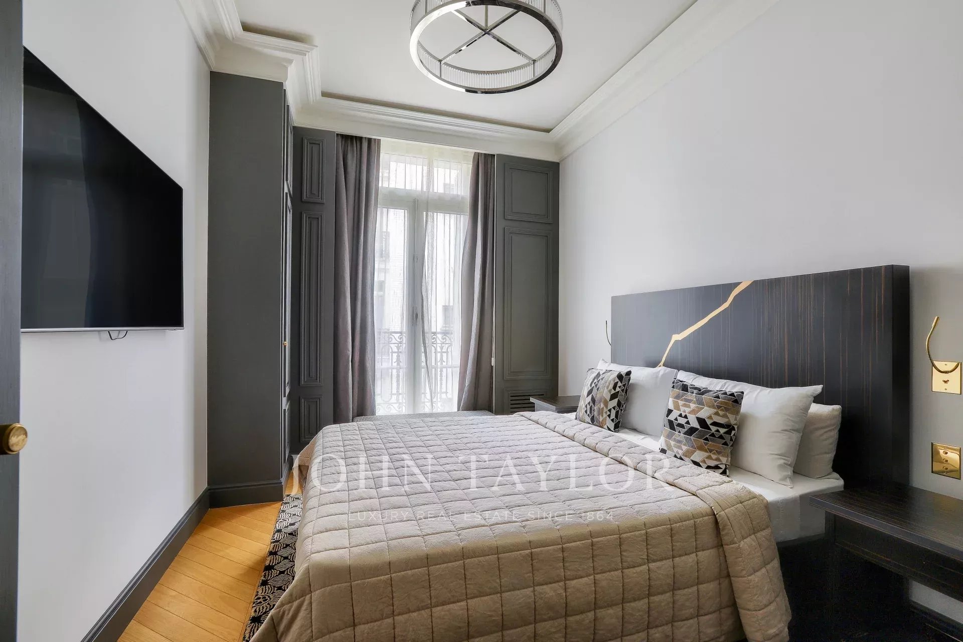 Украшением квартиры является изысканный камин, создающий уютную атмосферу в гостиной. Просторное и светлое помещение выделяется элегантным дизайном и высоким уровнем отделки. Эти апартаменты представляют собой идеальное сочетание современного комфорта и традиционного французского шарма.