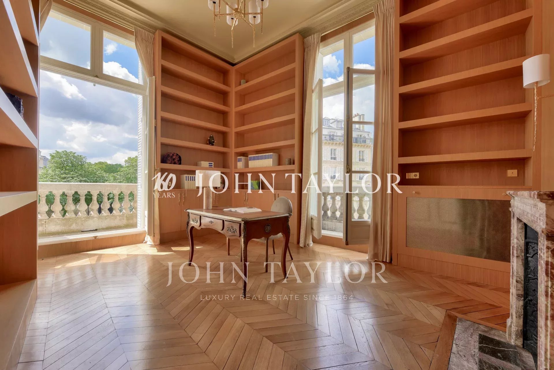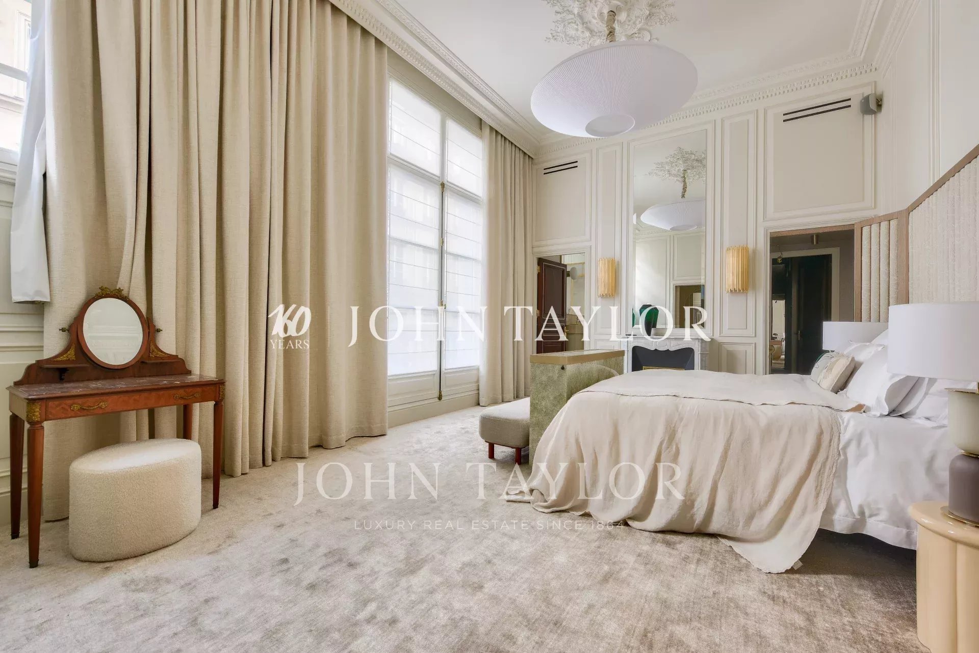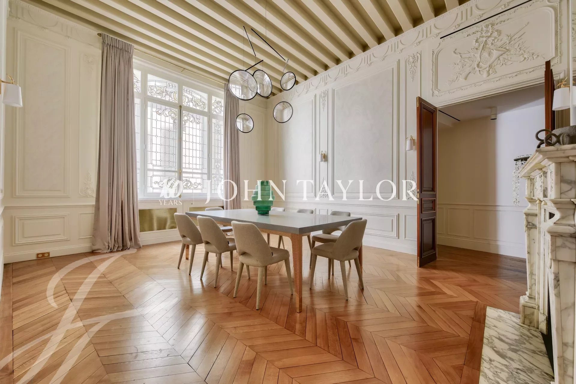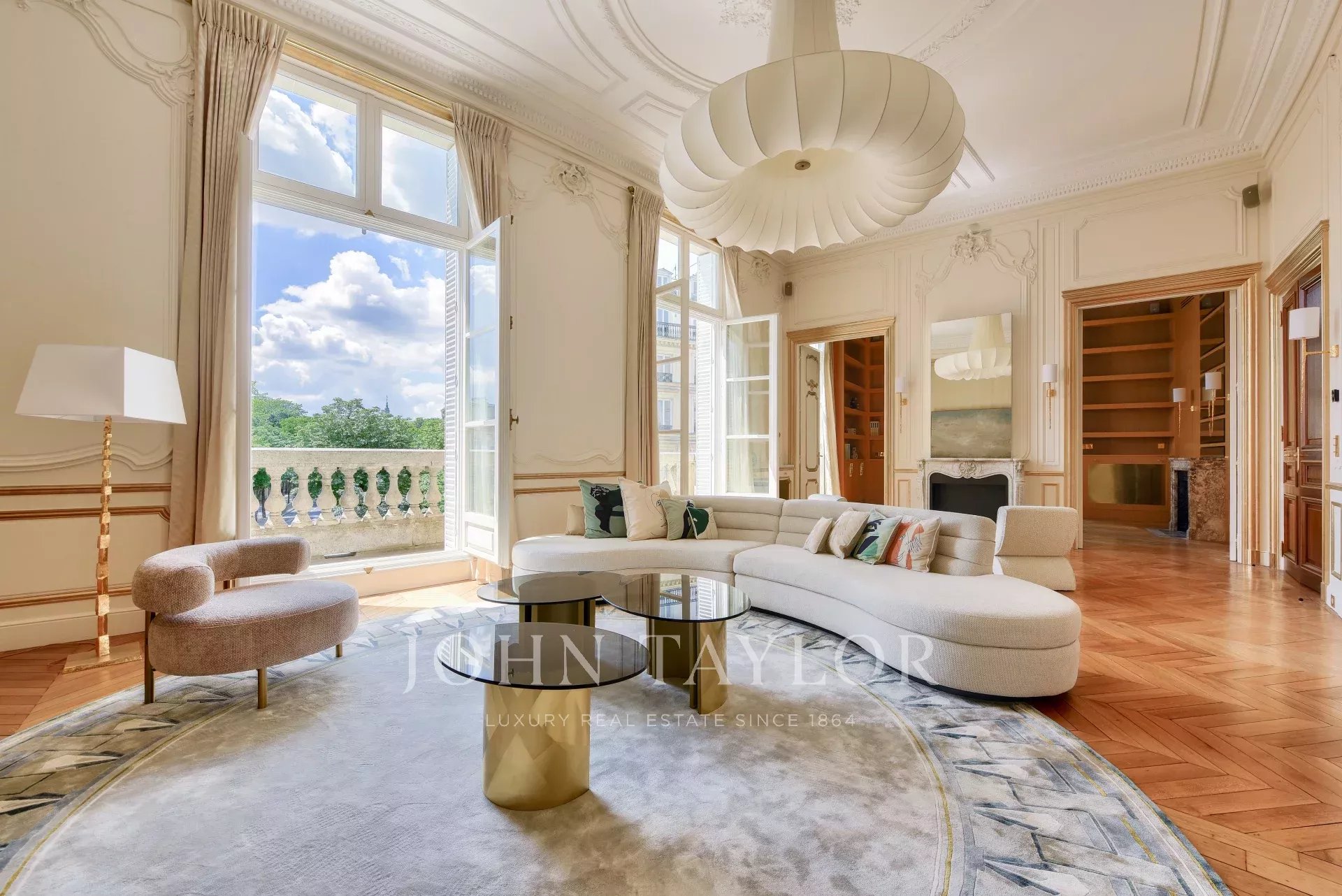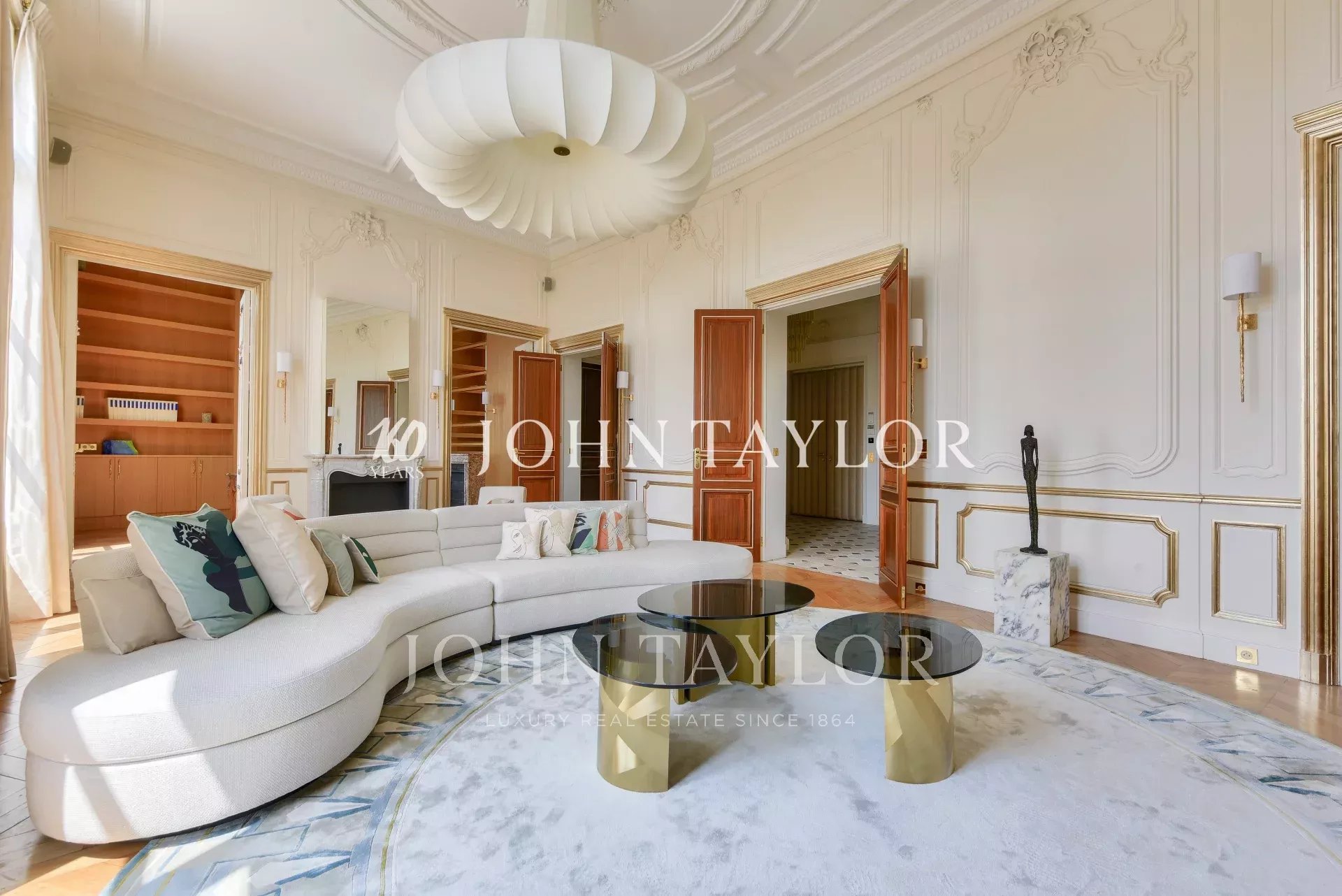 В роскошном здании, на втором этаже с лифтом, сказочная квартира для приема гостей площадью 350 м2 (319 м2 по закону Carrez) после исключительного ремонта, проведенного одним из самых известных архитектурных бюро.