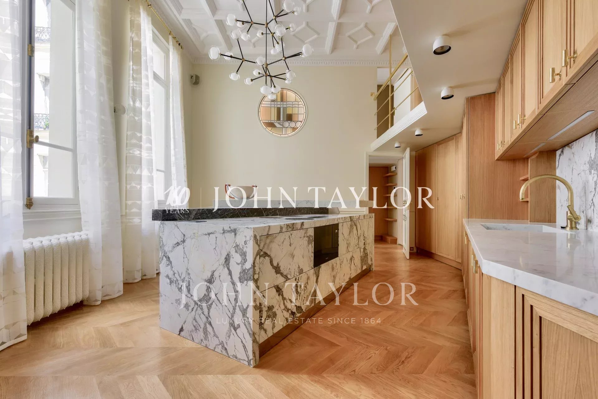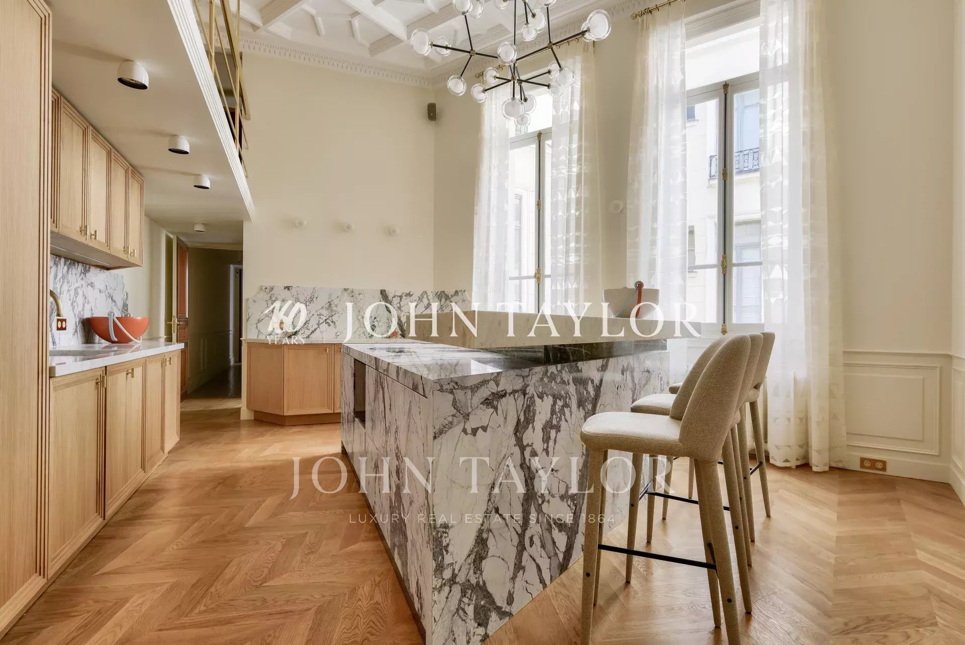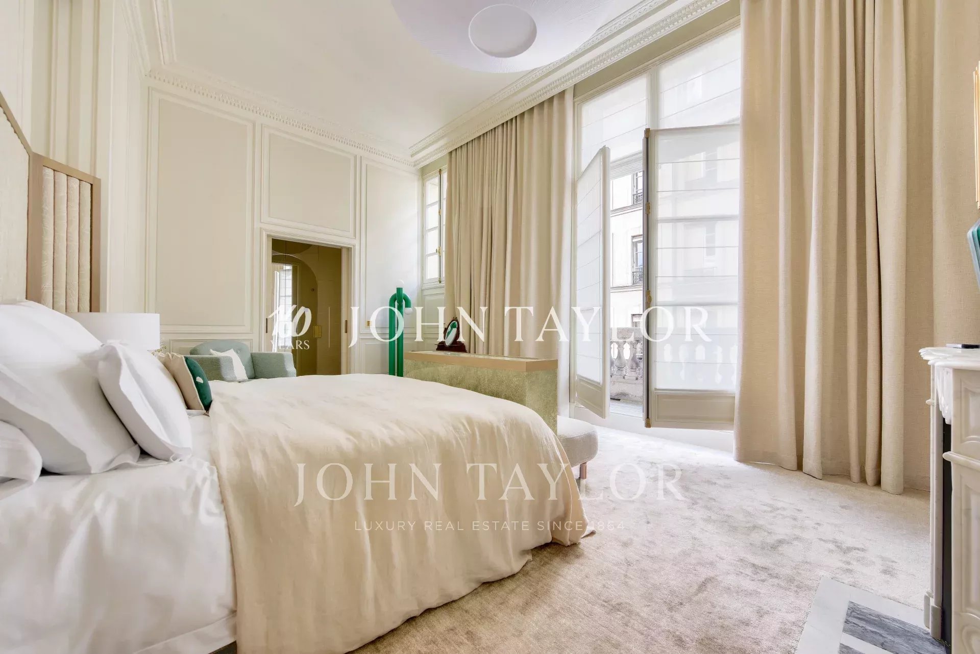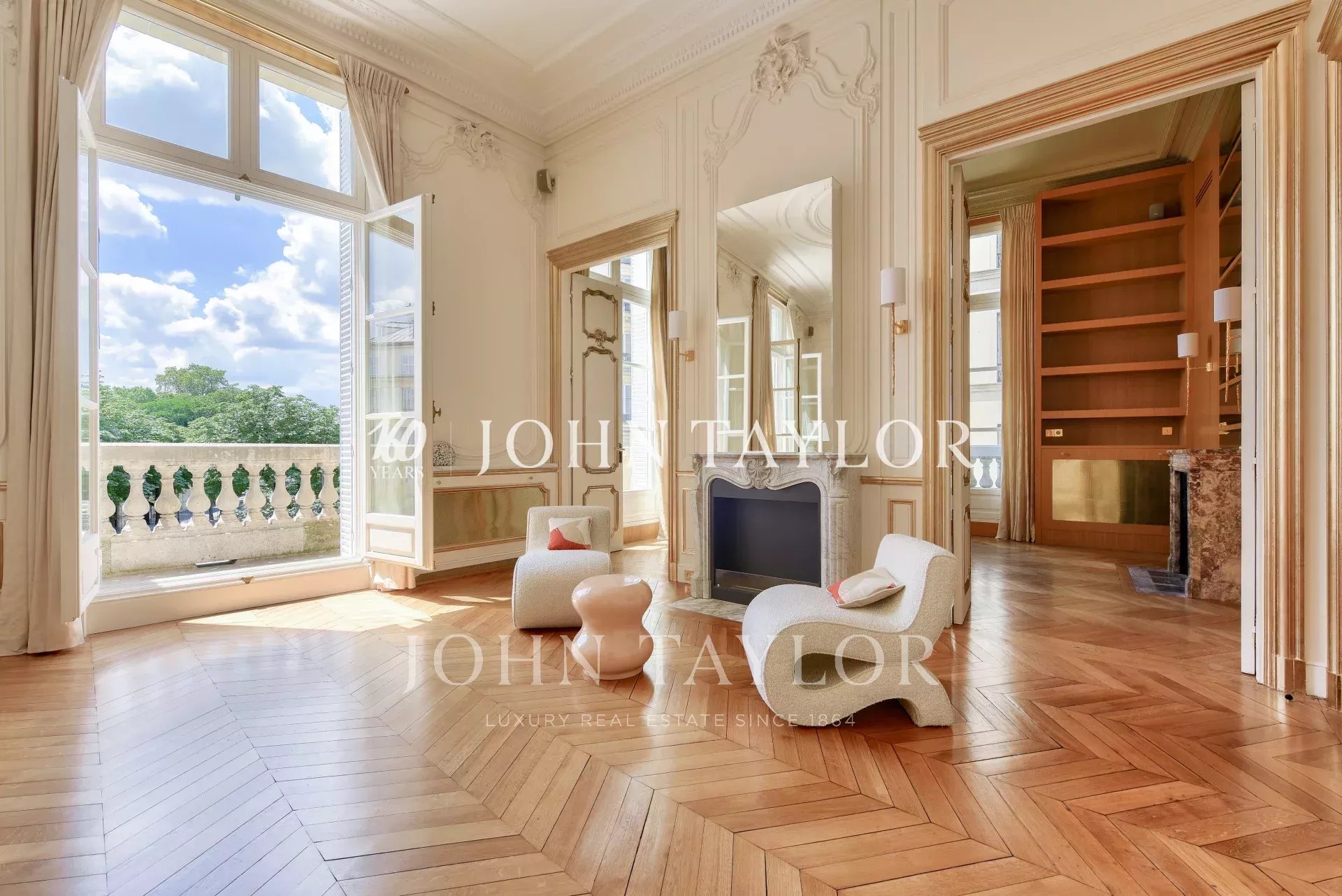 В роскошном здании, на втором этаже с лифтом, сказочная квартира для приема гостей площадью 350 м2 (319 м2 по закону Carrez) после исключительного ремонта, проведенного одним из самых известных архитектурных бюро.