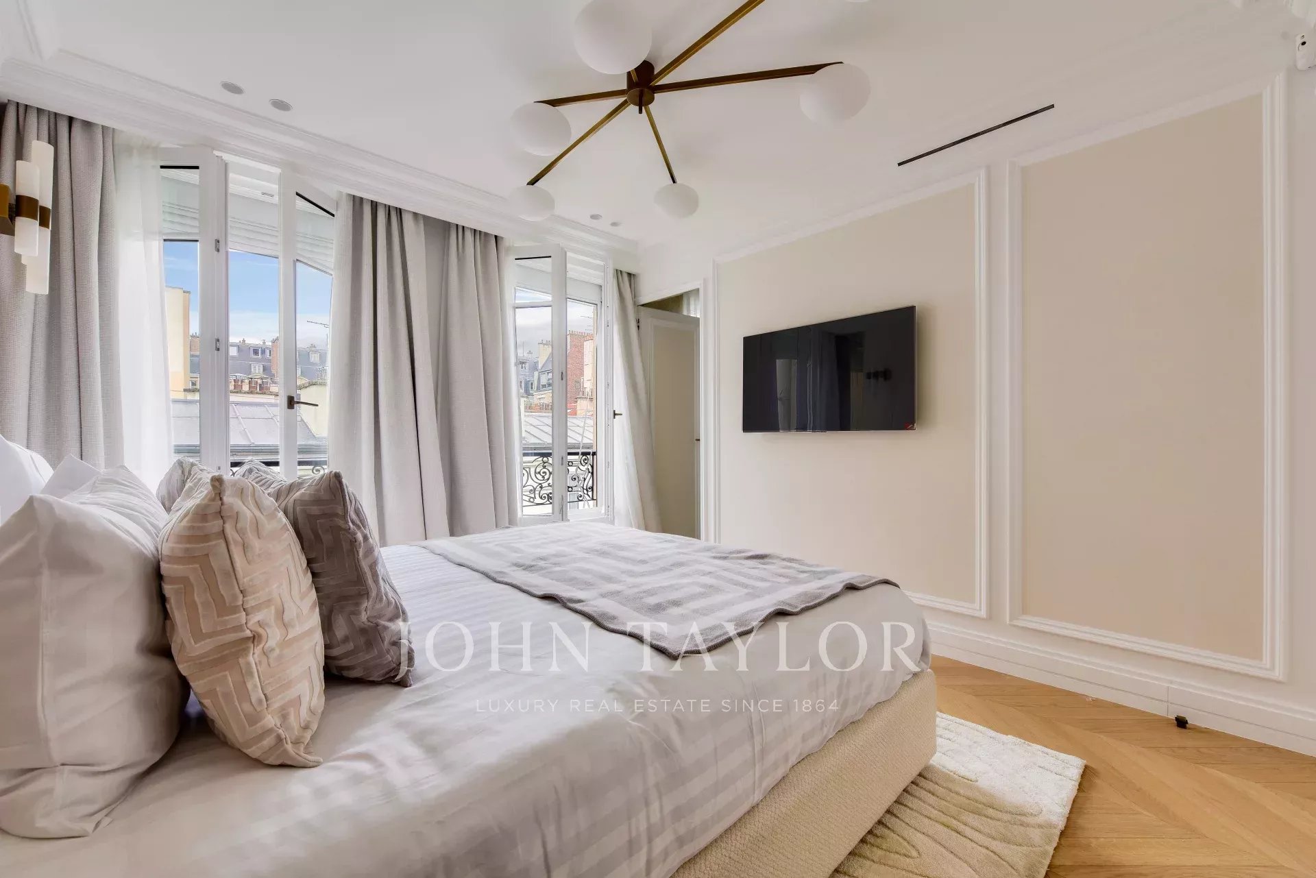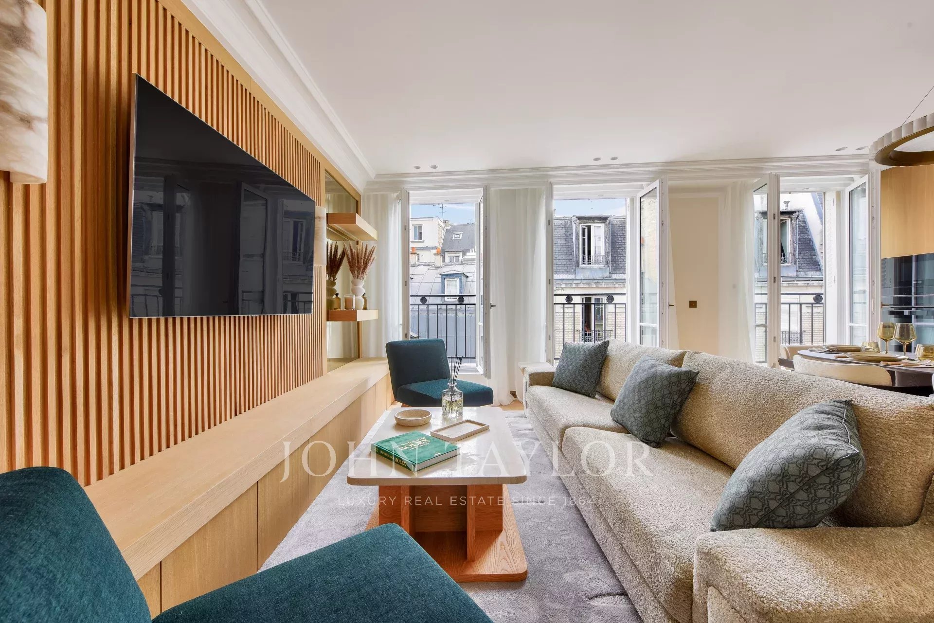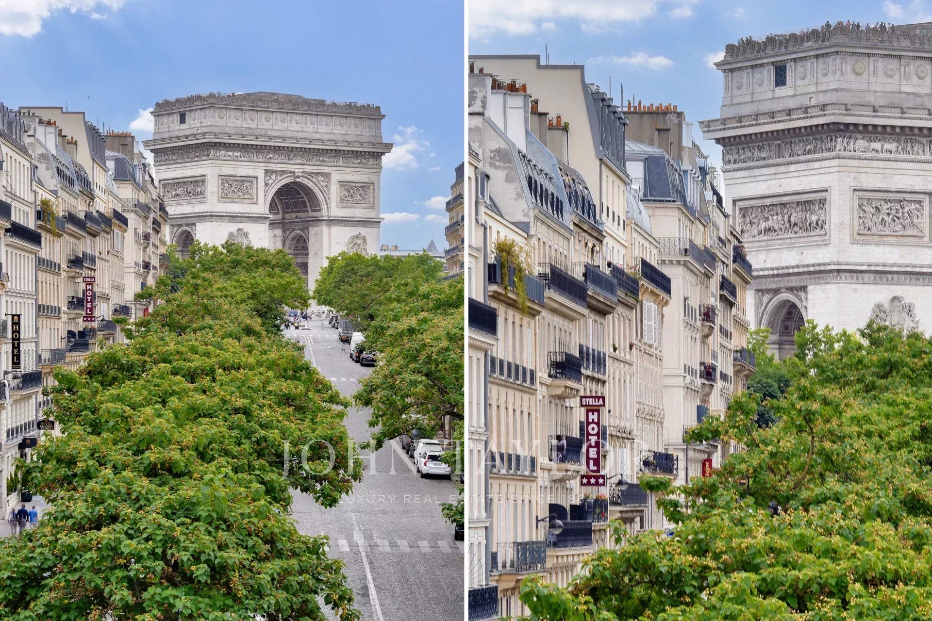 Залитая светом и окруженная балконами, она предлагает прекрасный вид на Триумфальную арку. Квартира состоит из
