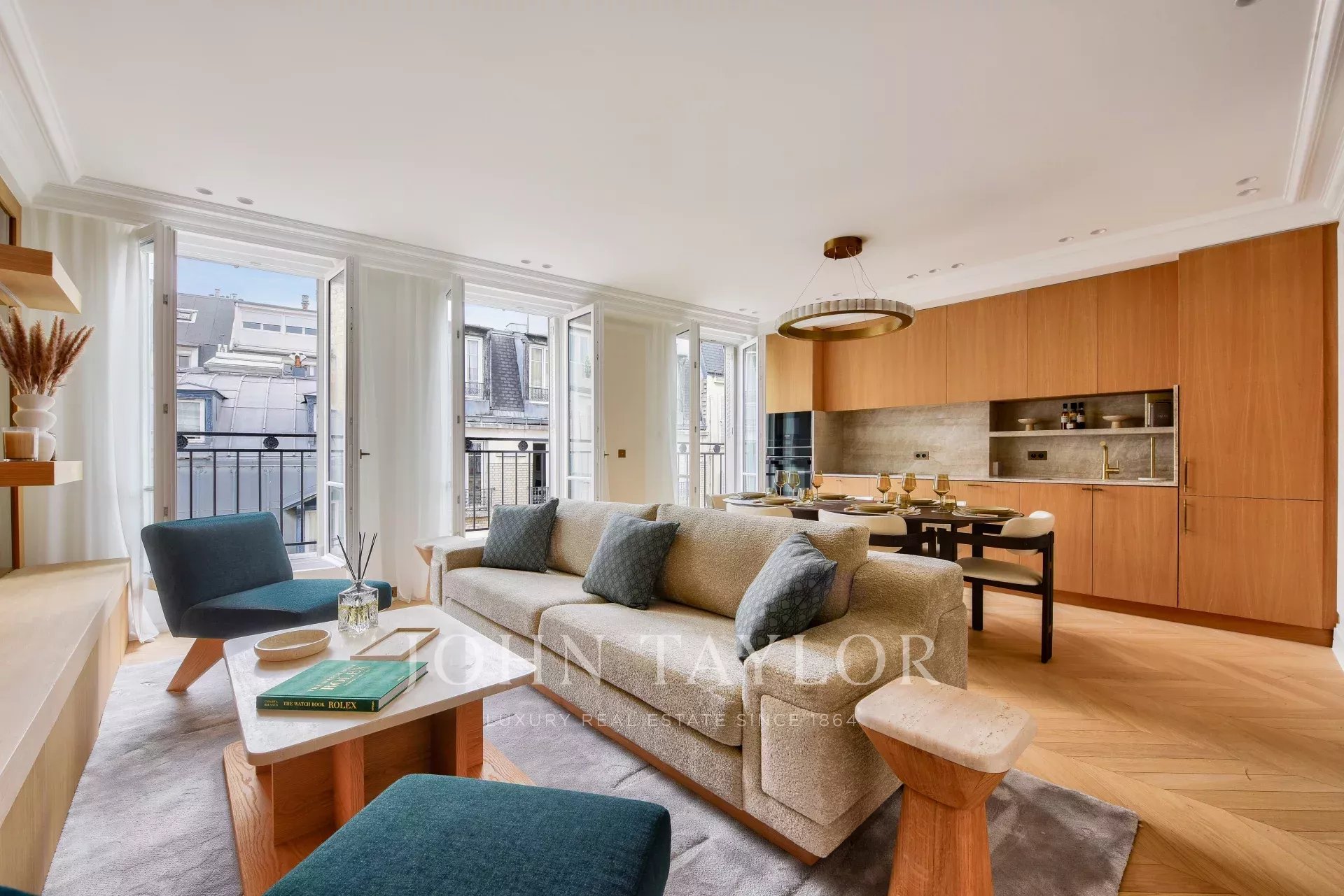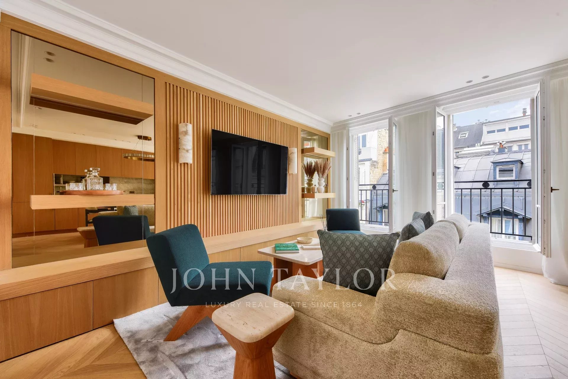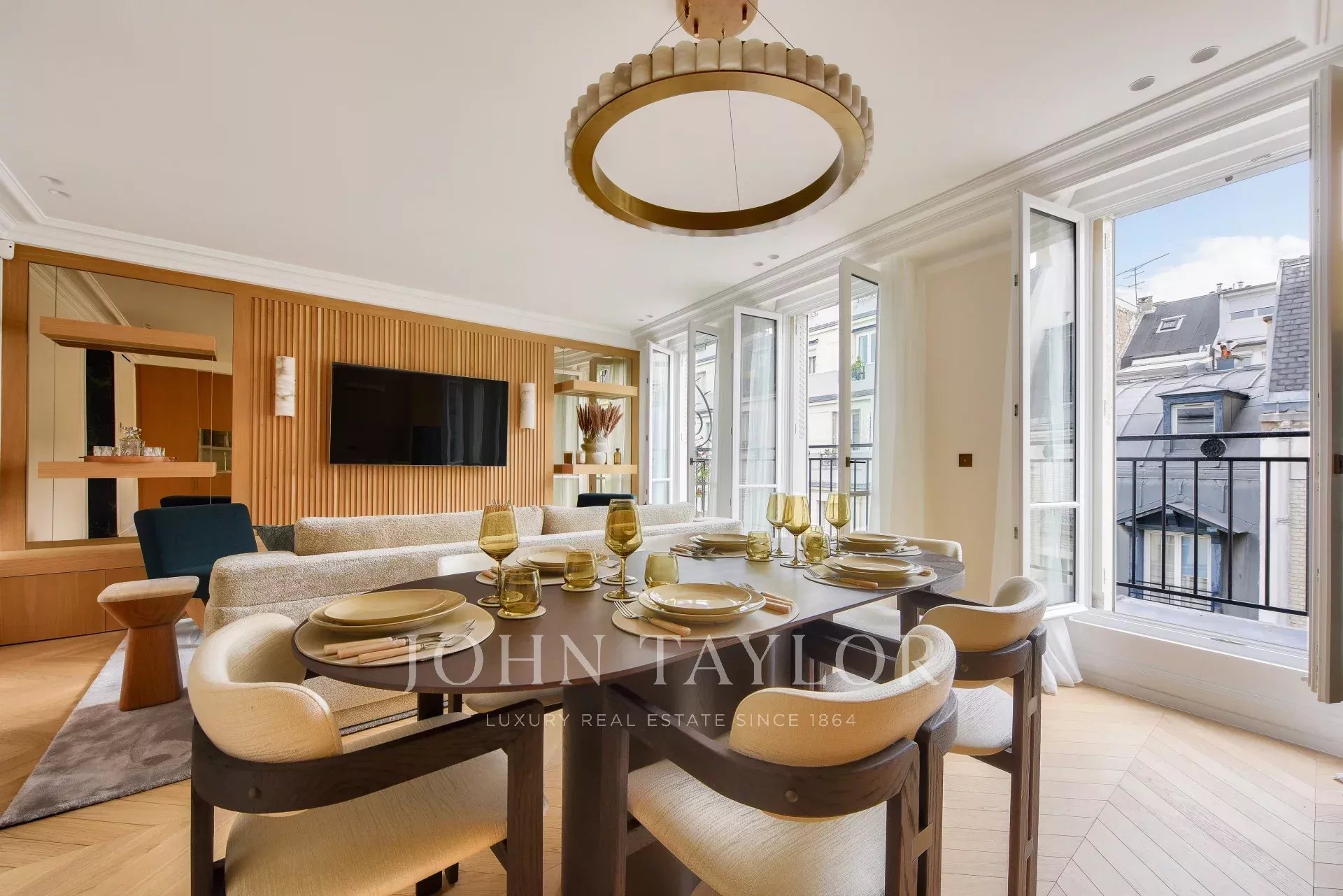 Залитая светом и окруженная балконами, она предлагает прекрасный вид на Триумфальную арку. Квартира состоит из