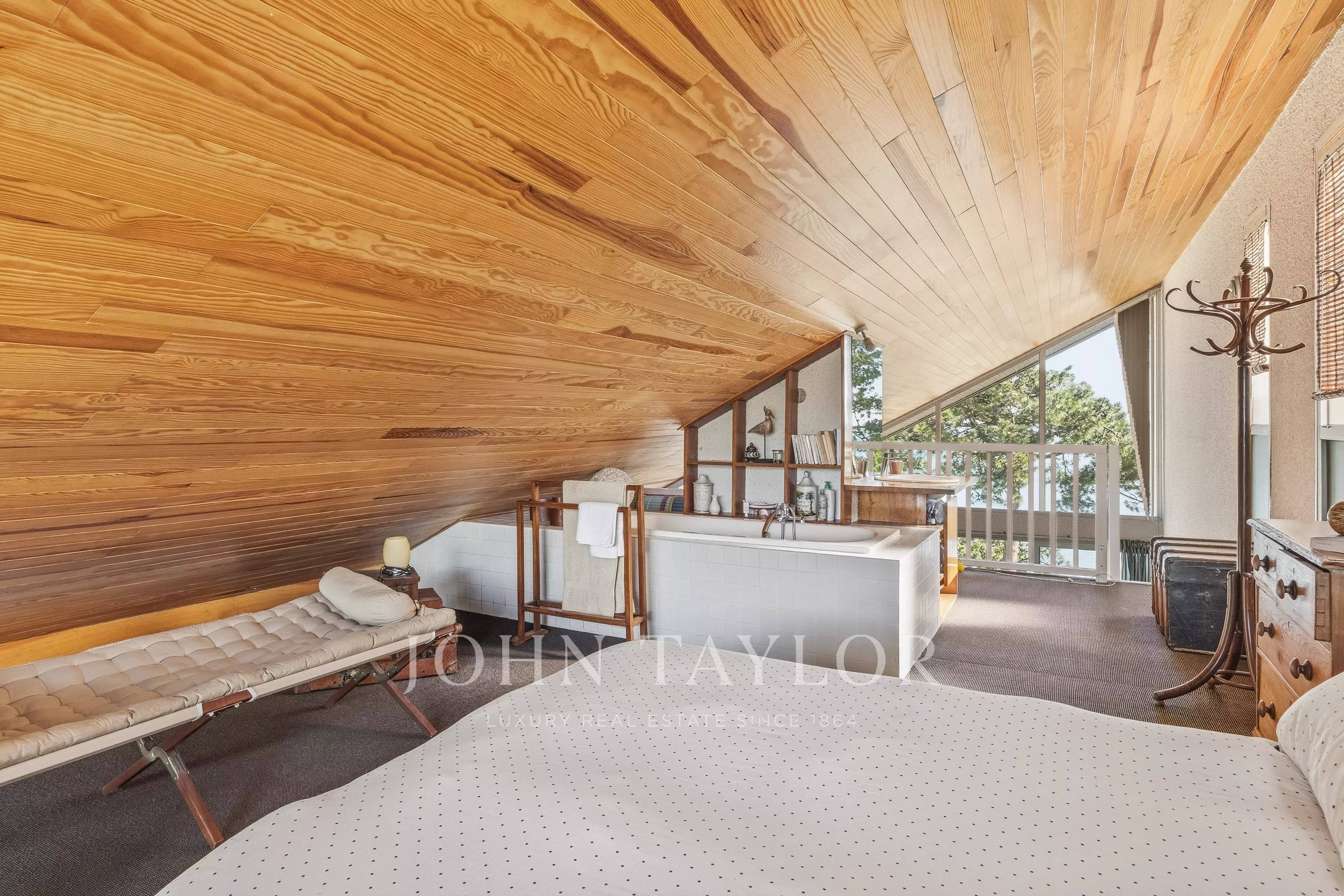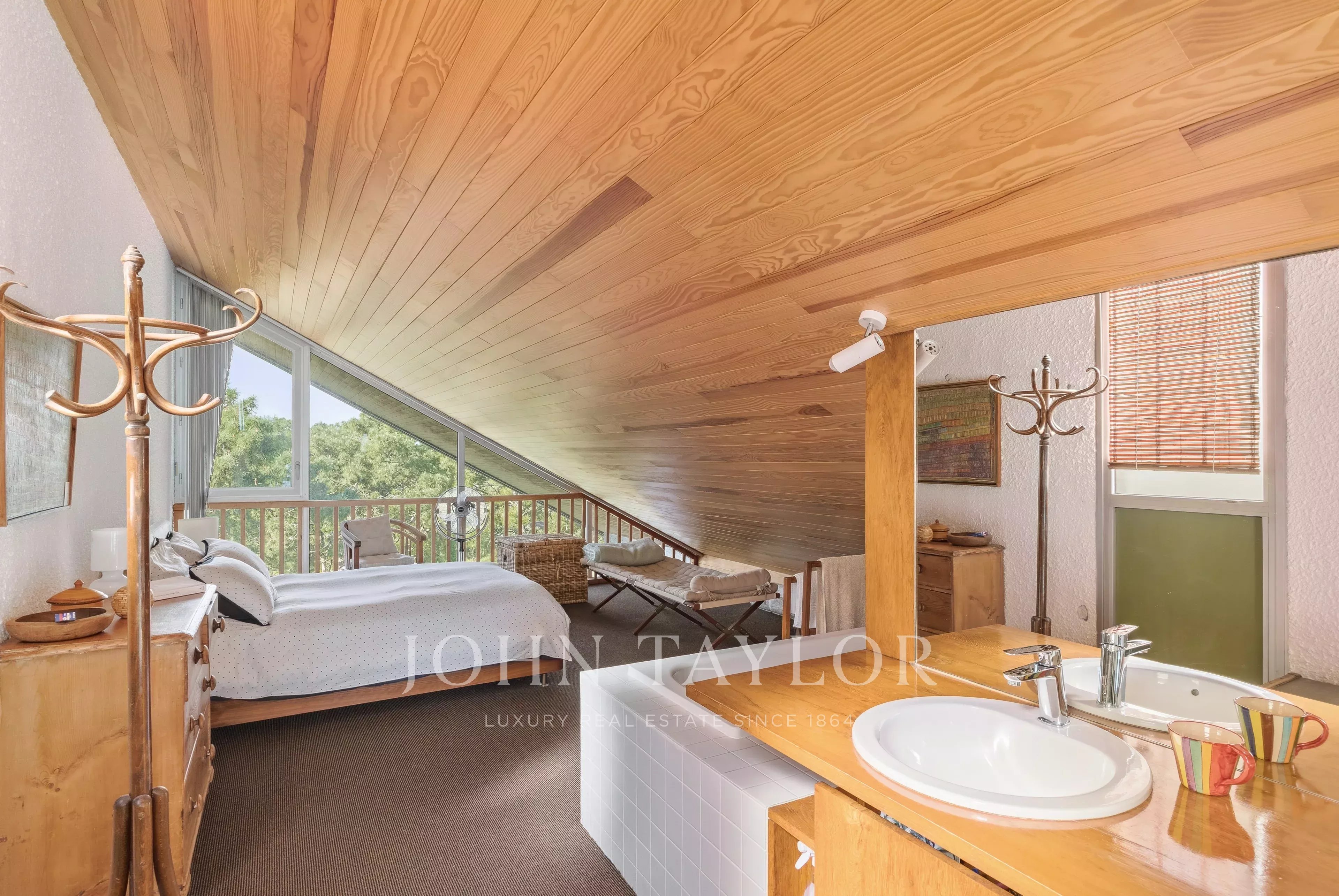 Внутреннее расположение включает четыре основные комнаты, в том числе великолепный родительский люкс с ванной на антресоли, что является настоящим архитектурным фирменным знаком резиденции. Две дополнительные спальни и ванная комната дополняют этот идеально пропорциональный ансамбль.