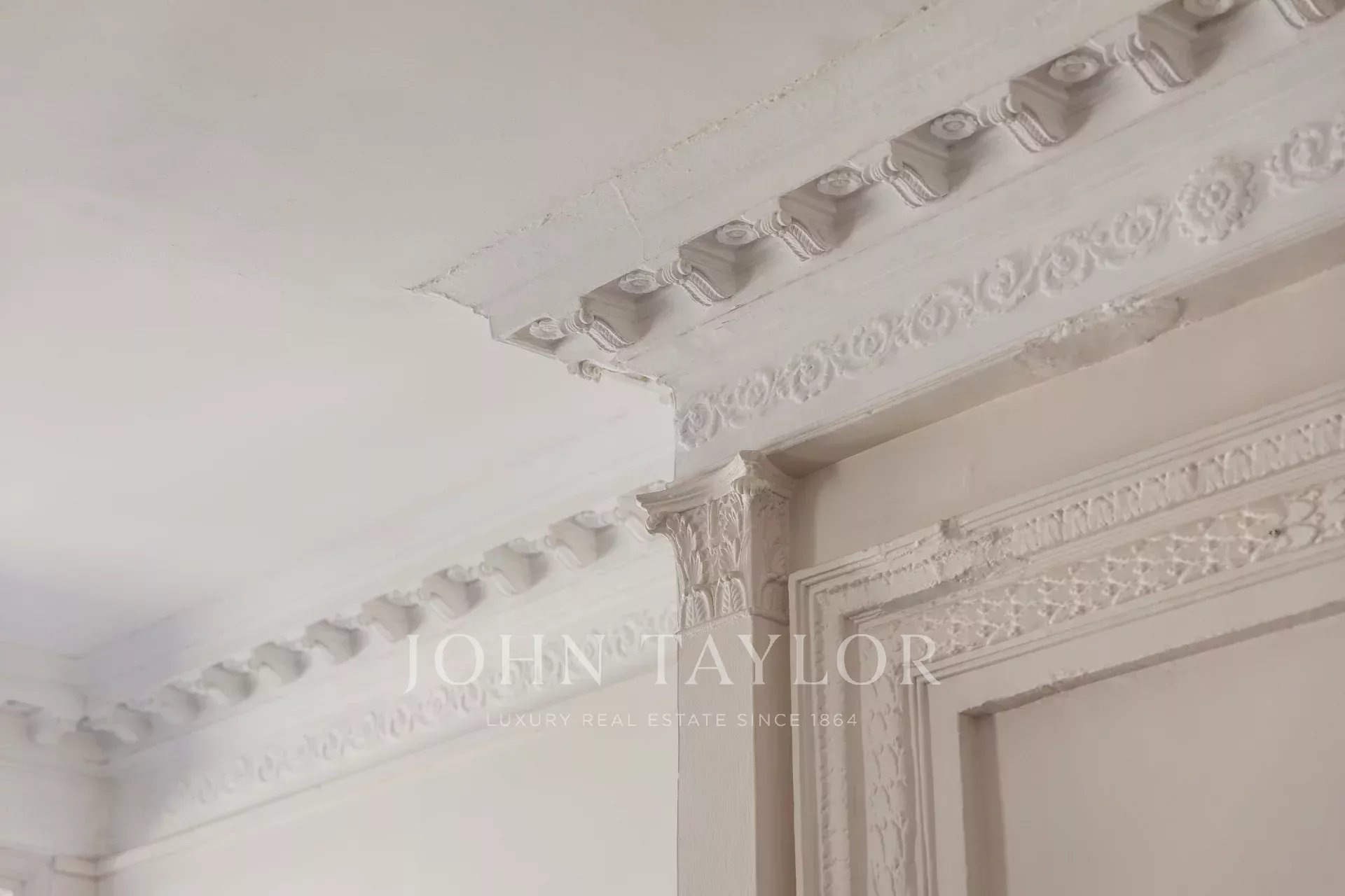 Дух эпохи был тщательно сохранен: мраморные камины, встроенный книжный шкаф, инкрустированный паркетный пол, великолепная лепнина и карнизы свидетельствуют о характере этой квартиры. Каждая деталь была продумана для создания теплой, элегантной атмосферы.
