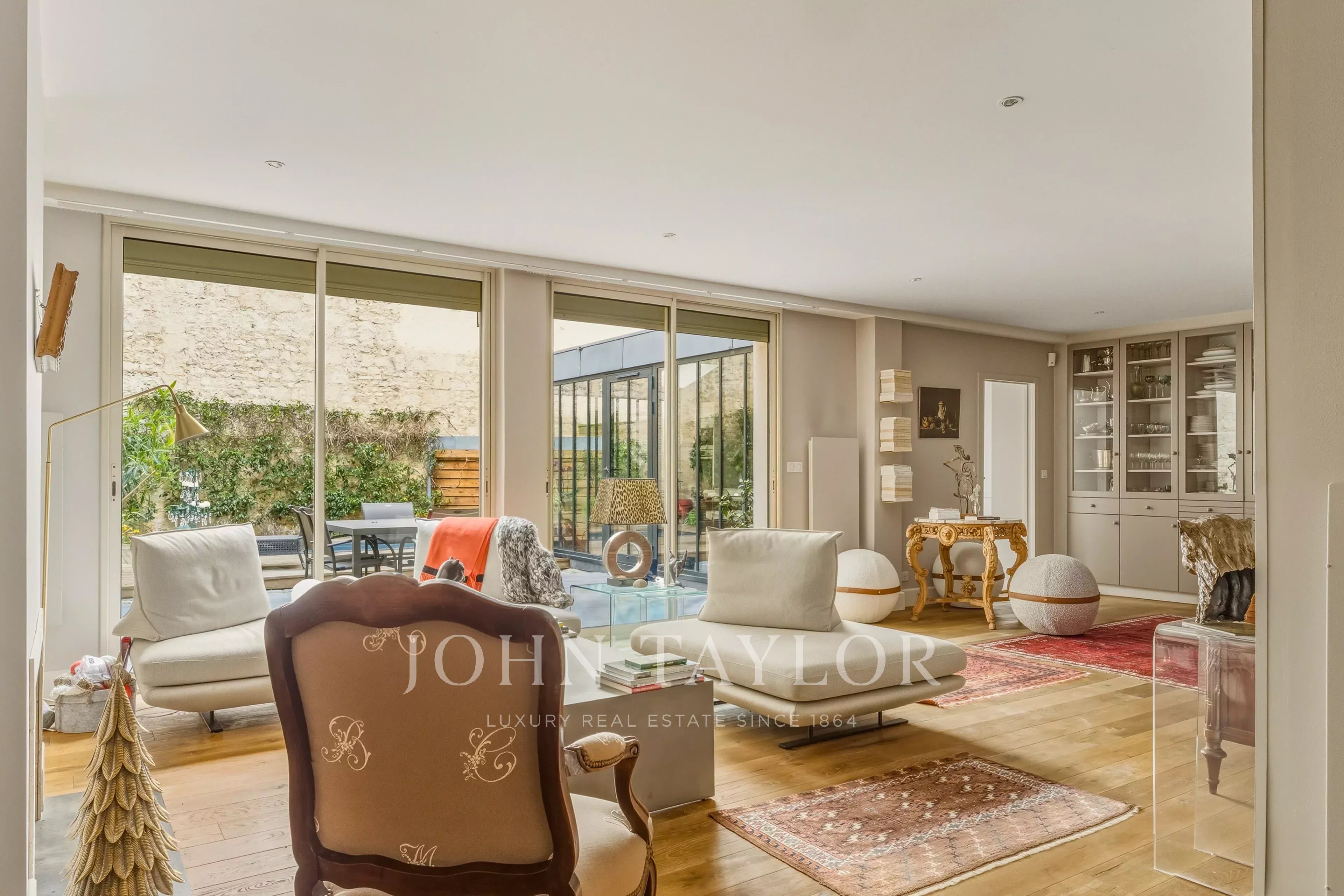 Эта красивая двухуровневая квартира площадью 220 м² выглядит как полностью отремонтированный дом, с частным лифтом на каждом уровне и большим садом площадью 70 м² с бассейном. Неприметный, тихий адрес в здании с элегантными, прекрасно ухоженными коммунальными зонами.