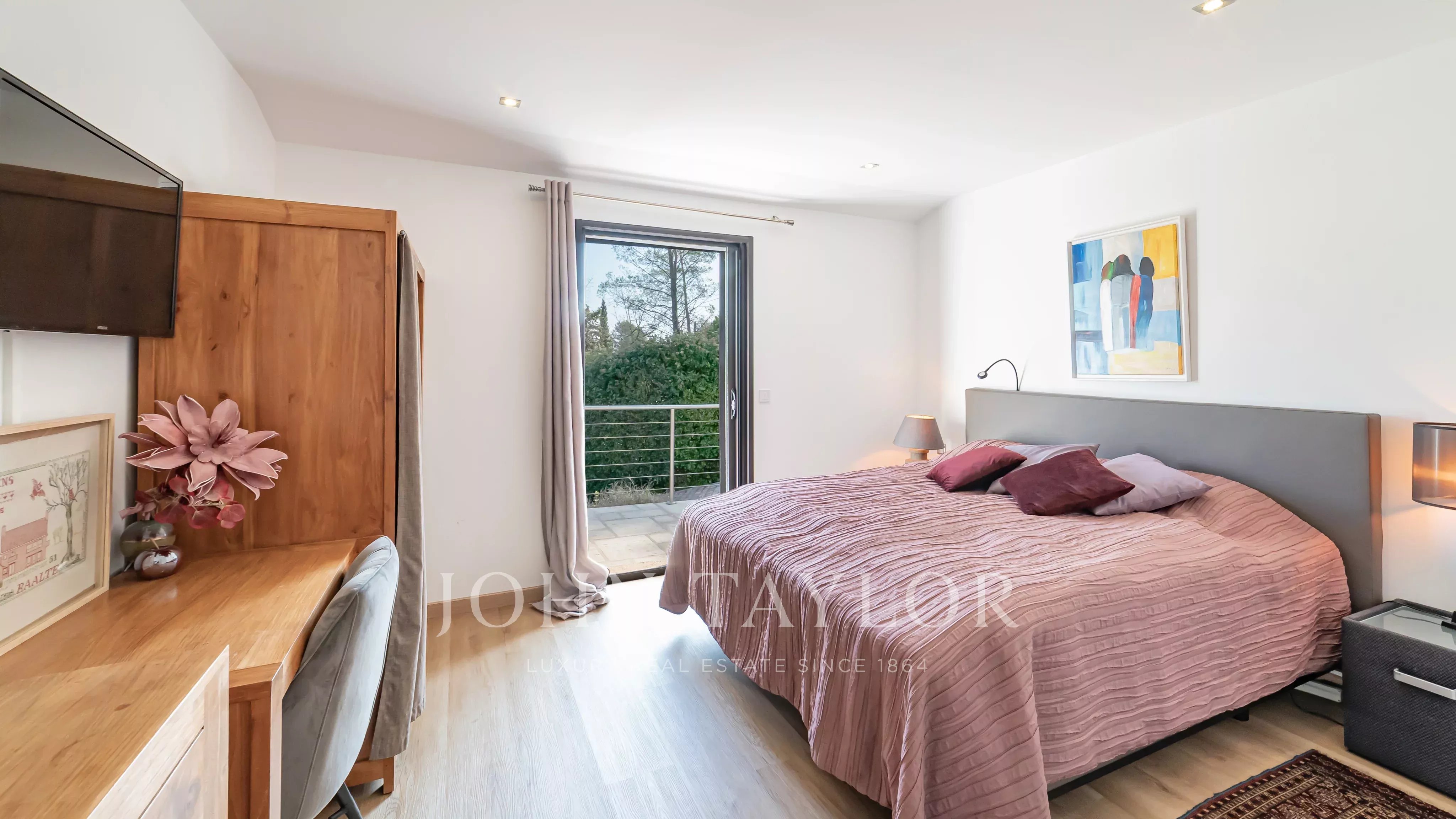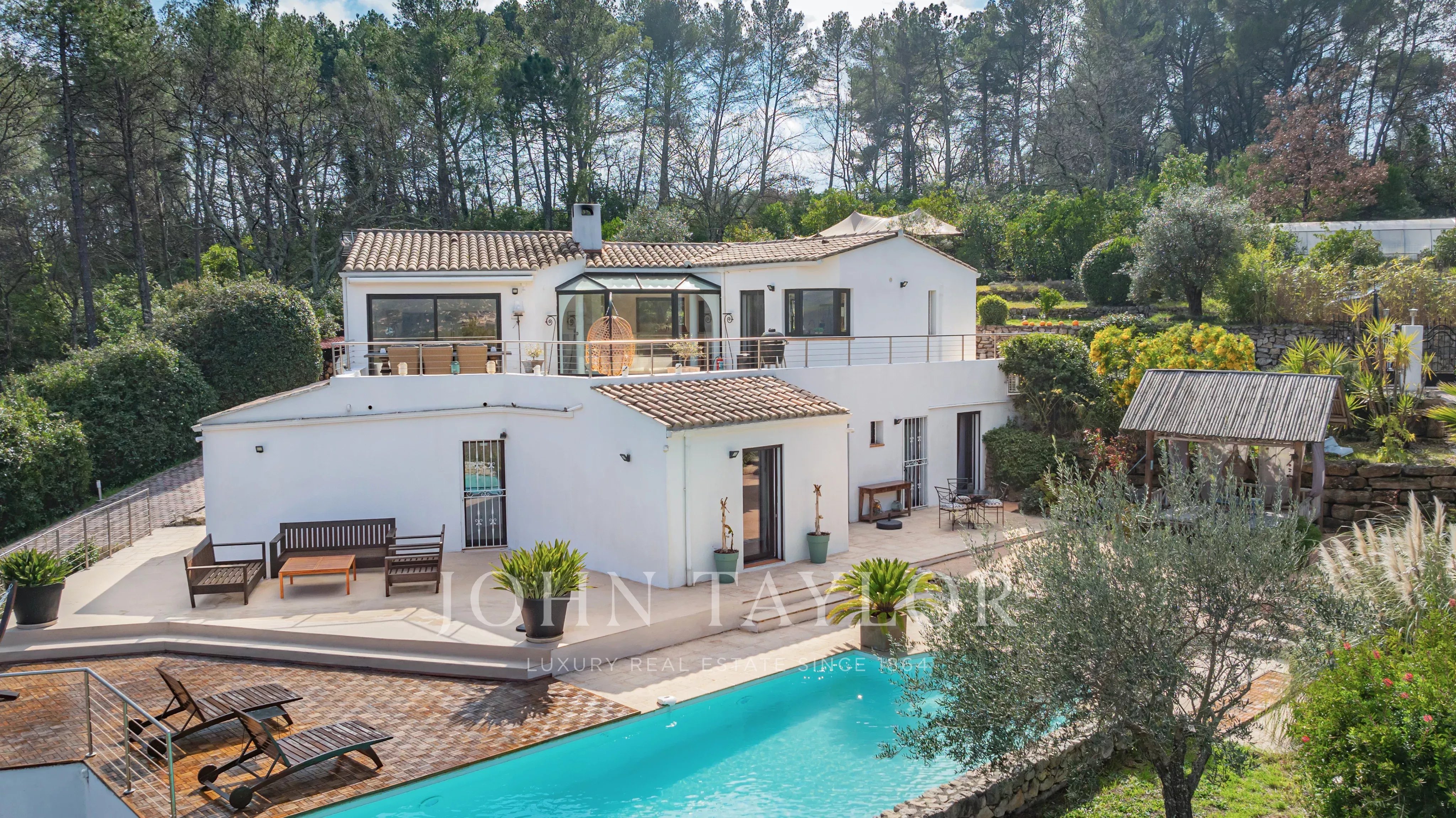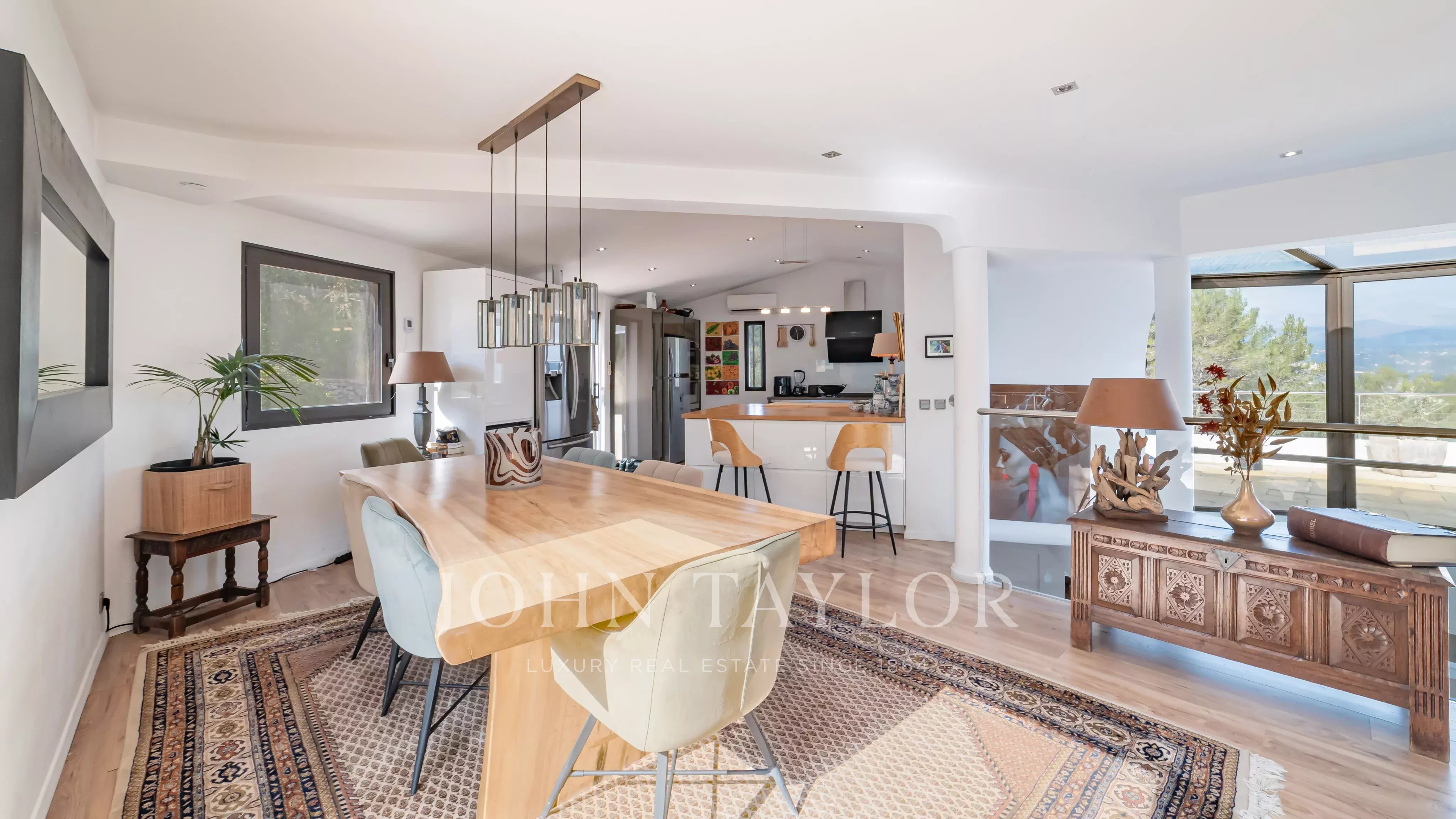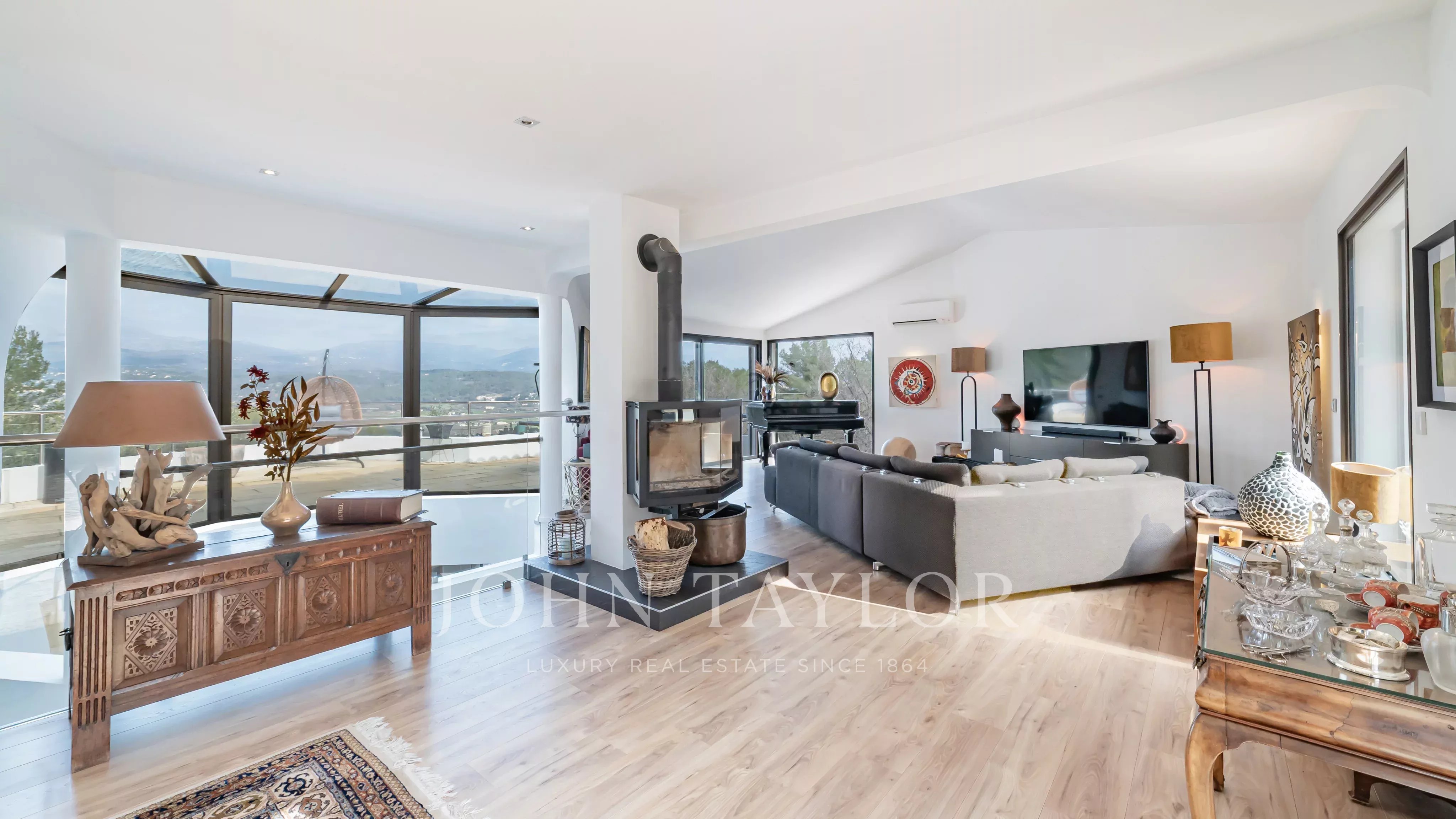В нескольких минутах от престижного поля для гольфа Terre Blanche находится эта элегантная современная вилла площадью около 290 м² с панорамным видом на долину и окружающие горы.