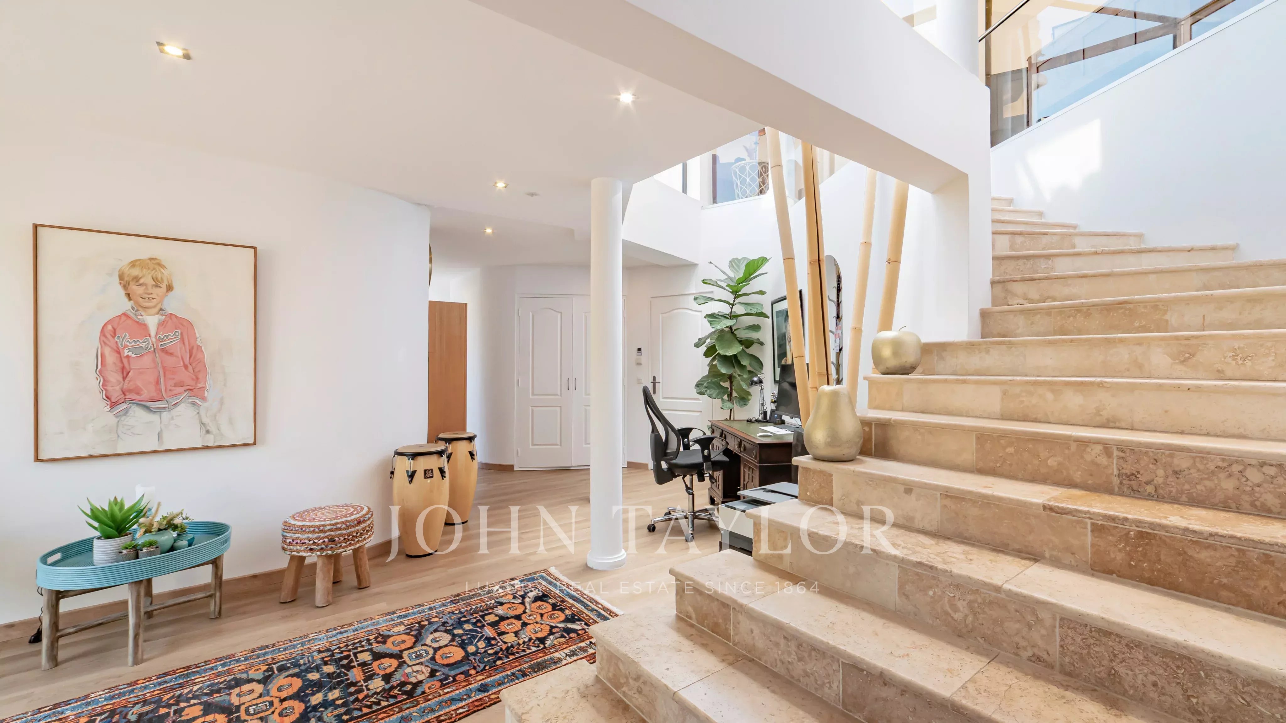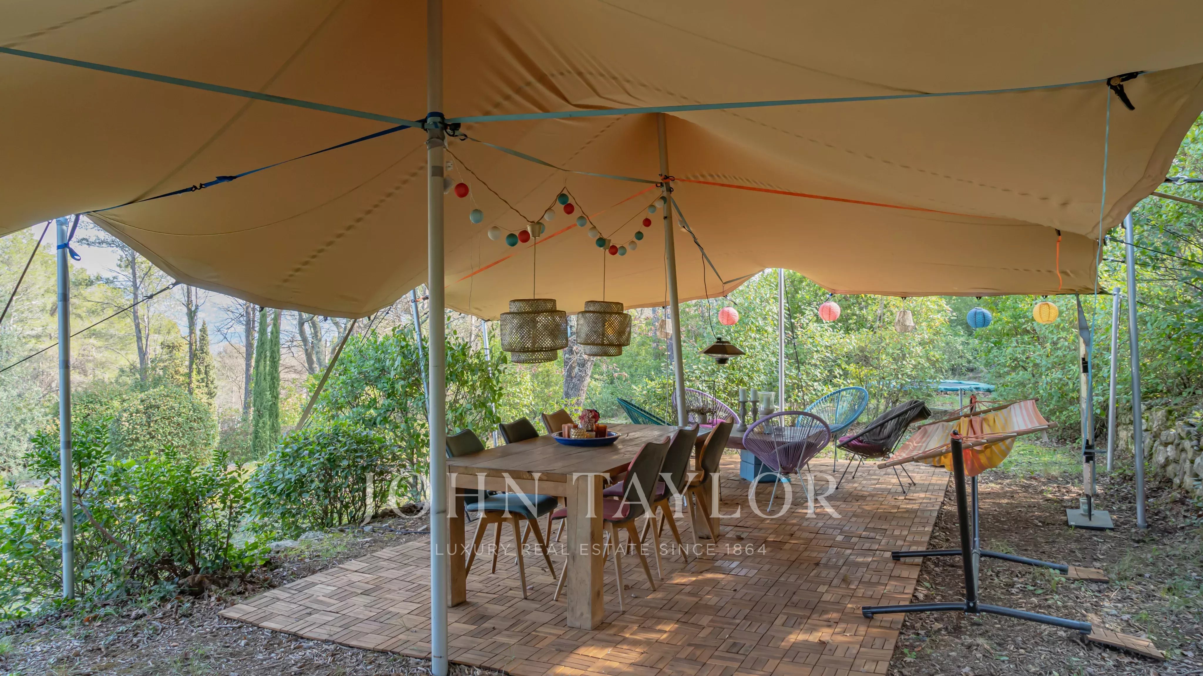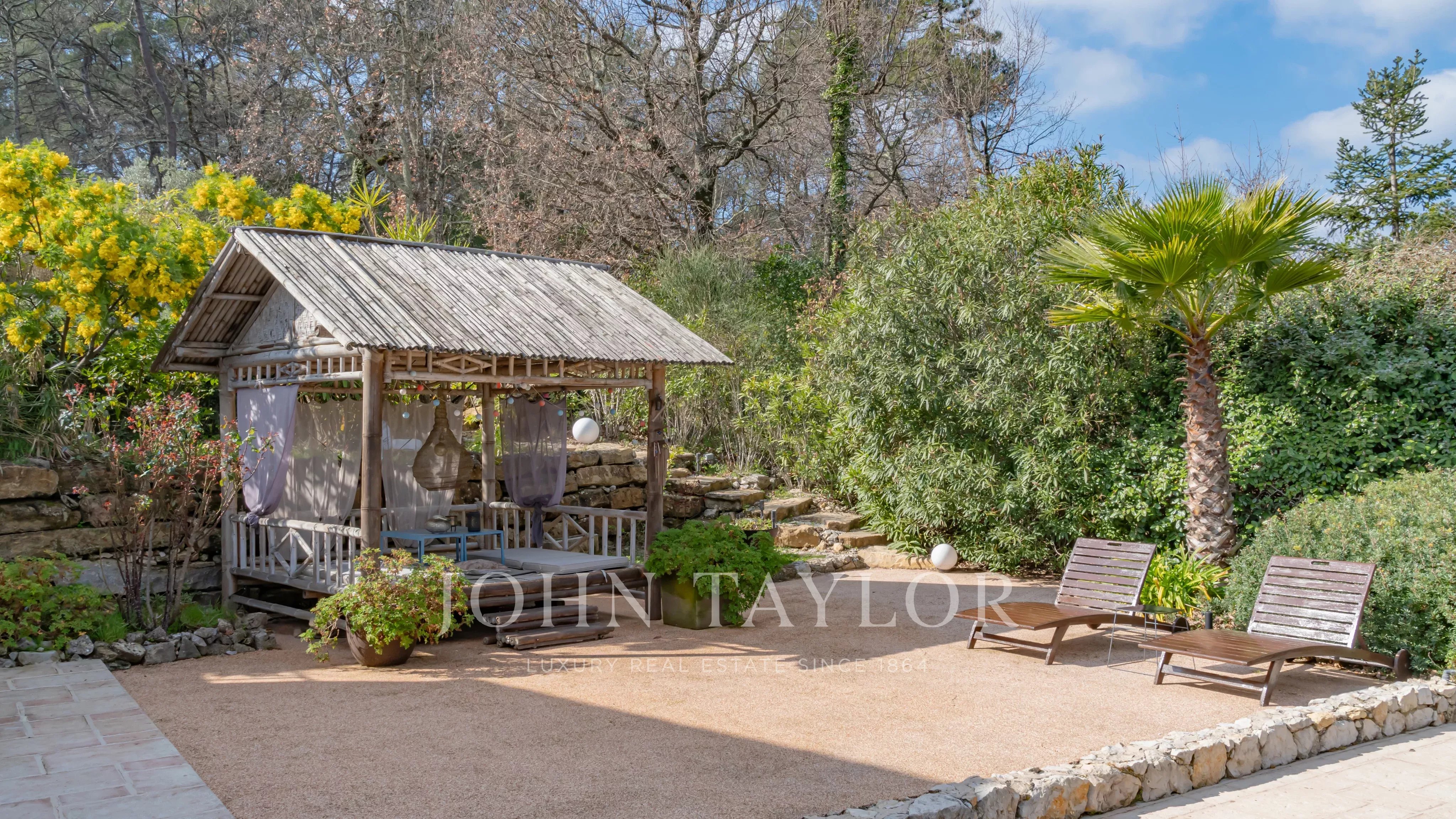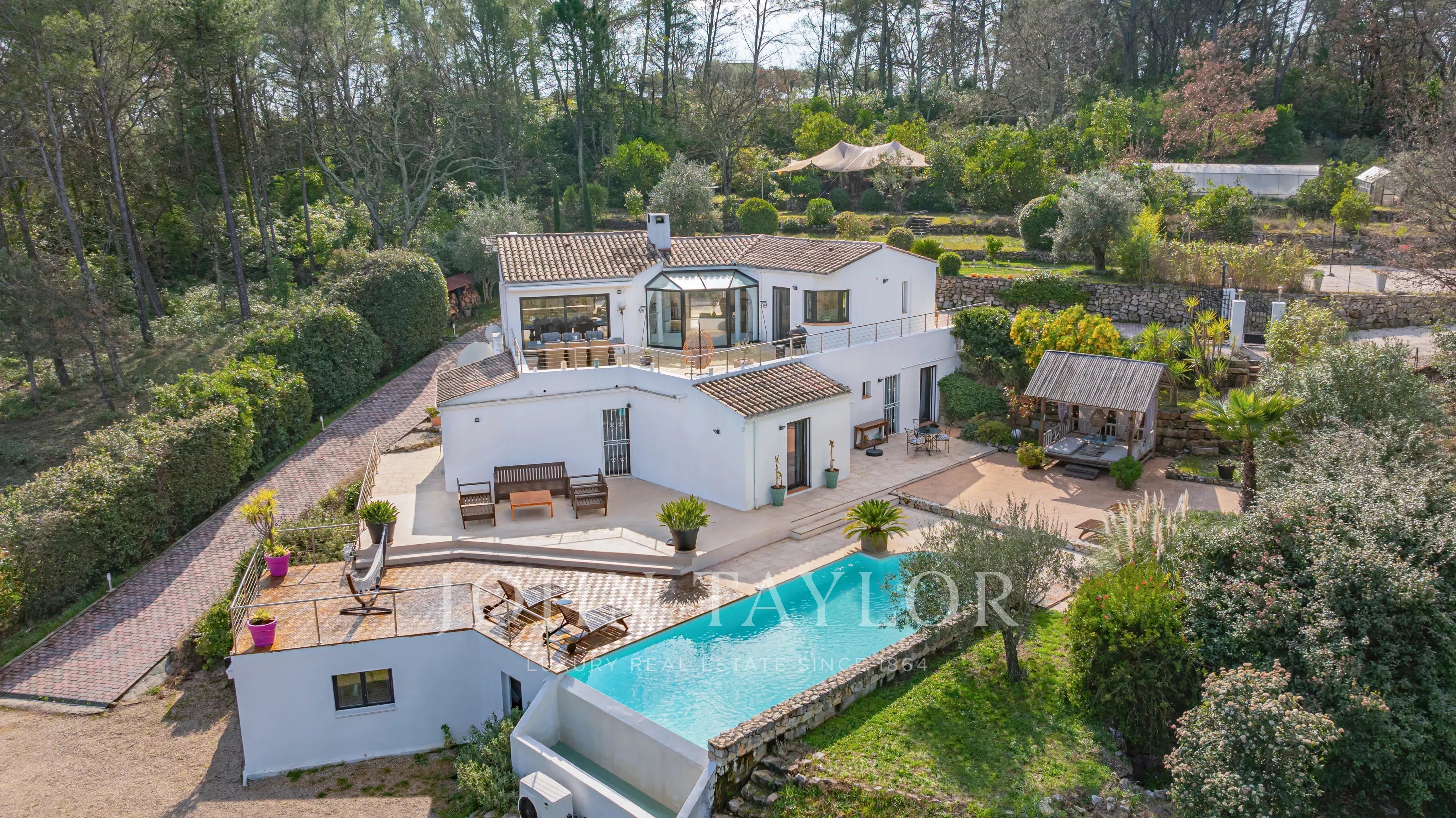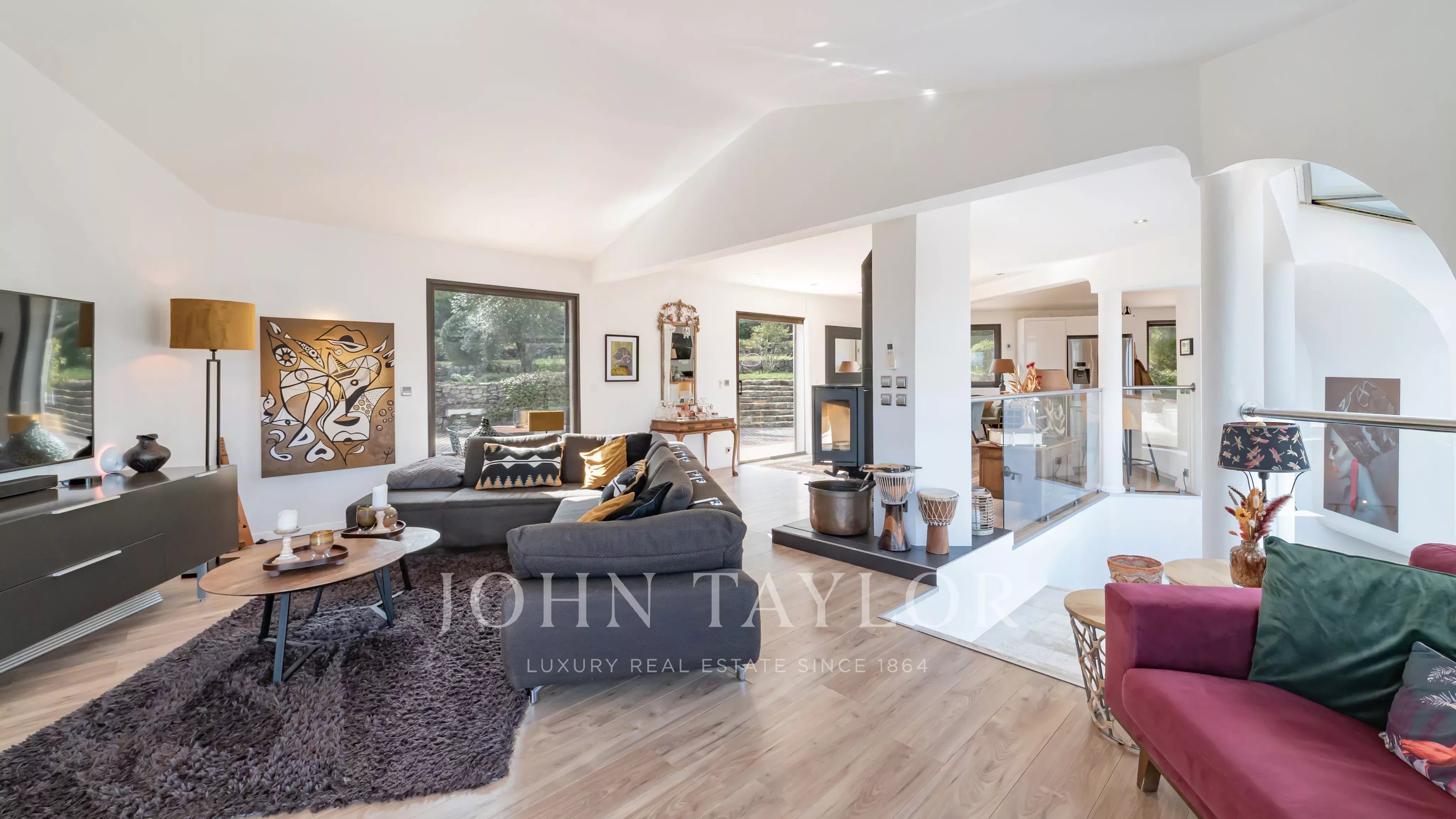 В нескольких минутах от престижного поля для гольфа Terre Blanche находится эта элегантная современная вилла площадью около 290 м² с панорамным видом на долину и окружающие горы.
