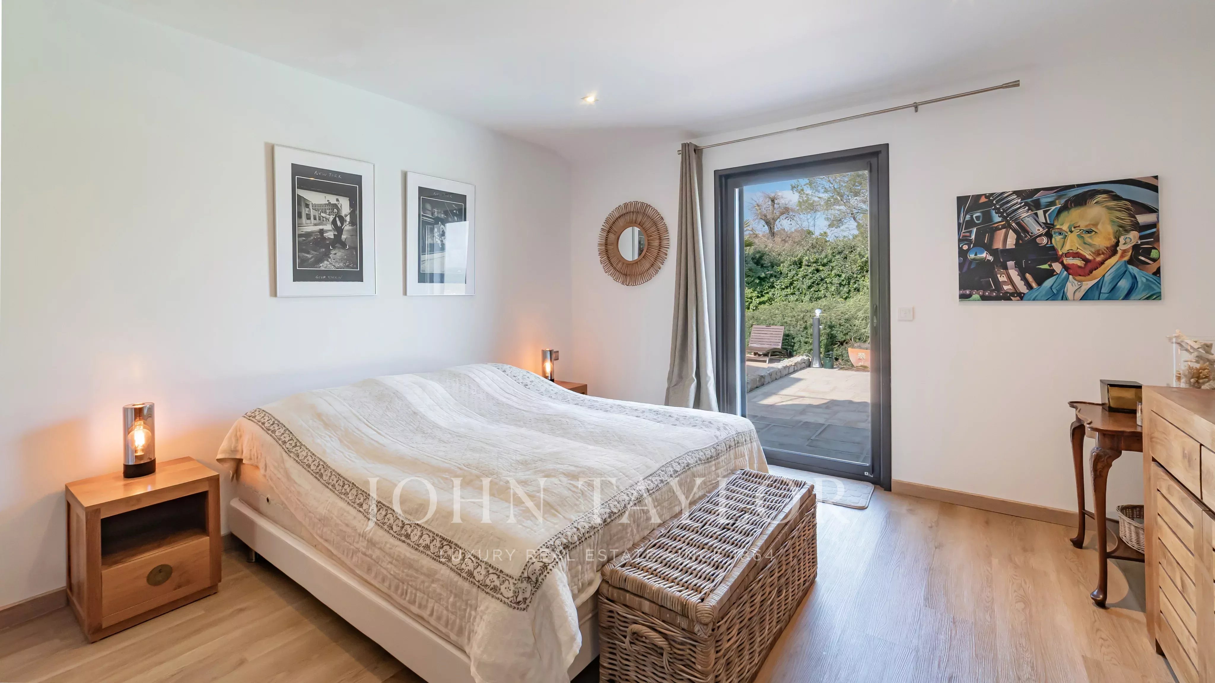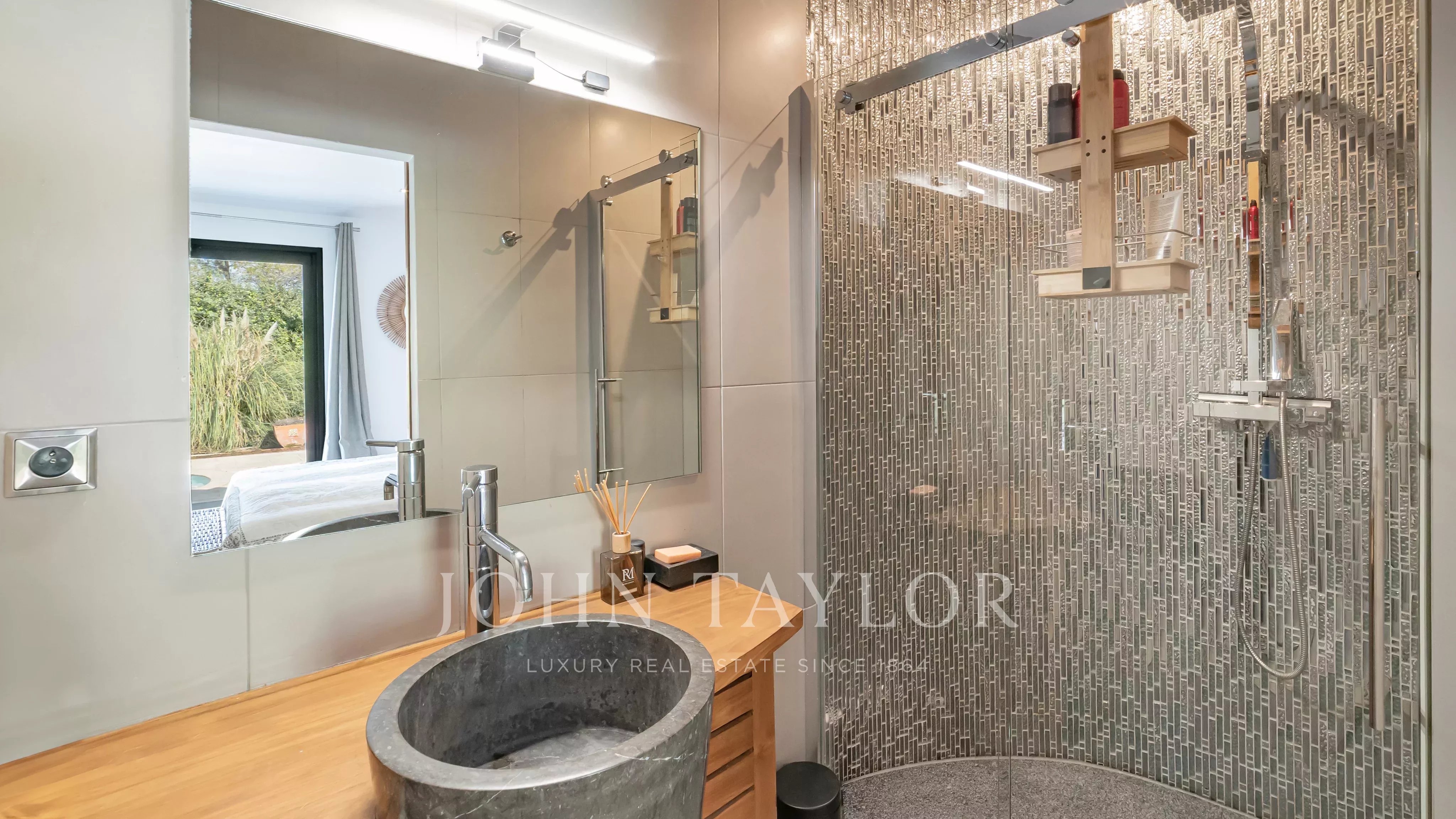 На уровне сада находится главная спальня с ванной комнатой и гардеробной, а также три дополнительные спальни, каждая со своей ванной комнатой.