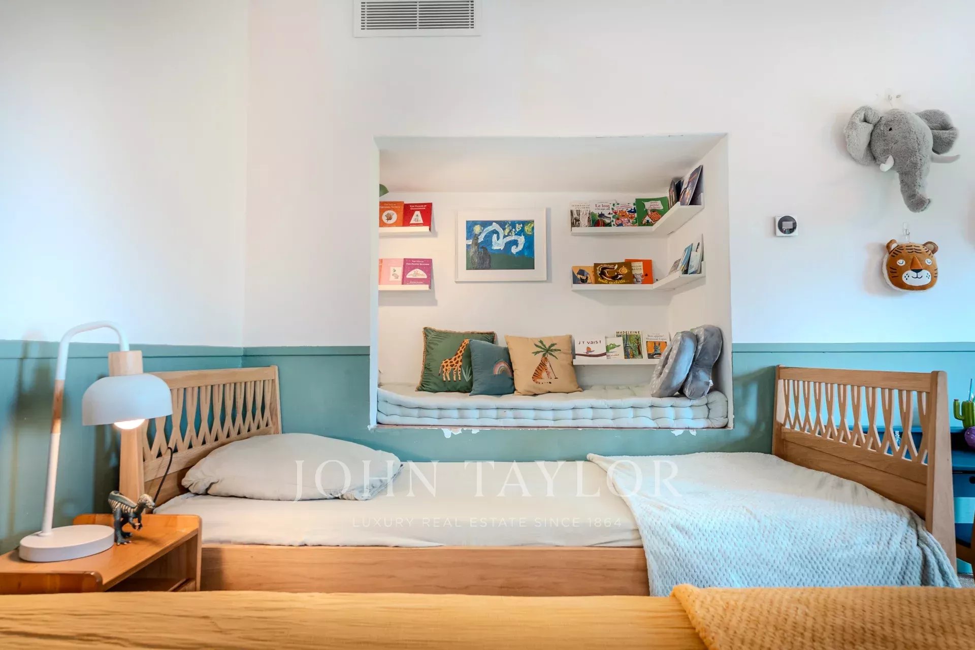 Отдельная лестница ведет в великолепную спальню с гардеробной и ванной комнатой.