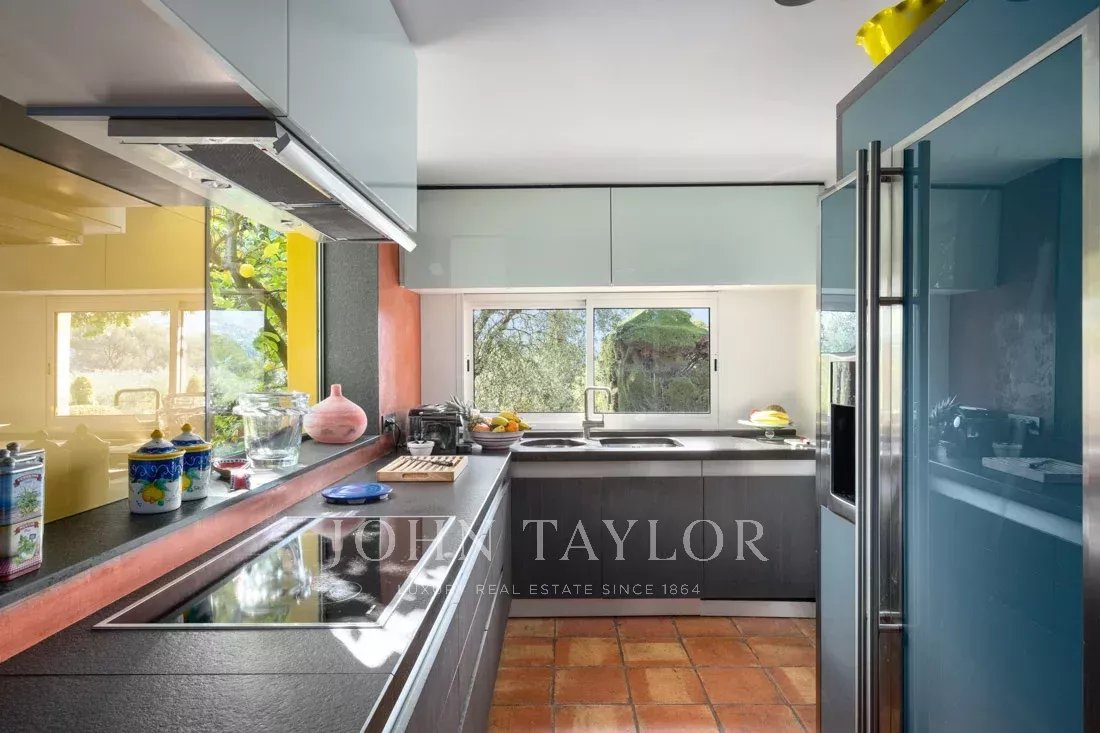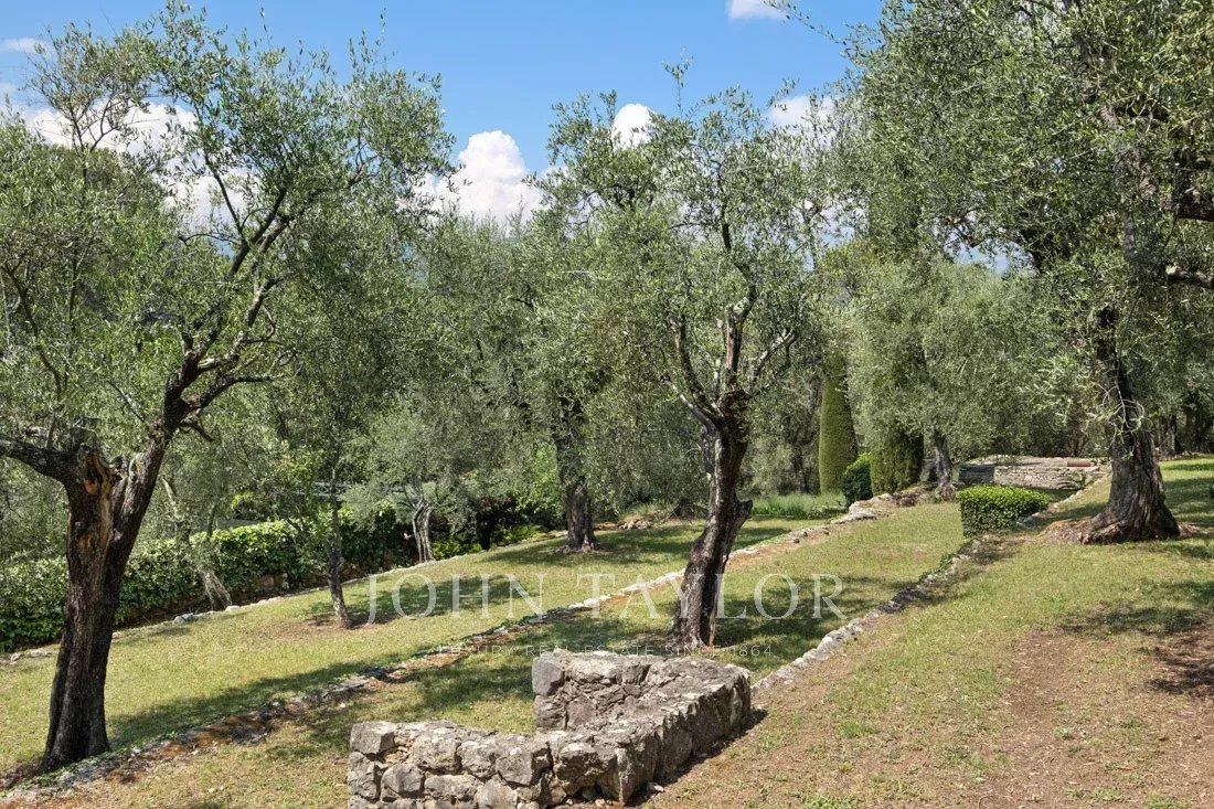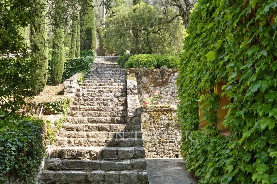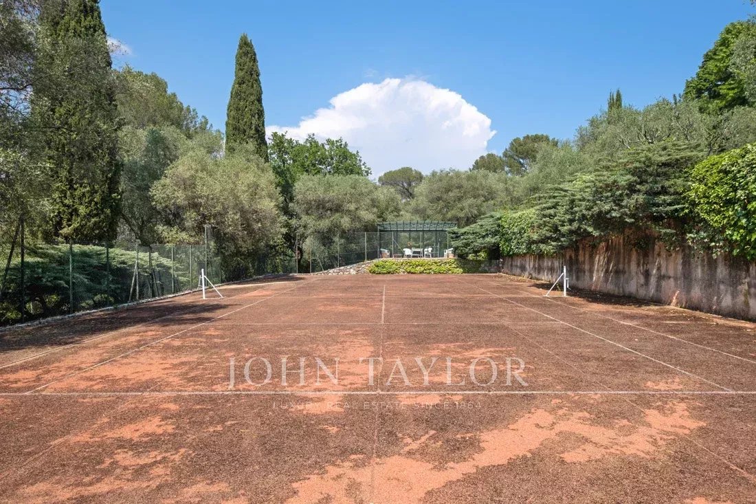 Поместье площадью 1,6 гектара с великолепными средиземноморскими растениями, многочисленными террасами, фонтанами и теннисным кортом предлагает панорамный вид на окружающие холмы и абсолютную безмятежность.