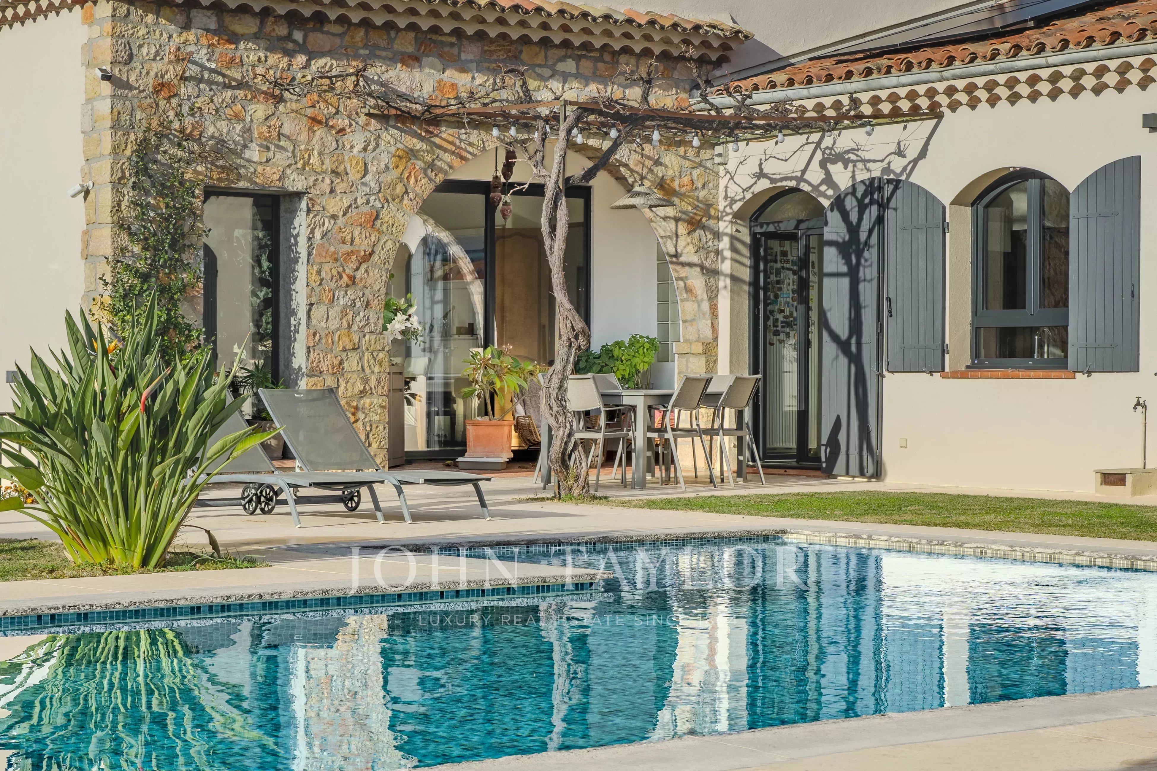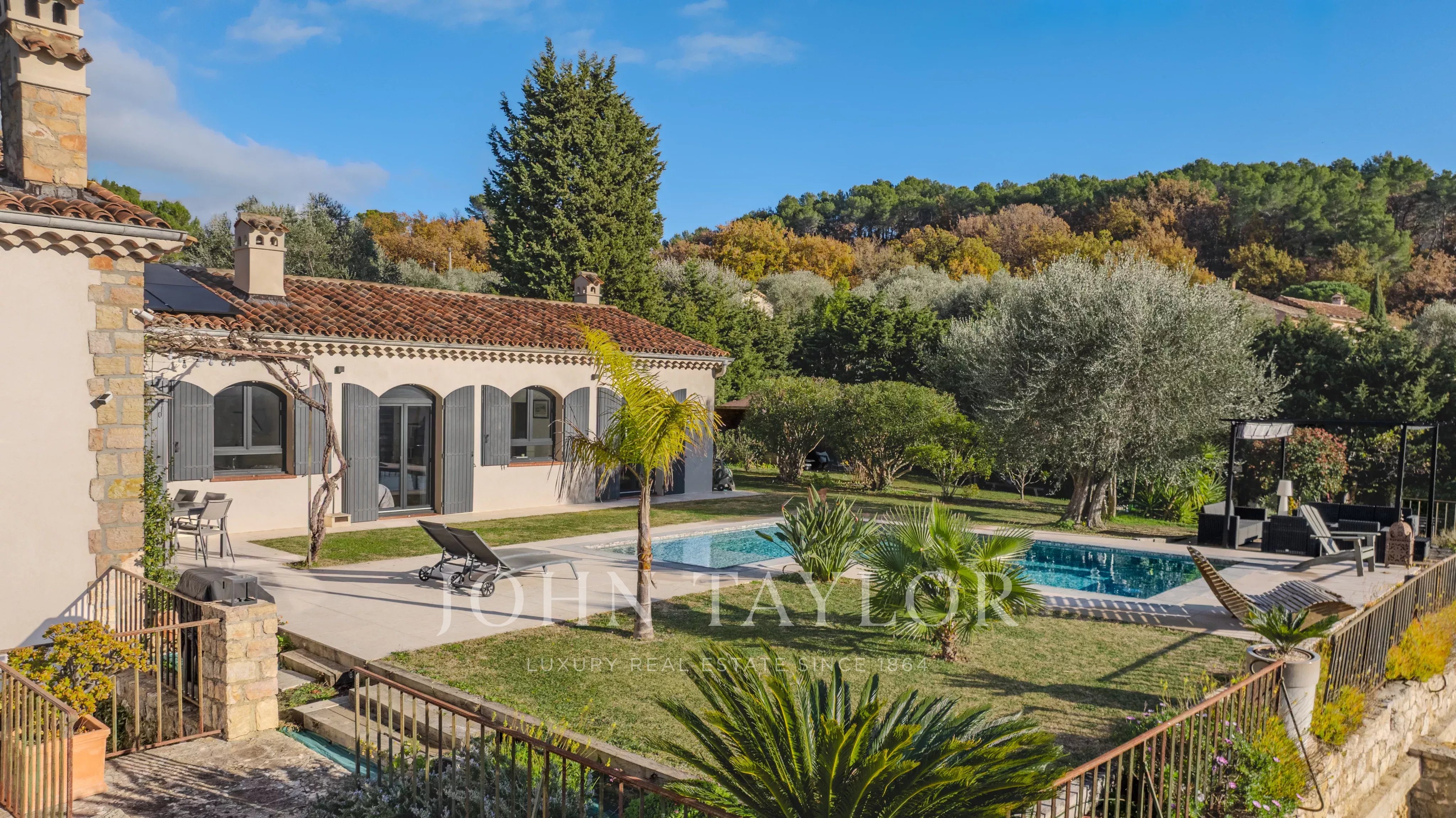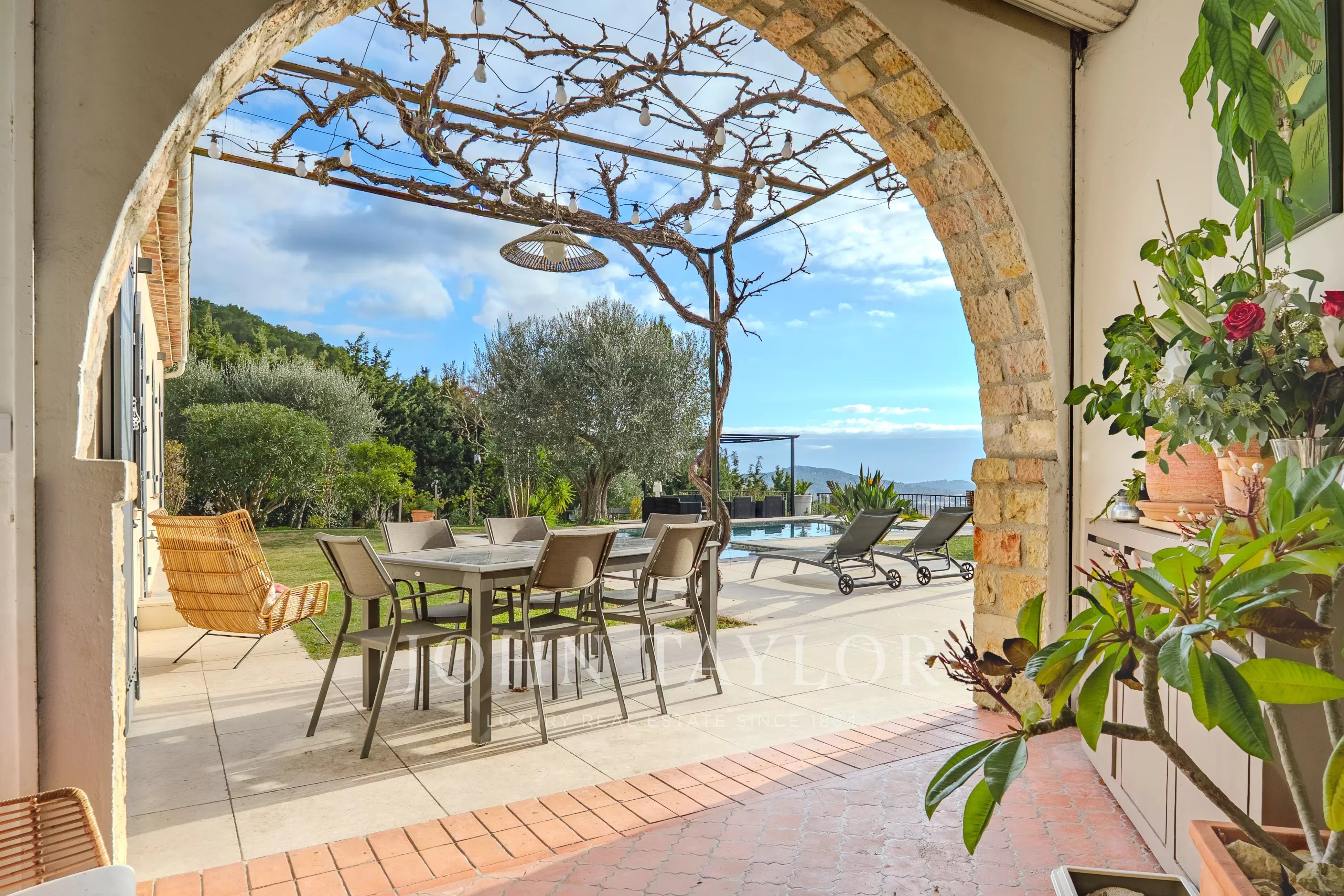 Этот отреставрированный особняк площадью 217 м2 с бассейном и джакузи, расположенный всего в нескольких минутах езды от деревни Вальбонн, покорит вас захватывающими панорамными видами, от Каннского залива до гор Граса, на территории площадью 3500 м2 с ландшафтным дизайном.